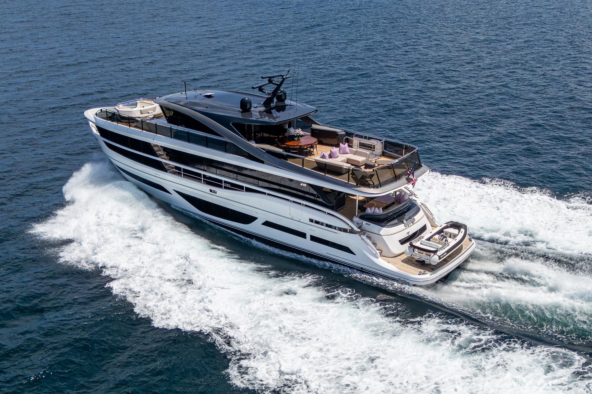 NEW TO MARKET! MOTIVATED SELLER JUST REDUCED!You wont Find a Cleaner X95 Anywhere! 2 YEAR EXTENDED MAN WARRANTIES JUST PUT IN PLACEALL SERVICES RECENTLY COMPLETED, PRISTINE CONDITION READY FOR SURVEYINQUIRE FOR FULL DETAILSTRADES WELCOME, FINANCING AVAILABLE!Factory Equipment List: Power & PerformanceTwin MAN V12-2000 (2 x 2000mhp) enginesJoystick Aventics (dual station) for engines & bowthrusterOil changer for engines & generatorHydraulicsStandard system with dual engine-driven pumps, cross-connectedHydraulic bowthruster and windlassHydraulic sternthruster (variable speed 420 KgF)Upgraded sternthrusterExterior & HullUpper deck canopy/hardtop painted Graphite GreySupport legs in Platinum metallicExterior furniture painted Oyster Grey metallicWhite hull with dark grey waterline and black antifoulingInterior FinishGloss Walnut interior wood'V' groove planked walnut floors in galley, dining, and helmInlaid rug in aft salon areaLayoutsStandard: 4 staterooms (aft master, forward VIP, 2 twin berths), all en-suiteOptional: 5 stateroom layout with main deck master, enclosed galley, and dining for 10Optional salon L-shaped sofa and armchairsConvertible twin to double berth cabins with powered slidersSkylounge day head with basin, bidet, storageOptional salon bar with fridge, icemaker, sinkAdditional navigation helm seat in wheelhouseBeach club option with revised crew layoutAcoustic insulation upgrade for master stateroom and engine roomModified FeaturesY85 dining table upgradeFlybridge hatch updated to Y85-style catchAdditional outlets on flybridge and engine roomGalley & BathsMisty Carrera quartz countertopsMystery White marble bathroom floors and bulkheadsColor SchemePremium color scheme and scatter cushionsDeck & Exterior HardwareFull teak decking on exterior and flybridgeElectro-hydraulic transformer platform (1000 kg SWL)Foredeck spa bath in place of sunpadAdditional side entry gates (port & starboard)Cockpit bar with fridge, icemaker, sink, storageStainless steel keyway plates and tender slidersKedge anchorsFlybridge bar: BBQ, hob, fridge, sink, waste binFlybridge starboard: cool box & icemakerStarboard flybridge wing station controlsElectric aft awning (Anthracite Grey fabric)Carbon pole transom shower with socketFlybridge port side GRP storage boxGeneratorsUpgrade: Two Onan 55kW / 60Hz generators (standard: 40kW)Electrical & LightingTwin Glendinning Cablemasters with Hubbell cablesAGM 90Ah battery upgradeSalon wine coolerForedeck top-loading coolboxAir horns upgradeAnchor pocket cameras x2Underwater transom lights (4 Lumishore THX 803, color)Underwater side lights (8 Lumishore TIX 803, color)Lumishore STV2240i controller in cockpitMaster bathroom underfloor heatingHeated towel bars (x3)Exterior lighting upgrade (cockpit, side decks, bow/foredeck)Interior lighting upgrade (fiber optics in salons)Audio/Video & CommunicationsNaim Uniti series audio systems throughout (Bluetooth, streaming)Smart TVs: 65" (salon, master), 55" (skylounge, lower master), 43" (forward), 42" (cockpit/flybridge), 32" (crew), 24" (guests)JL Audio waterproof exterior speakersOnboard Ethernet network with WiFiInternal PBX phone system with handsets throughoutNavigationStandard Raymarine suite (Axiom XL19, Magnum radar, autopilot)Garmin upgrade:3x GPSMAP 8617 MFDsFantom 126 radar, GHC20 autopilot, GMI20 instrumentsVHF 315 radio, AIS 800, sonar module, B744 triducerChase tubes for future SAT TVExterior Upholstery & CoversComfort Exterior III Met, Vogue, or Hitch materialsGrey or Navy Sunbrella covers for cockpitAccessories & Spares8-place china/cutlery/glasses set (10-place if 5 stateroom layout)Spare anodes for stern thruster and stabilizersBed linens (excludes crew)Water delivery kitNet OptionsSleipner Hydraulic system with SPS93/VF1950 fin stabilizersZero-speed and underway stabilizationGarmin upgrades: Fantom 54 radar, Gwind 2, GXM 53 SAT weather, extra VHFAdditional Boening & Garmin MFDs in beach clubFlybridge crane prepPainted VHF antennasWasher/dryer with soundproofing forward of day head65" TVs in Skylounge & Lower MasterForward stateroom TV up to 55"Additions Upon Arrival (Florida)ElectroSea CL-2000 ClearlineYacht Safe Air Purification (8 zones)KVH HD7 SAT TV system with dummy dome, 10 receiversURC Total Control system, 10 remotes, remote access mini PCWiFi repeater, cell modemSpot Zero XZII 1800/2000High gloss tables, Seahawk Biocop bottom paintV-Kool window film, Prop Speed on props/shaftsFabricate/install shelves, toolboxes, bow chain lockerCharacterized by beautifully sculpted surfaces and long flowing lines, the X95 defines a striking design language for this new Class. Both her flybridge and main deck cover almost the full length of the yacht, delivering expansive spaces with flexibility that enables you to define each journey around your guests’ preferences. With a fuel capacity of 13,400 litres, the X95 has the range for far-reaching, adventurous voyages.Experience space akin to a megayacht as you enter her main deck saloon and witness a line of sight right through to the forward window. Ascend the internal staircase to the upper deck and another unique experience awaits: a fully enclosed and climate controlled Sky Lounge. Taking pride of place on her lower deck is the full beam Master Stateroom with en suite, complemented by her Forward Stateroom with walk-in wardrobe and en suite bathroom. Additional port and starboard guest cabins can each be configured with two single beds or one double bed, whilst generous crew quarters complete her extensive accommodation.