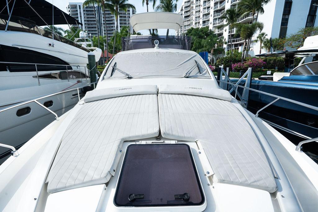 With the Ferretti 470 the yard aims to increase its market share in the well-established European sector and the American, Middle East and Asia Pacific markets, including China. A product of the highly successful collaboration between the AYT – Advanced Yacht Technology, the Ferretti Engineering Division – and the Studio Zuccon International Project, the Ferretti 470 is an ideal blend of form and function. The combination of compact size - 14.65 metres long, with a 4.34 metre beam – and intelligent optimisation of space creates an opportunity to enjoy the best of Italian-style luxury and experience sailing while surrounded by levels of comfort unknown until now in this type of yacht. Ferretti 470 offers a range of features that makes it unique in its class – firstly, the window area has been increased, providing a sweeping, uninterrupted view from stern to bows and allowing natural light to flood the entire living area. The location of the galley aft also optimises the use of interior space and enhances liveability – by opening the swinging window, in fact, it’s possible to create a single open space with a seamless transition between cockpit, galley and living area.Located in Aventura Florida, Easy to see by appointment. Priced to sell! Offers encouraged.Key notesNew Garmin electronics packageInverterNew AC SystemNew flooring3 state room 2 head layoutNew audio systembow & stern thrustersNew Bimini Top