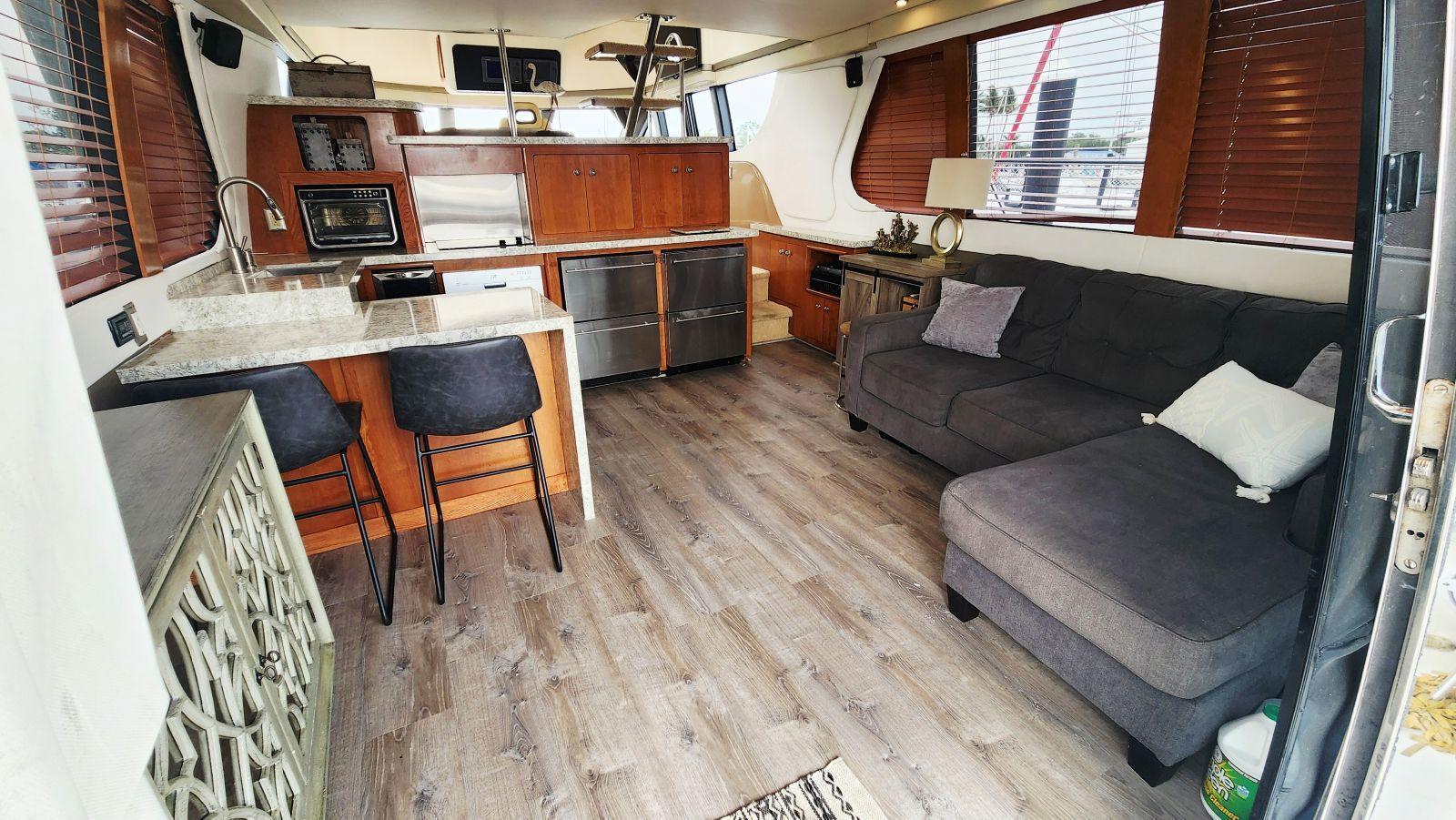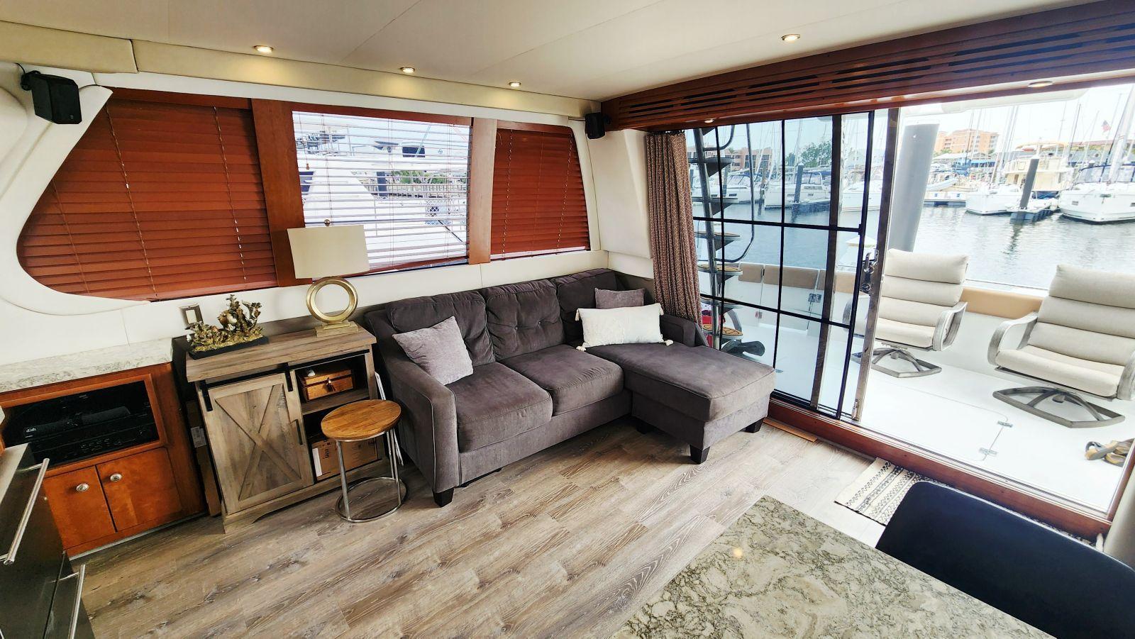 Livin' the Dream I is more than just a motor yacht, it's your floating home base, designed for comfort, style, and unforgettable memories on the water. Carver 530 Main Salon