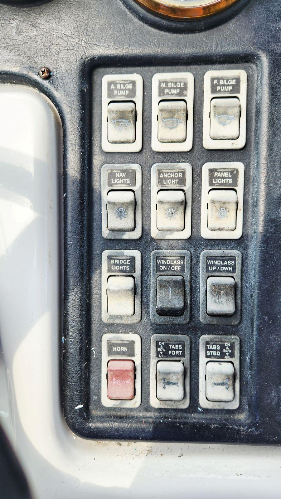 All interior lighting has been upgraded to energy-efficient LED fixtures, offering soft, ambient illumination. The yacht's 12V DC panel is conveniently located to port, while the 110V AC panel is to starboard, just inside the salon steps leading to the pilothouse, putting essential systems within easy reach.