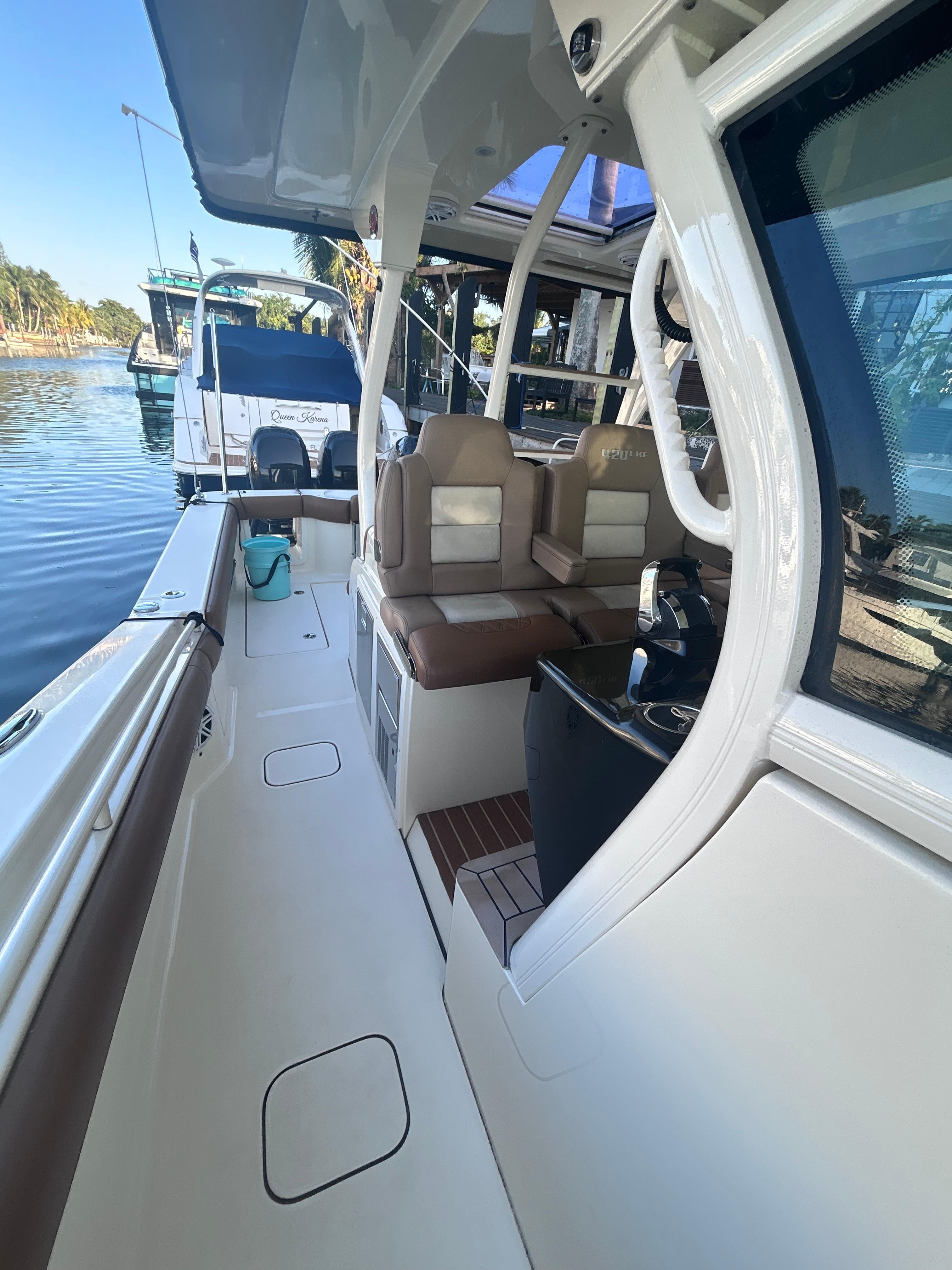 This vessel owned as a tender to Malcolm Forbes "Highlander" yacht and recently replaced was managed by a professional crew and is the most aggressive price in Miami. Come and see her at her private marina in Belle Meade.Each Scout is an original, with in-house research and design teams working with engineers to nurture concepts from sketch to blueprint to production, efficiently, all the while growing the company's reputation for quality, strength, durability and value.Scout, founded 25 years ago, counts among its selling points its superior fit and finish; best-in-class strength-to-weight ratio; fully finished bilge, lids, doors and hatches; and the company's -family ownership and operation.This 42-footer takes its place in Scout's LXF Collection, a line of luxury sport-fish boats the company calls a unique blend of high-performance fish boat and high-end cruiser.The technology includes an epoxy-infused, carbon fiber/ e-glass double-stepped hull that welcomes quad outboards. Standard are full transom walk-through with teak swim platform, side boarding door, Kohler generator, and Seakeeper6 gyrostabilizer.Also standard are two 92- gallon in-floor fish boxes with overboard diaphragm discharge, powder-coated hardtop with curved glass enclosure, and three-person aft-facing cockpit seats that are part of a leaning post that contains an ice maker, drawer refrigerator and/or tackle drawers as well as an electric BBQ.The cockpit baitwell holds 80 gallons, The boat bears 10 stainless-steel gunwale-mounted rod holders, with seven more on the transom; Optional hardtop rocket launchers articulate downward, making rod access easier.Helm station includes triple redundant Garmin touch Screens with Boca Switches as well as touch screen switches for almost all functions. Autopilot with heading hold and programable waypoint navigation. Full Bluetooth Fusion stereo system. Joystick controller and bow thruster.Below are amenities Scout compares to those on a private jet: stove cooktop, microwave, flush-mounted TV, DVD player, galley sink, refrigerator, enclosed shower, and two single beds that can be combined into one large king berth.The hydraulic portside beach platform adds a floating veranda.Recent upgrades include the following:High Performance Flash and tuning on all 4 engines from 350 to 400. Current Top Speed 60MPH!New port and starboard steering pumpsNew port and starboard low voltage wiring harnessRefreshed power supply steering electronicsRefreshed all electrical systems on boardNew Fischer Panda 12 KW Generator with 12 Hours use currentlyNew Seakeeper 6 recently commissionedNew Refrigerator at Helm StationNew Ice Maker at Helm StationNewer Spark Plugs and recent tune up and engine /lower unit oil changes on all 4 engines. This vessel has been maintained as part of "The Highlander" Yacht of Malcolm Forbes. She has been maintained by a full time engineering team and crew aboard the yacht. These Engines have just over 1000 hours and have been well maintained by the crew.Supercharger belt on Starboard Center engine.New Shore Cord Connector ( All Stainless Steel (Male to Female) Hubbel 50 AMP connector with new boot)New Trim Tab system and interface installedNew Shift Actuator Port CenterNew Throttle Lever Trim ControlNew AC Sea Water Pump recently installedEstimate in hand for Fleer InstallBring all offers Trades!!! Open to possibilities of Partial ownership with a full time captain already managing the vessel!!!