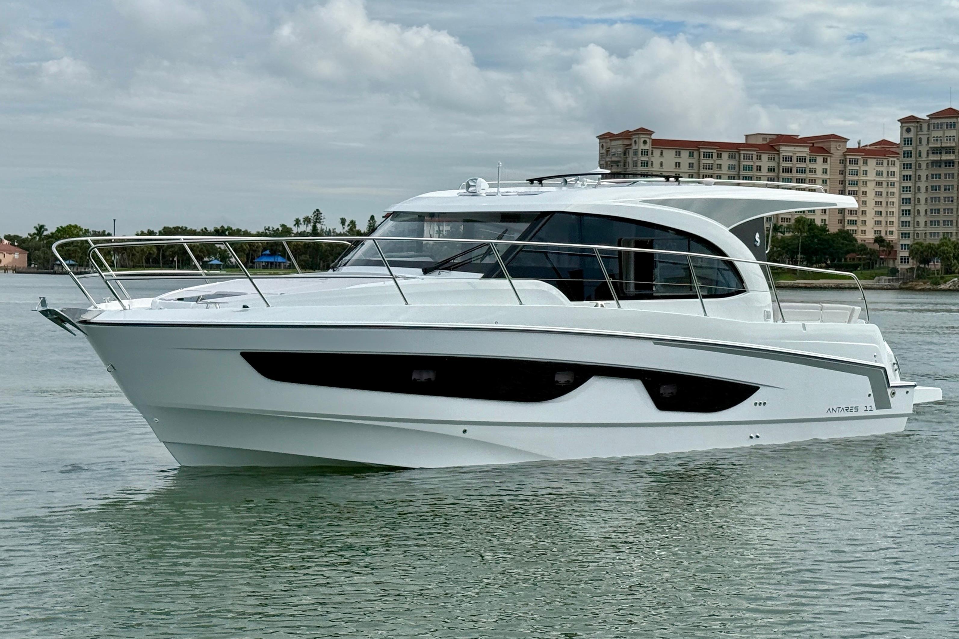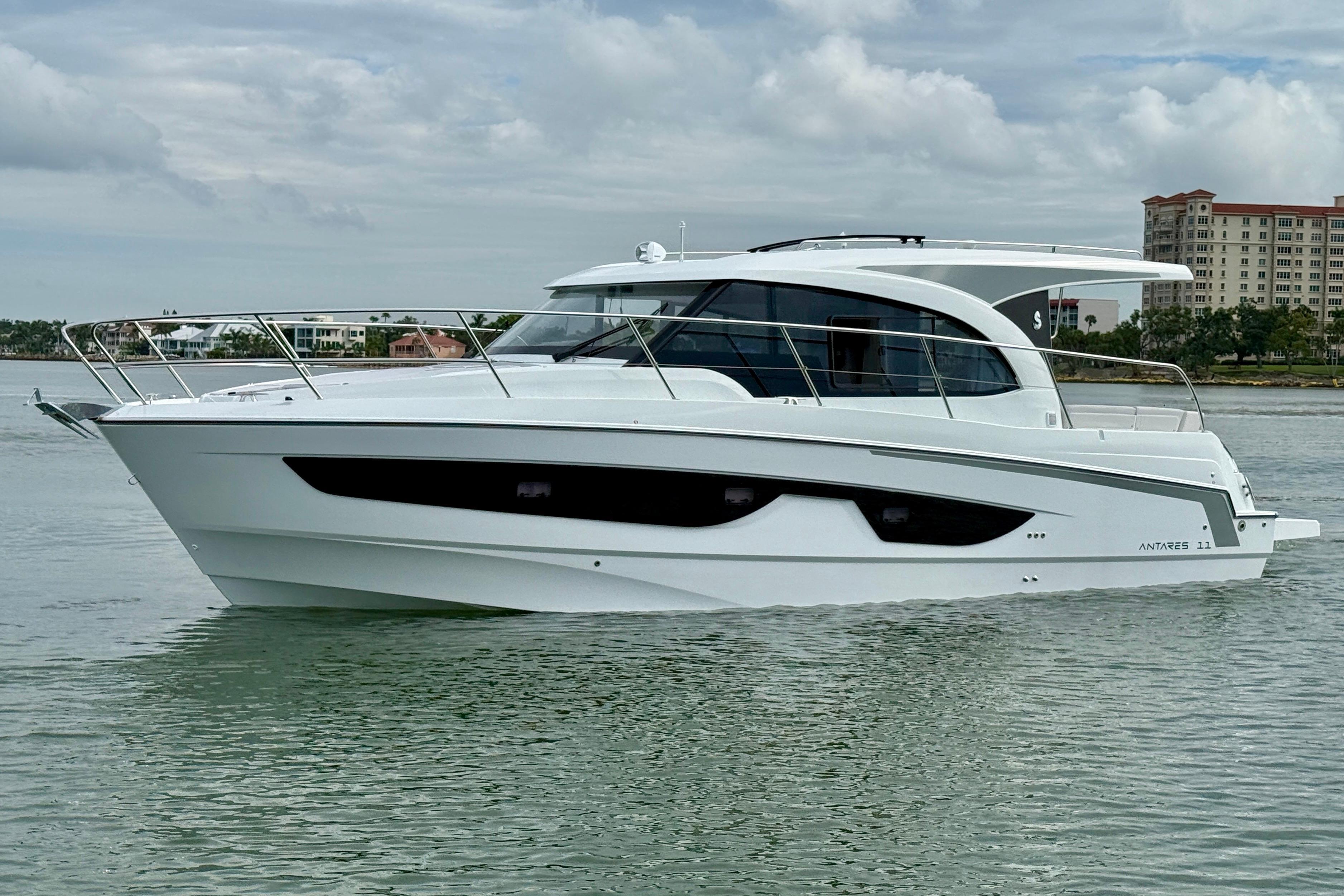 2026 Beneteau Antares 11The Antares 11 is a true family cruiser, designed with the perfect balance of comfort, performance, and modern styling. Spacious, versatile, and remarkably seaworthy, it’s the ultimate weekender for those looking to enjoy life on the water without compromise.Powered by twin Mercury 300HP engines, the Antares 11 delivers efficient cruising and reliable performance whether you’re exploring coastal waters, entertaining at anchor, or spending nights aboard.While it comes loaded with standard features, the available options and design details set it apart. From the bright and open salon with panoramic views to the generous two-cabin layout and convertible seating areas, every inch of this boat is crafted to make time on the water more enjoyable.The sliding side door, integrated side deck, and large swim platforms add to its functionality, making this not just a capable cruiser — but a truly incredible on-water experience.Notable Features & OptionsTwin Mercury 300HP EnginesSpacious Two-Cabin Layout w/ Private Owner’s Cabin & Guest CabinPanoramic Salon Windows w/ Opening Roof HatchConvertible Dinette Seating for Dining or LoungingFull Galley w/ Refrigerator, Sink, and StovePrivate Enclosed Head w/ ShowerSliding Side Door & Starboard Walkaround Deck for Easy AccessLarge Swim Platforms w/ Integrated Boarding LadderForward Sunpad LoungeGenerous Cockpit Seating w/ Adjustable BackrestsAir Conditioning & Generator Options AvailablePremium Fusion Audio SystemUnderwater Lights for Evening AmbianceElectric Windlass for Effortless AnchoringCall today to schedule your private showing!