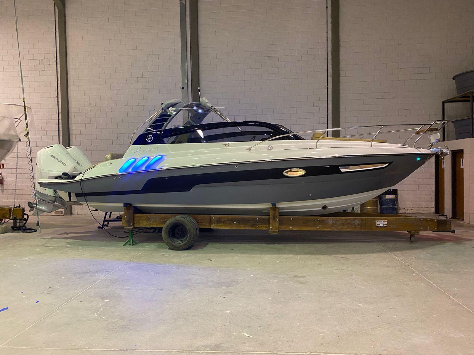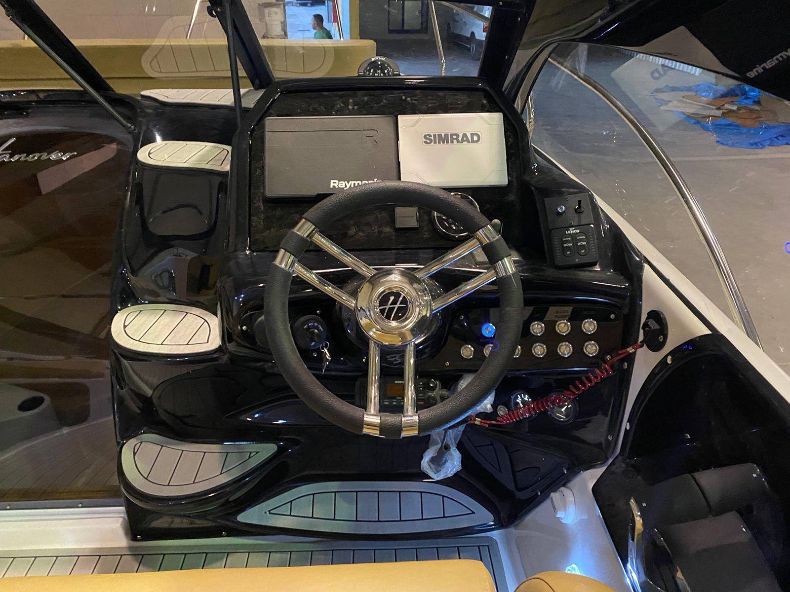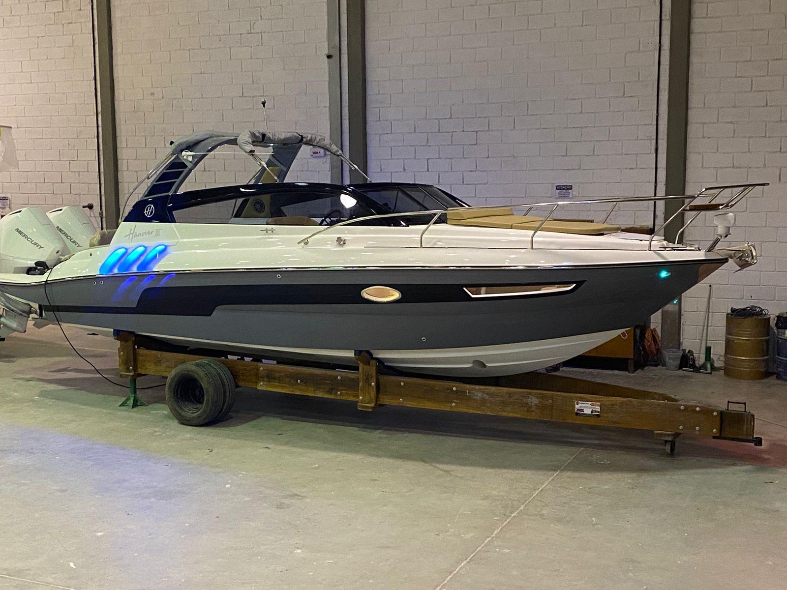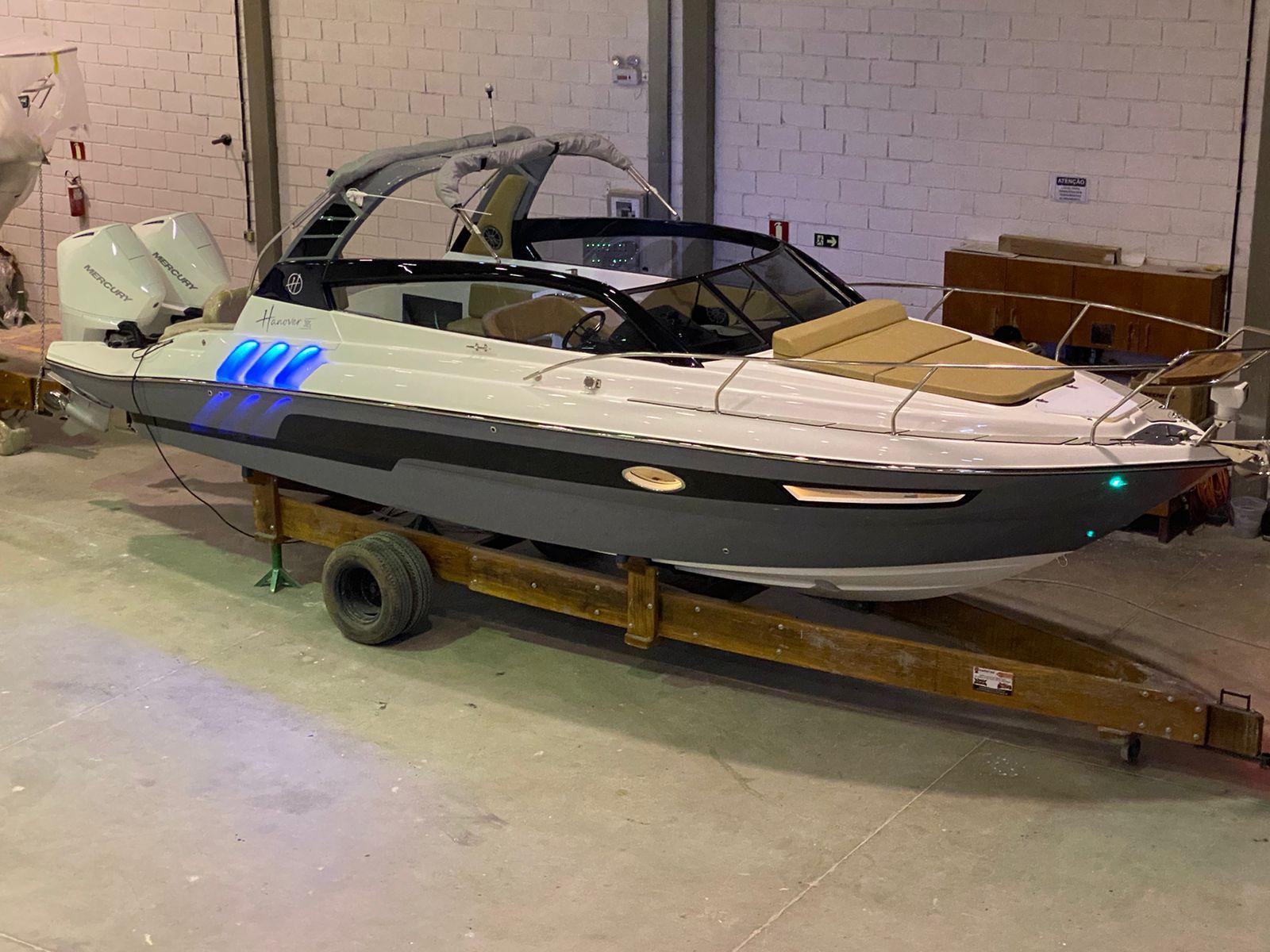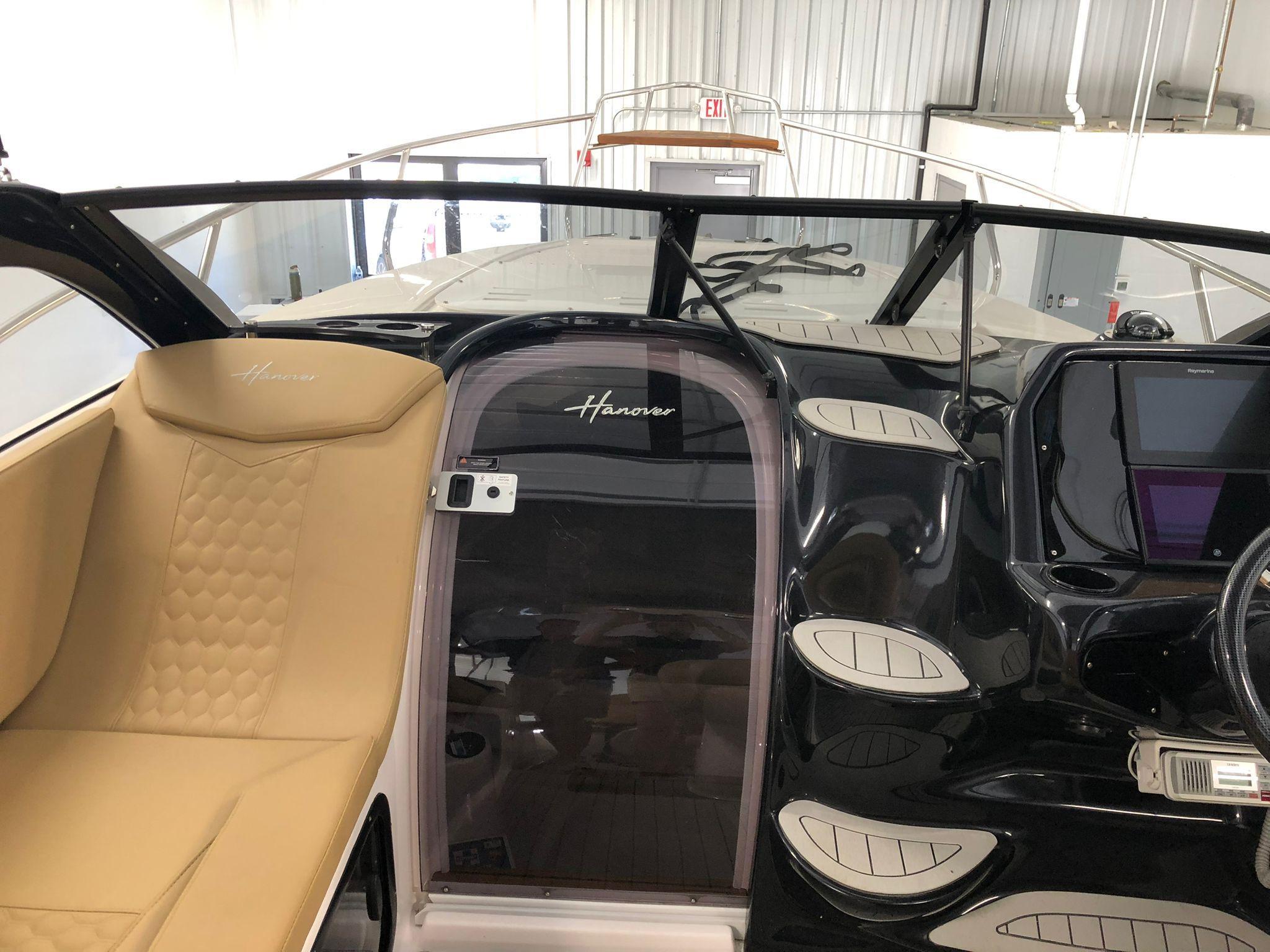 Hanover 305 White & Black EditionEngine Hours: 260ABOUT THE HANOVER 305:It's powered by a Twin Mercury 225HP V6 OUTBOARDSFULLY LOADED:• Hanover 305 Outboard, Premium Package• Headlights w/ Remote (Cruising Spotlight)• Underwater Lights (PAIR)• GPS SIMRAD® GO9 (9”)• Bimini Top Enclosure• FUSION® Sound System + 6 Marine Speakers + Amplifier• Exterior Painting 2 Colors or More (Hull, Deck or HT)• Power Charger/Inverter 1800W • Simrad VHF Radio w/ Antenna • Premium EVA Flooring • Electric Toilet System Anchor Windlass Electric System• Electric Trim Tabs (Flaps) • Fenders & Lines• USCG Boating Safety Kit• Shore Power + Shore Cord 30A• Macerator Pump and Holding Tank• Galvanic Isolator (Electrical Protection)• Premium Teak Table (Cockpit)• Exterior Sport Painting and Sport Seats • Folding Solarium Sunbeds (Bow)• USB Extra Socket• Italian Steering WheelTechnical Specifications:• Length: 33' 3"• Beam: 9'• Fuel Tank Capacity: 118 Gallons• Water Tank Capacity: 27 Gallons• Passengers: 12 day / 4 night• Weight: 6,265 lbs