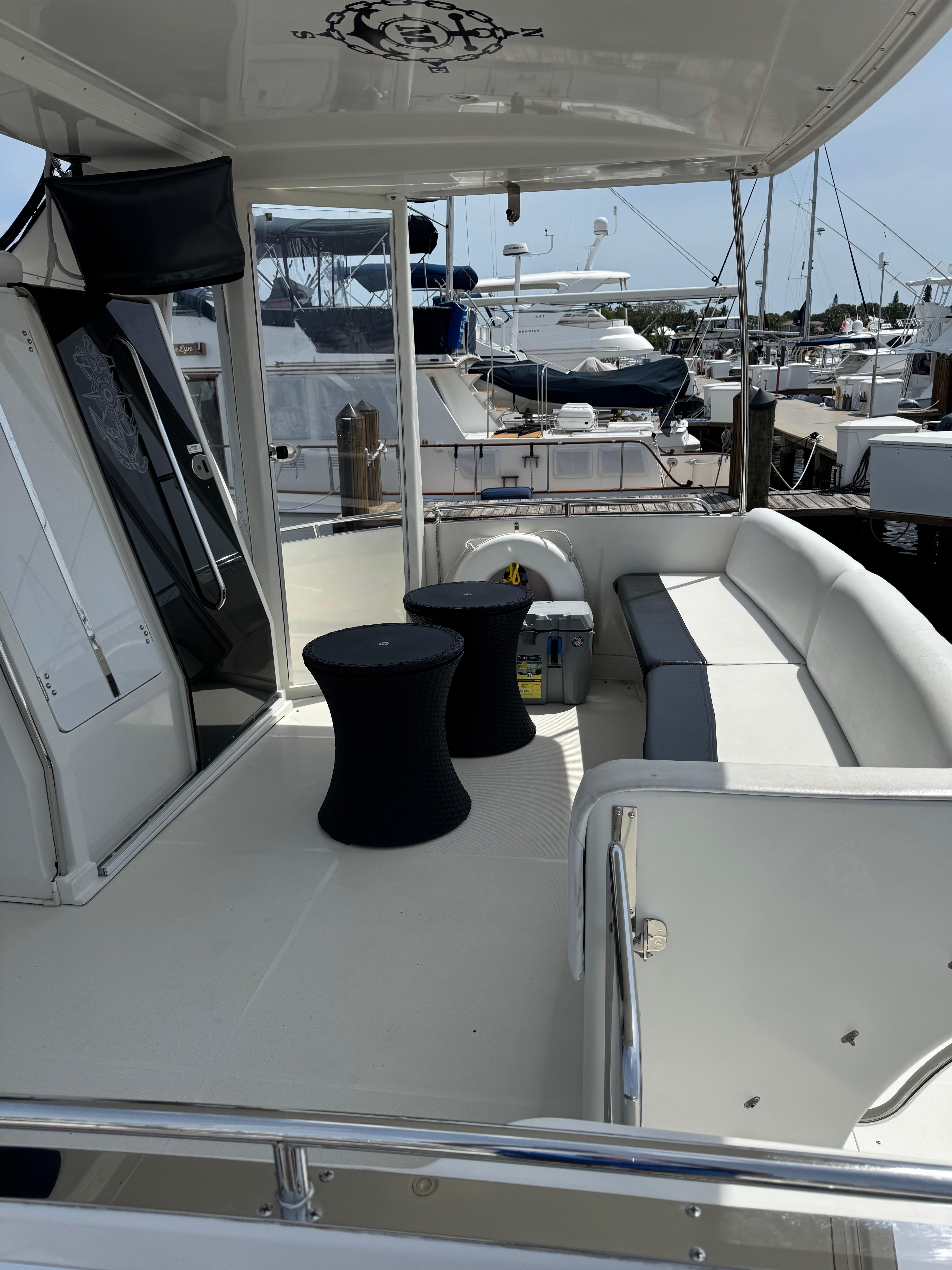 - Flybridge: Spacious with seating for at least six, equipped with new upholstery, full wet bar with a fridge