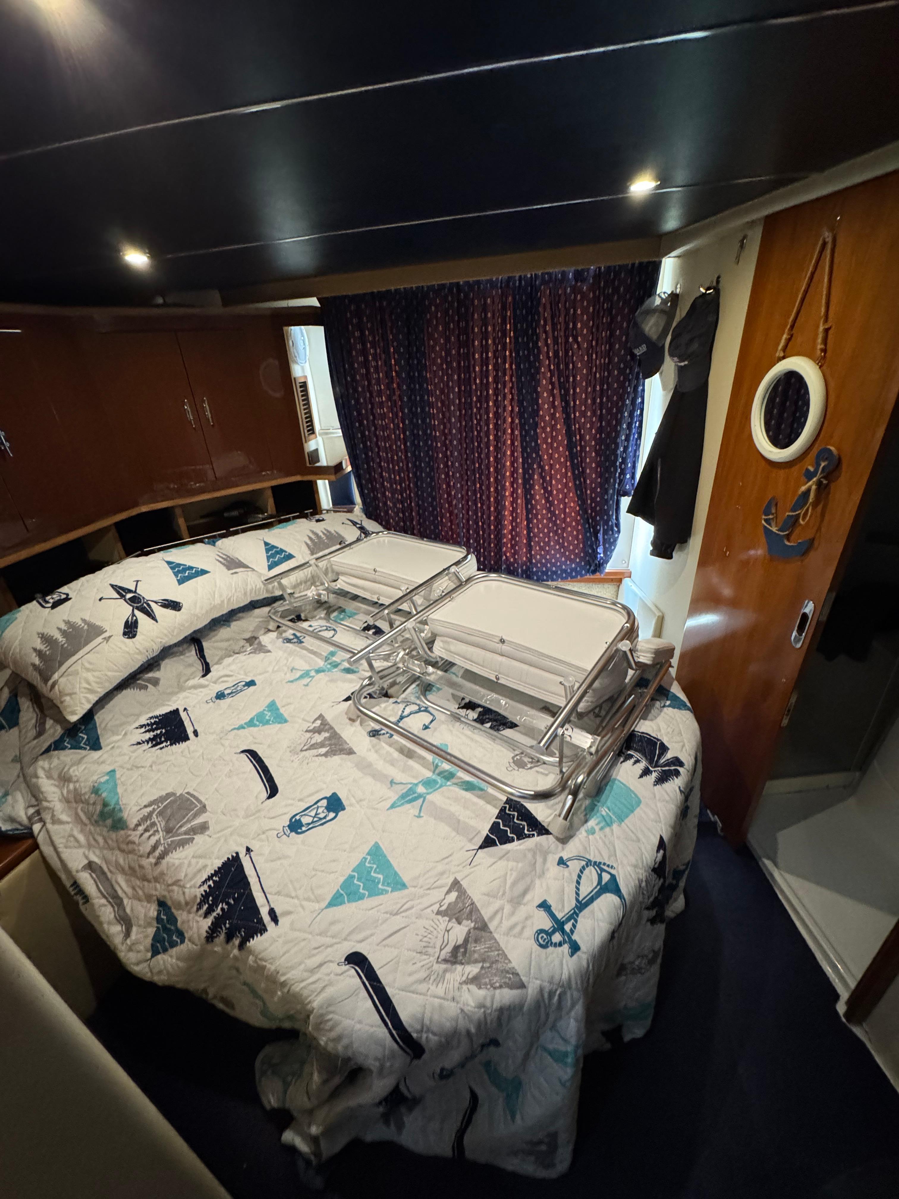 - Staterooms: Two private staterooms?an aft master suite with private cockpit access and a forward guest cabin.