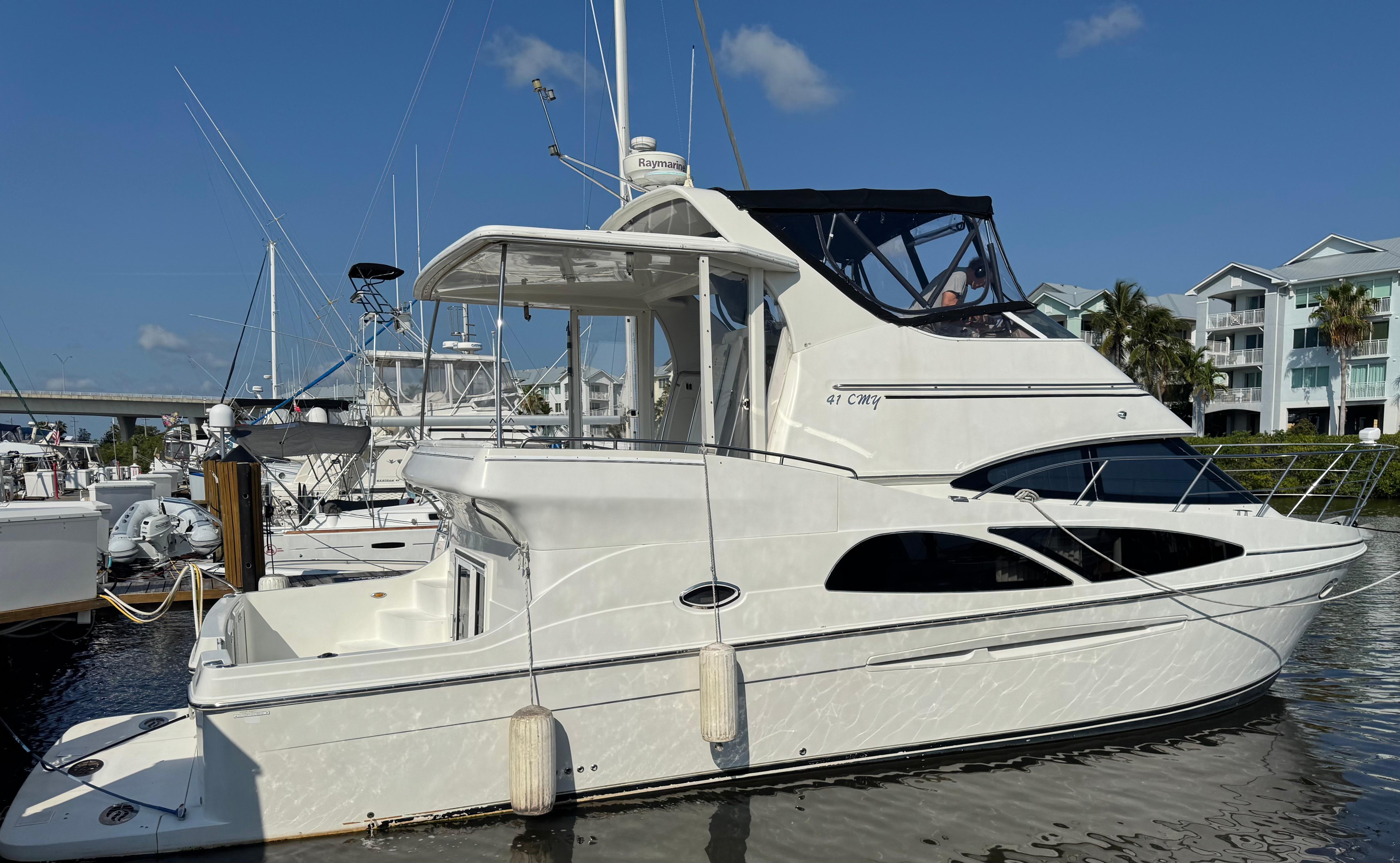 '05 Carver 41 Cockpit Motor Yacht We are pleased to present this Carver 41 Cockpit Motor Yacht Gather your guests on the aft deck and toast to the sunset, or round up the kids and break out the water toys. The extended cockpit on the 41 Cockpit Motor Yacht offers plenty of room for both stylish entertainment and aquatic fun. What's more, is well-appointed environments and updated amenities change the playing field of what yachters can expect from a high-quality, intelligently designed leisure vessel.The cockpit is a key strategy to all-out recreational enjoyment. Its inviting sunlit space and tempting swim platform promise to deliver winning options in yachting fun and the ultimate way to tailgate. Family fun or social activities also kick off easily in the open salon, on the shaded aft deck, or atop the spacious bridge.The popular en suite arrangement of Carver's Motor Yacht series, combined with the inviting calm of the designer decor on the 41 make calling it a day an absolute pleasure. Two comfortable staterooms and two heads are separated by the entire length of the yacht for welcome privacy. Contemporary updates and classic design team up to make this model an unbeatable choice in cruising pleasure. With so may areas for entertaining and so much comfort throughout, the 41 Cockpit Motor Yacht is sure to create an avid fan following.