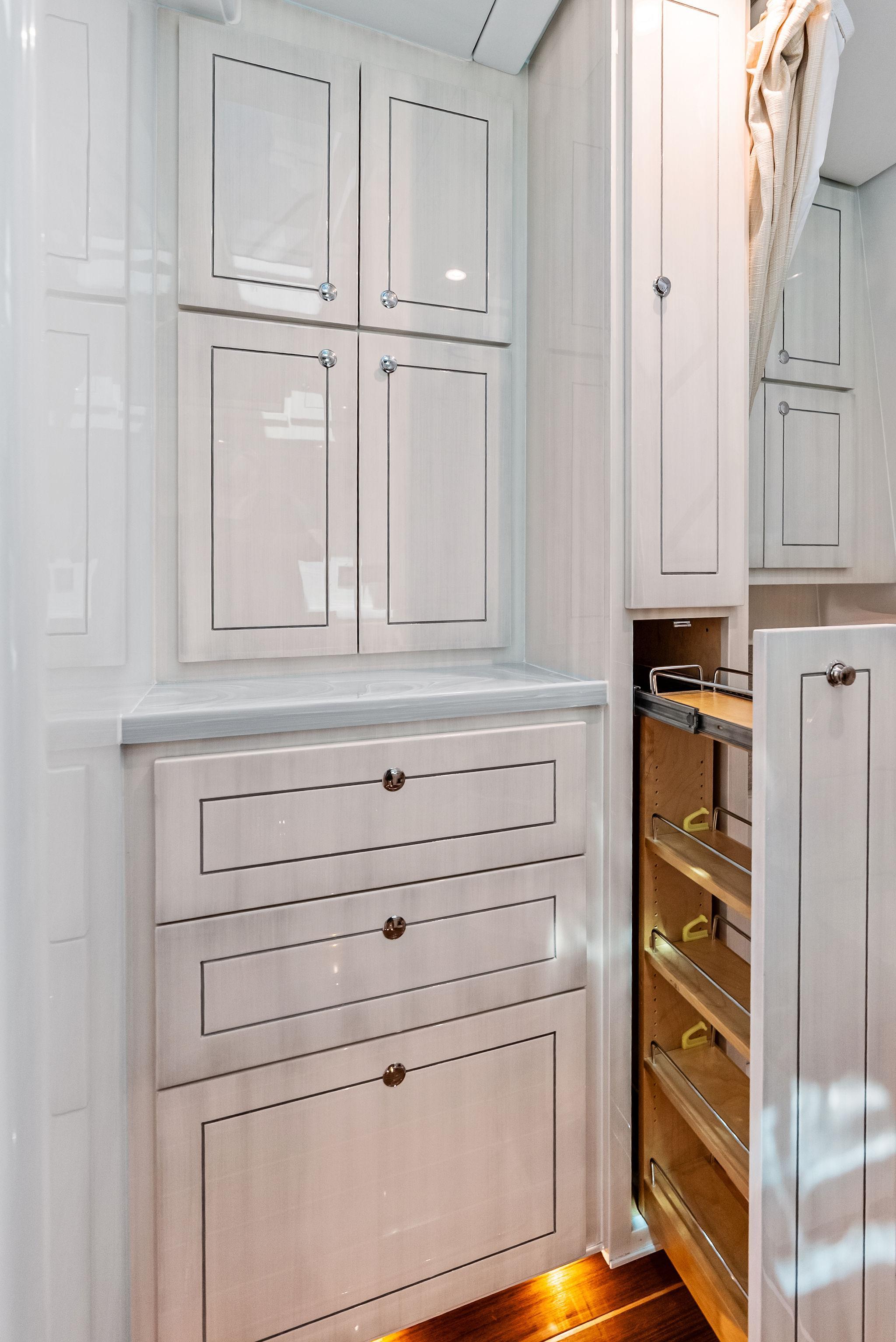 - Aft facing seat with sink to port and grill to starboard with pull out wastebasket