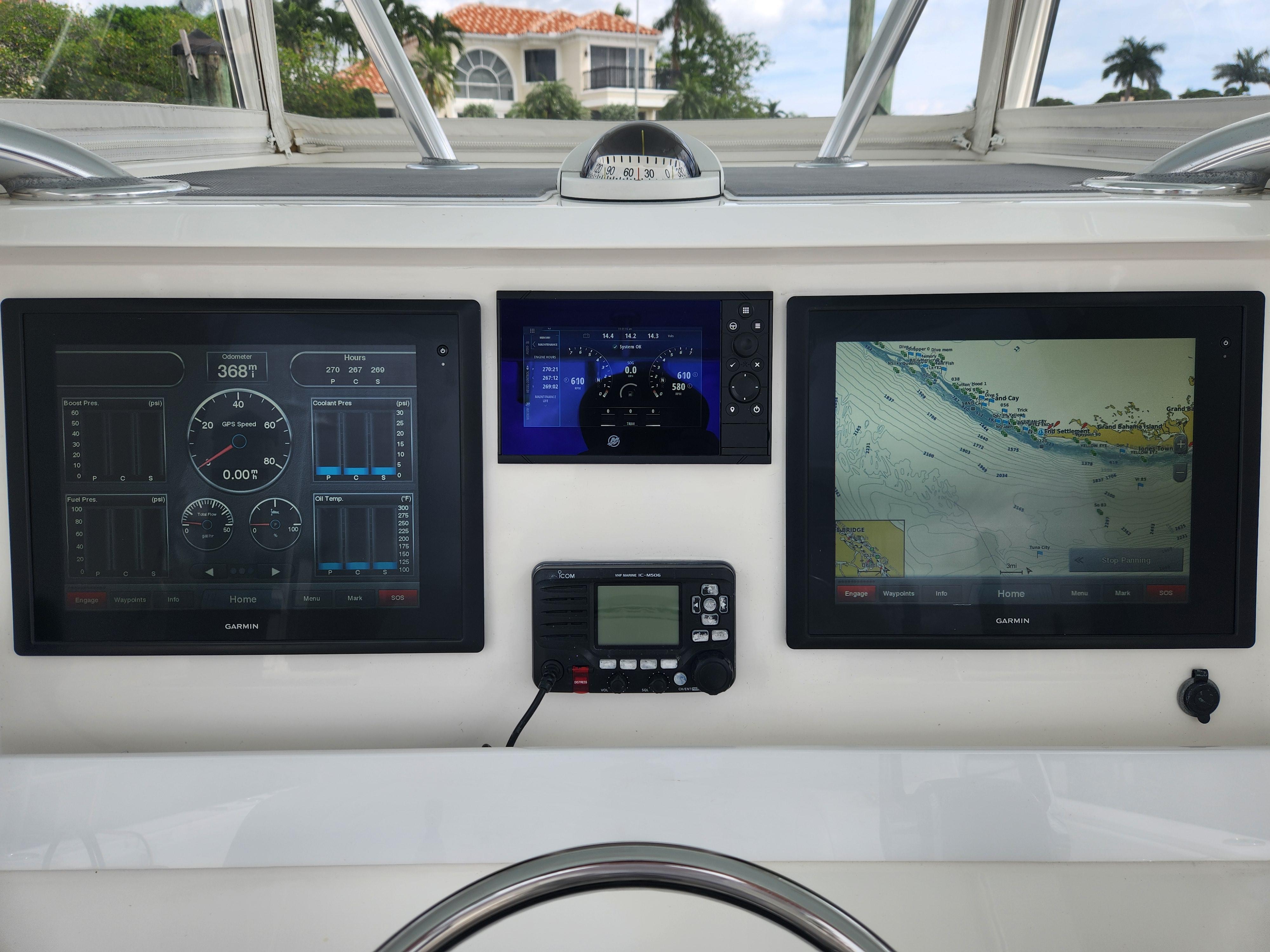 - Icom M506 VHF Radio w/ Shakespeare 8’ Antennas
