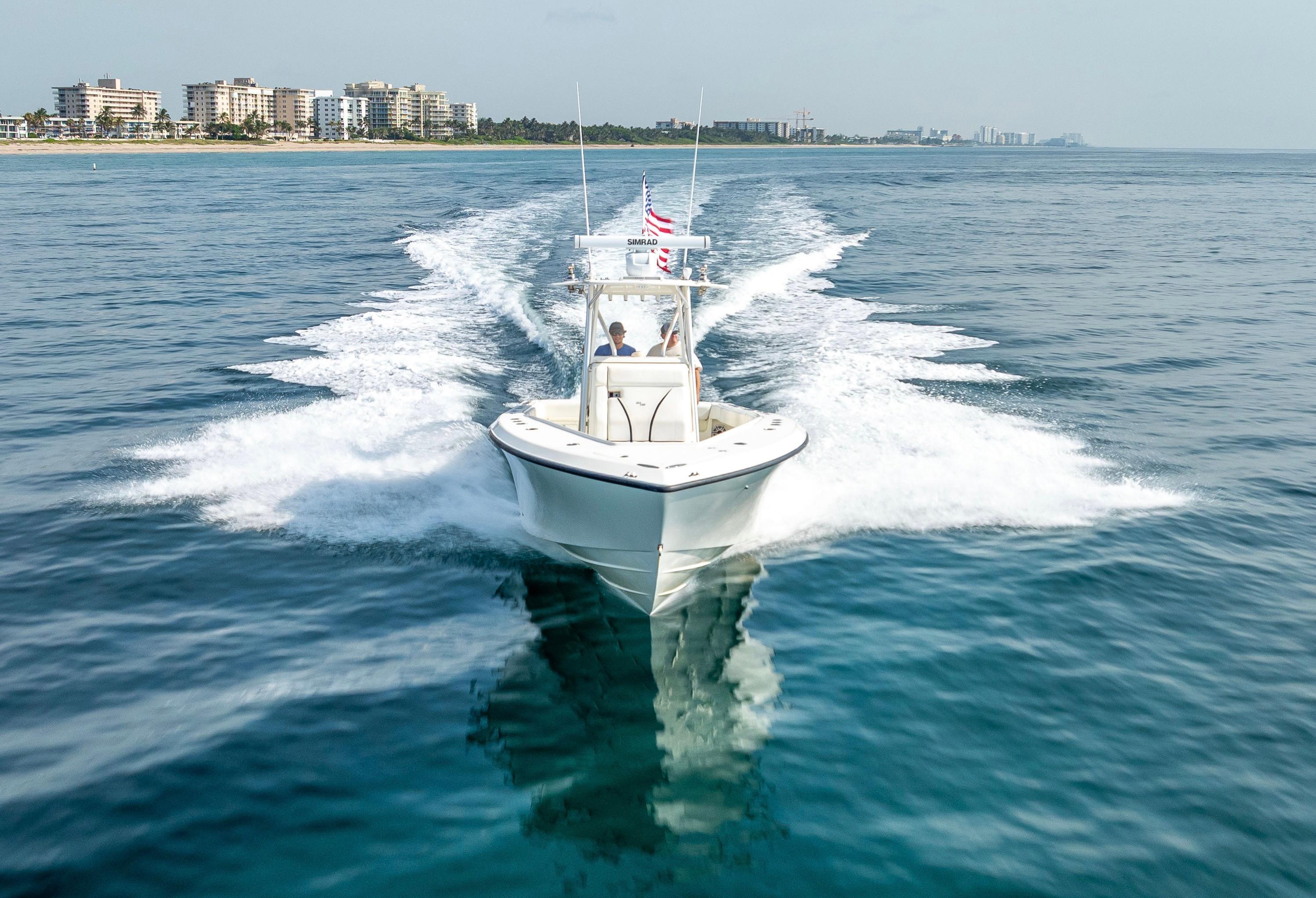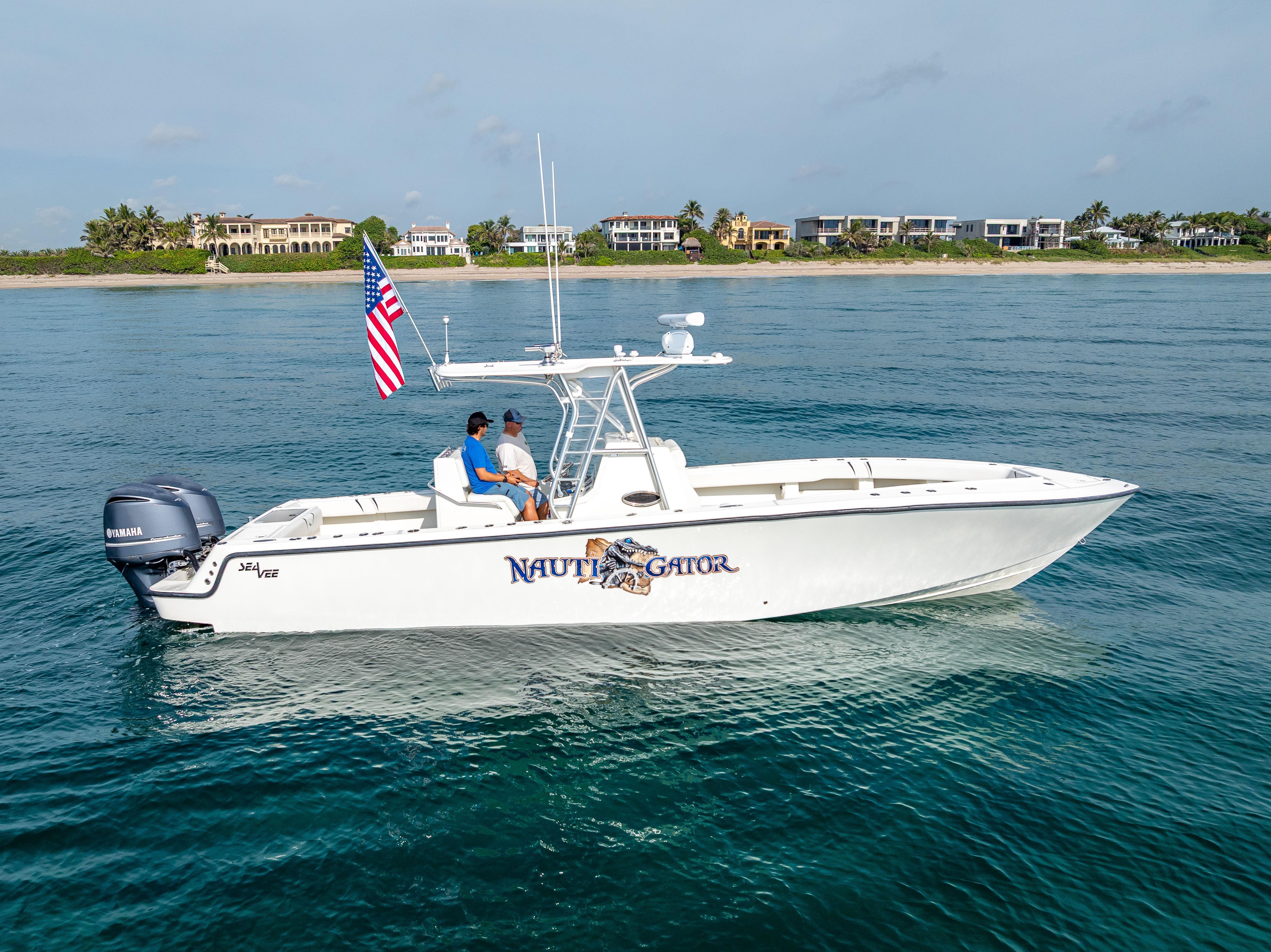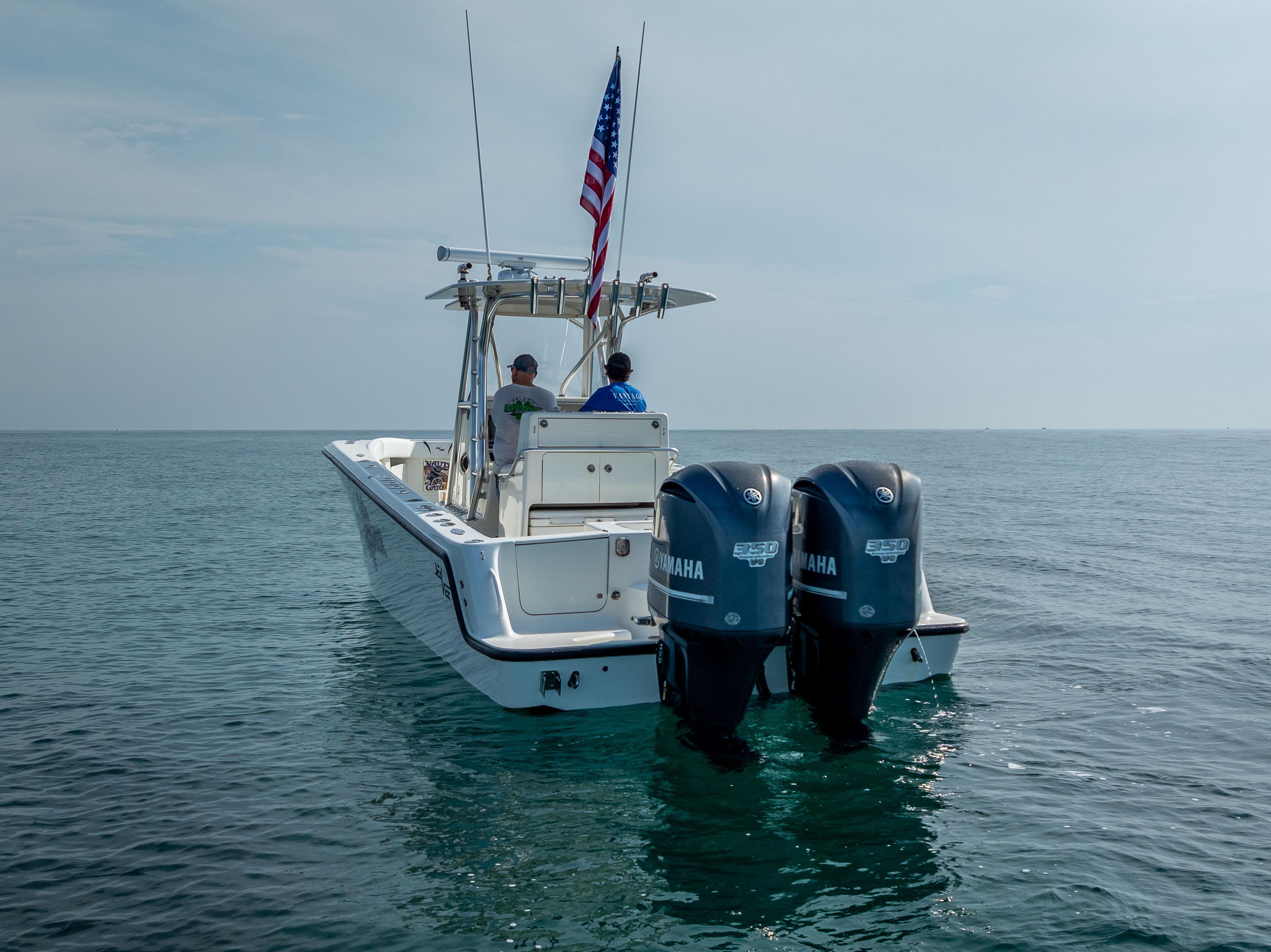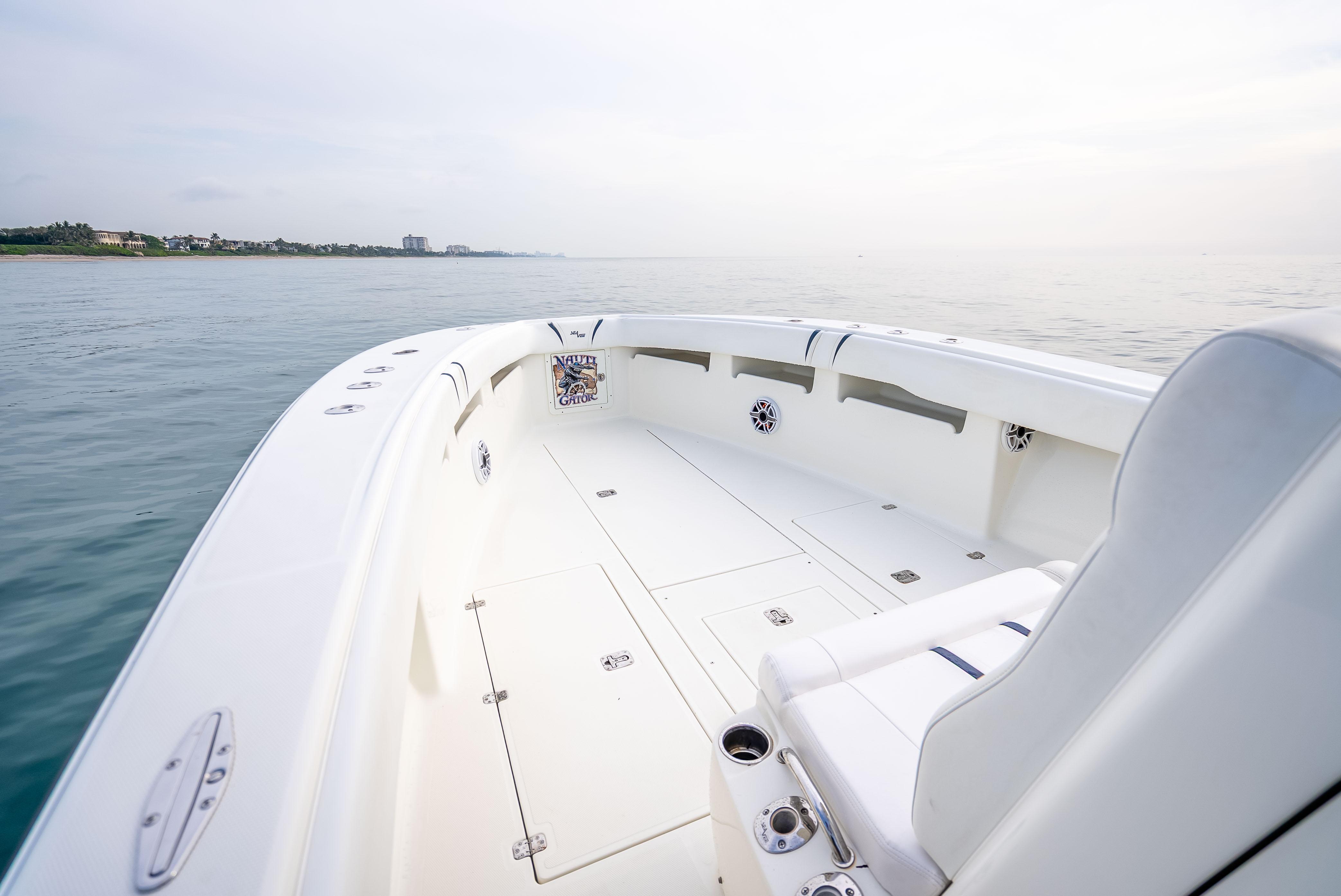 This vessel is undoubtedly a cult classic in the center console market. The SeaVee 340B stands out as one of the most sought-after mid-range center consoles ever constructed, and for excellent reasons. It boasts generous cockpit space, an exceptional live well system (featuring four wells in this specific model), abundant storage inside the console (easily accommodating kites), and a ride that’s truly unparalleled. Let us guide you through its remarkable features. This 2014 SeaVee 340B has a white hull as well as matching white interior. Helm:Dual 16in Simrad NsEvo 3’s in a recessed console box Simrad Control mounted on dash Fusion stereo head unit Yamaha Smart gaugeYamaha push button start Yamaha throttles VHF Radio Trim tab switches Wireless phone charger mounted on dash SeaVee switch panel mounted on lower part of dash High speed compass Stainless steel steering wheel Dual cupholders on dashIsinglass windshields and side panels 8 rod holders down each side of console 2 cup holders on the front of console on each side of forward seat 6 rod holders across the top of hardtop Gemlux outrigger bases Leaning post with built-in tackle station, 5 rod holders, 4 cup holders, aft grab rail Aft pull-out cooler on slide Open ray Simard Radar on hard top 2 VHF antennas Forward facing spreader bar Anchor lightConsole interior: Sliding console door Sink SeaVee breaker board Windows on each side of console Full electronic access Live wells and pumps: 4 pump best marine pump box. Large in deck aft live well (90 gallons) Large forward in deck live well (53 gallons) Transom live well 80 gallons Additional transom live well 25 gallons Stereo System: 12 JL Audio speakers JL Audio amplifier Fusion stereo head unit Storage: Forward Fish box Port and Starboard forward storage compartments (doubles as rod locker) Built in rope and washdown hose storage Engines: Twin 2014 Yamaha 350’s with 725 hours