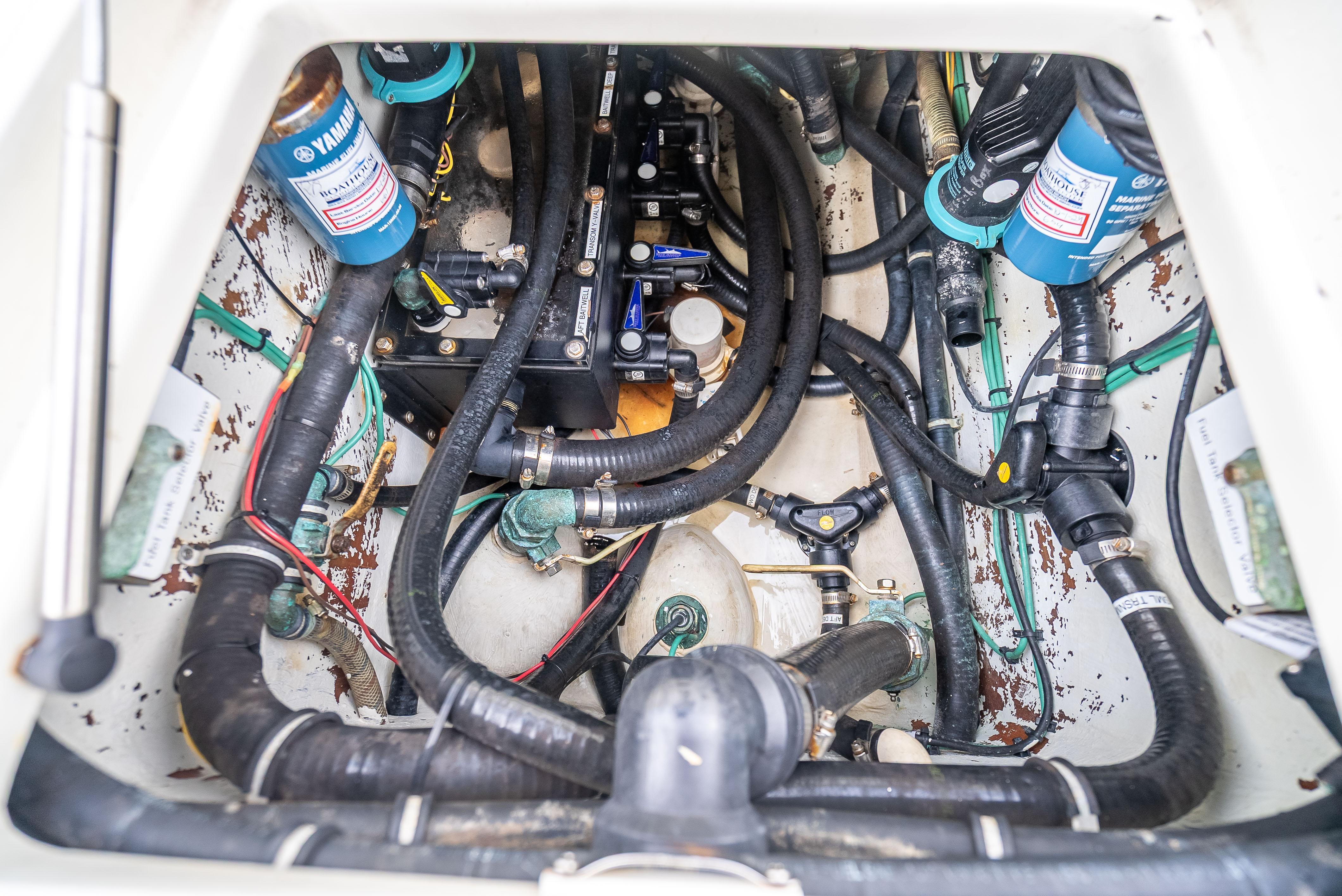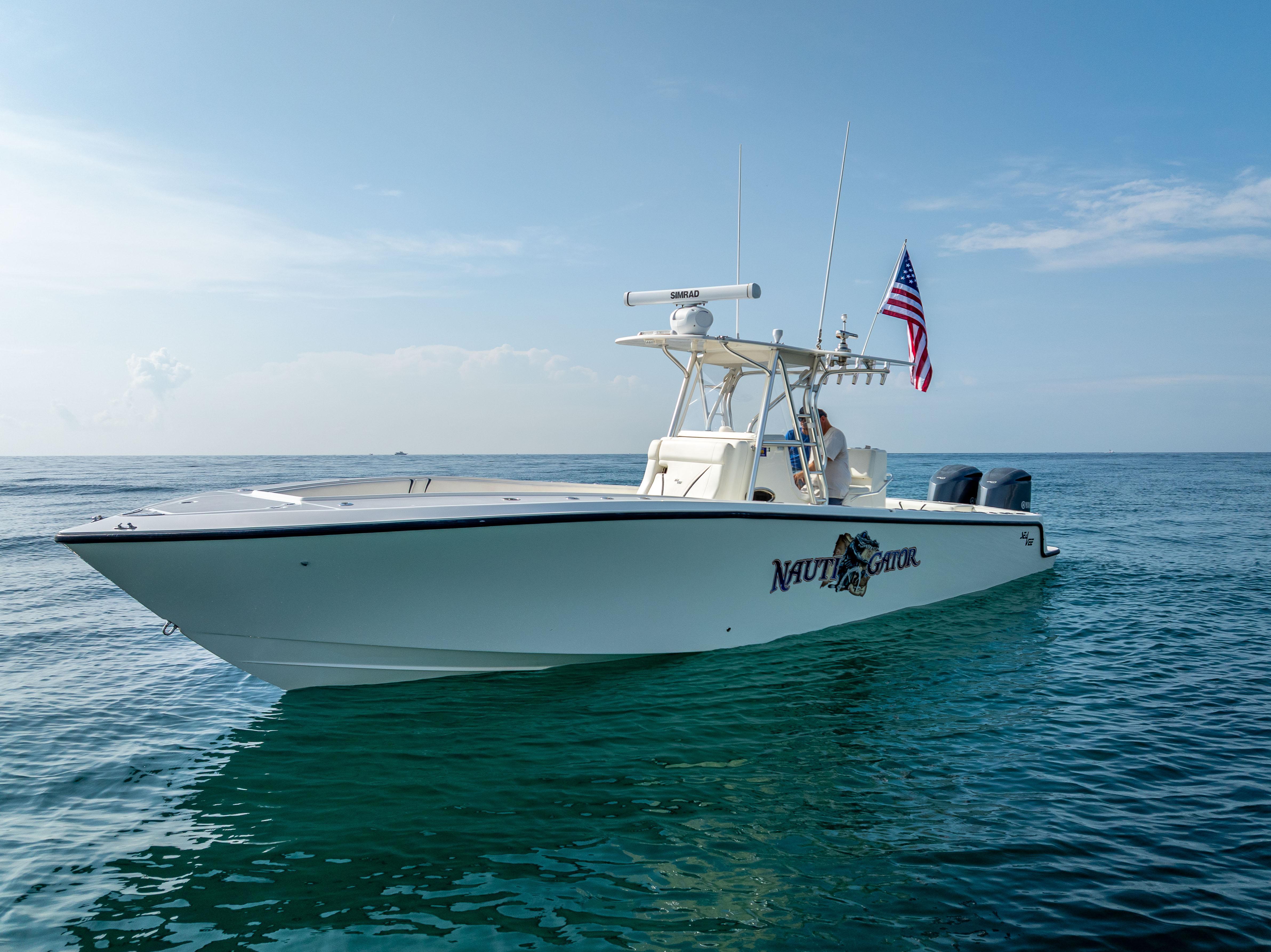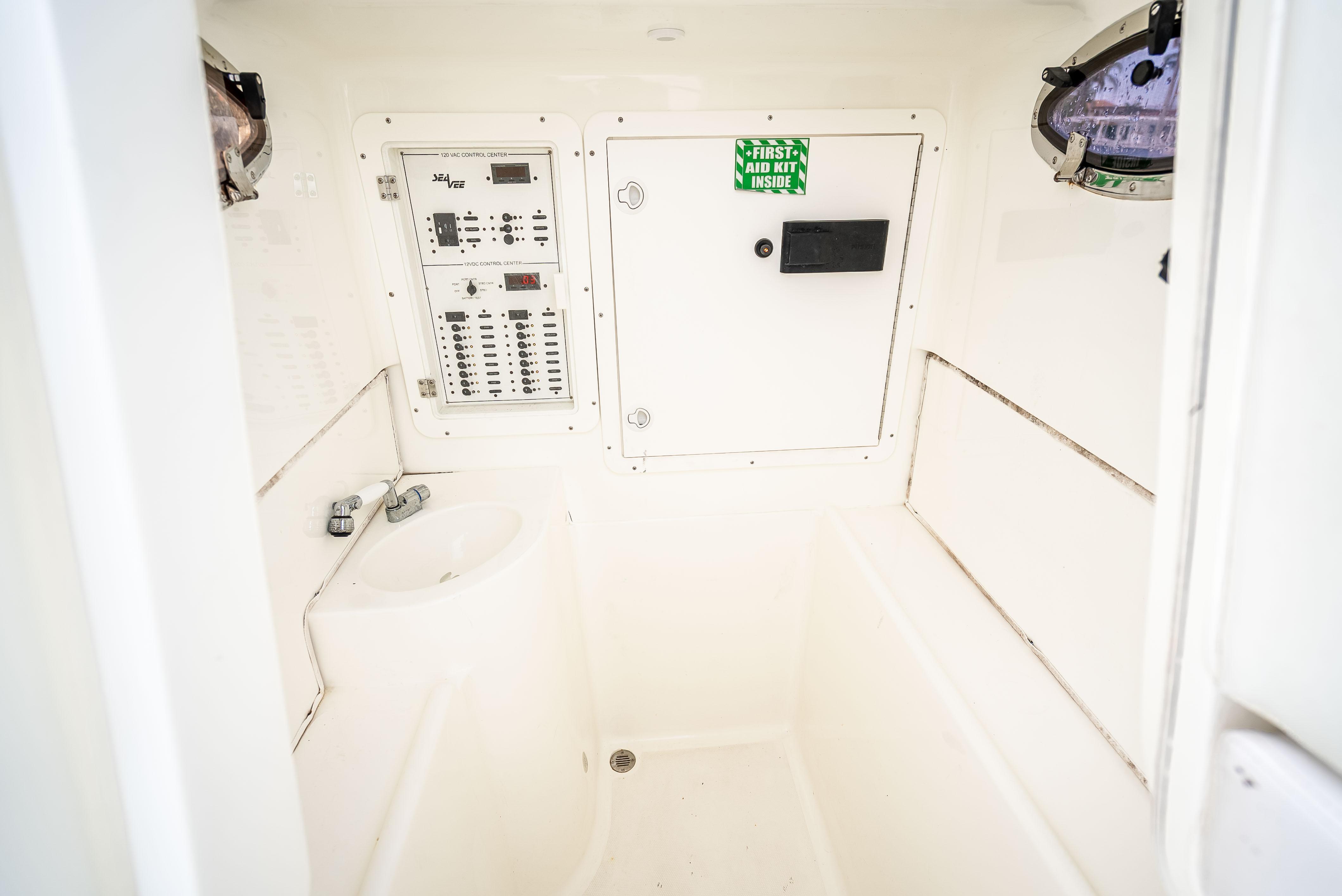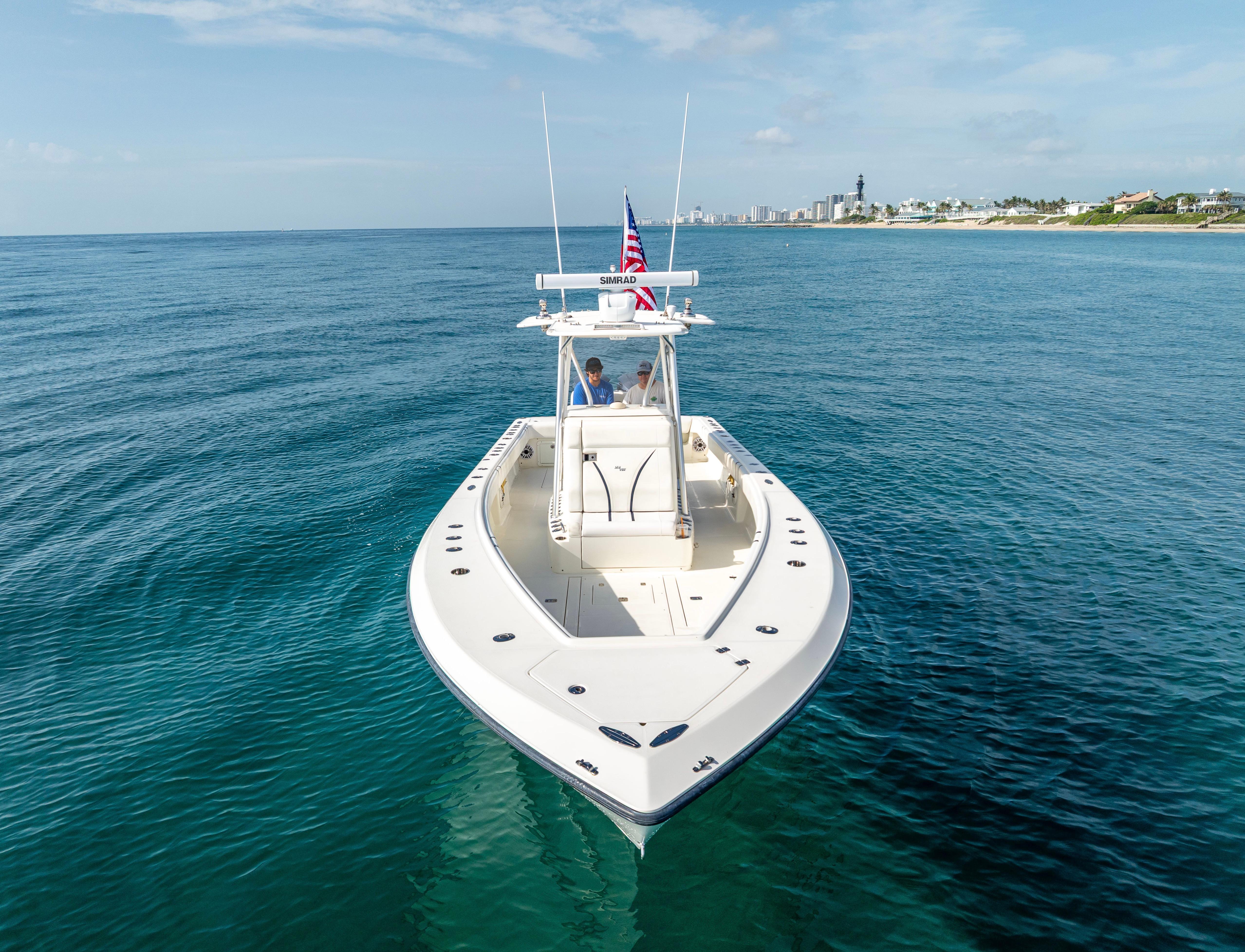This vessel is undoubtedly a cult classic in the center console market. The SeaVee 340B stands out as one of the most sought-after mid-range center consoles ever constructed, and for excellent reasons. It boasts generous cockpit space, an exceptional live well system (featuring four wells in this specific model), abundant storage inside the console (easily accommodating kites), and a ride that’s truly unparalleled. Let us guide you through its remarkable features. This 2014 SeaVee 340B has a white hull as well as matching white interior. Helm:Dual 16in Simrad NsEvo 3’s in a recessed console box Simrad Control mounted on dash Fusion stereo head unit Yamaha Smart gaugeYamaha push button start Yamaha throttles VHF Radio Trim tab switches Wireless phone charger mounted on dash SeaVee switch panel mounted on lower part of dash High speed compass Stainless steel steering wheel Dual cupholders on dashIsinglass windshields and side panels 8 rod holders down each side of console 2 cup holders on the front of console on each side of forward seat 6 rod holders across the top of hardtop Gemlux outrigger bases Leaning post with built-in tackle station, 5 rod holders, 4 cup holders, aft grab rail Aft pull-out cooler on slide Open ray Simard Radar on hard top 2 VHF antennas Forward facing spreader bar Anchor lightConsole interior: Sliding console door Sink SeaVee breaker board Windows on each side of console Full electronic access Live wells and pumps: 4 pump best marine pump box. Large in deck aft live well (90 gallons) Large forward in deck live well (53 gallons) Transom live well 80 gallons Additional transom live well 25 gallons Stereo System: 12 JL Audio speakers JL Audio amplifier Fusion stereo head unit Storage: Forward Fish box Port and Starboard forward storage compartments (doubles as rod locker) Built in rope and washdown hose storage Engines: Twin 2014 Yamaha 350’s with 725 hours
