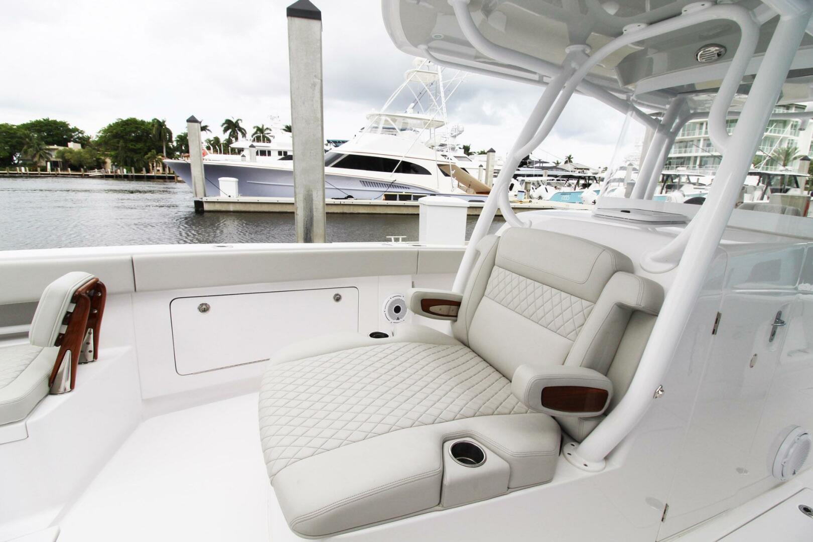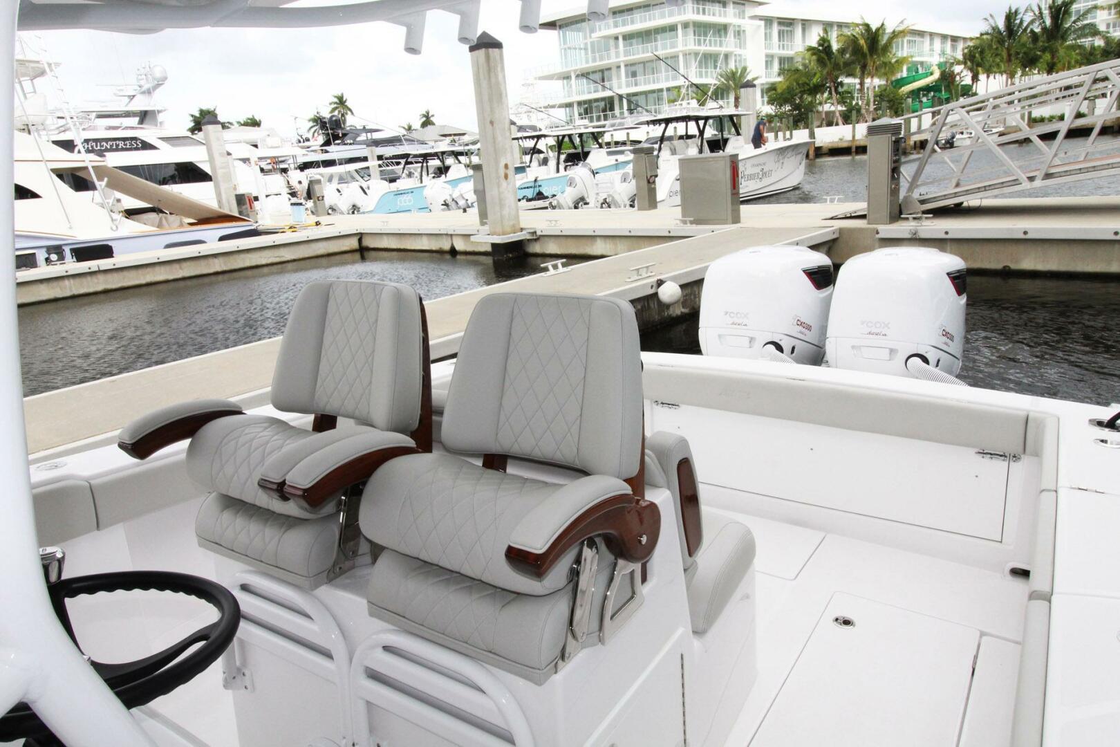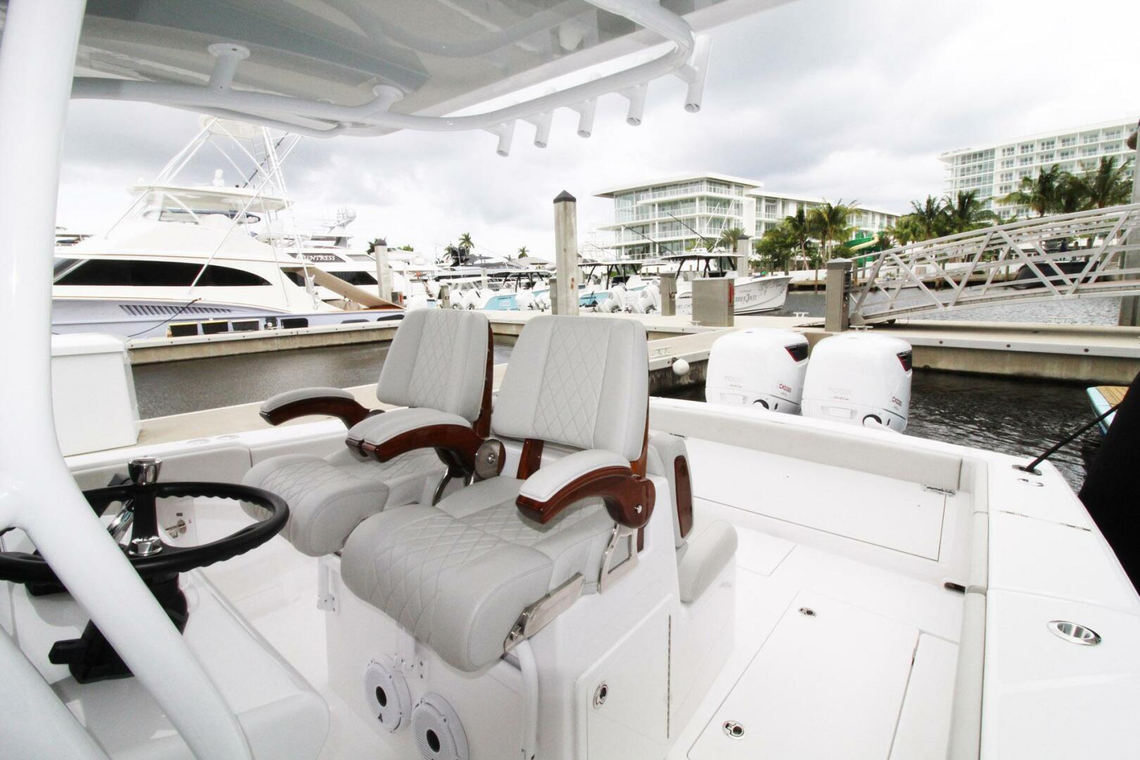 2024 Jupiter 34 HFSThis 2024 Jupiter 34HFS is the ultimate family friendly and fish capable center console. Purpose build to be a high-end yacht tender with sea-keeper ride, Custom stainless tow eye, and twin Cox CXO300 diesel outboards that can be fueled directly from the yachts fuel tanks. This specialized yacht tender can go off grid with extended range, safe fuel, and the capability to refuel from the tow vessel. Long range cruising, with luxury and comfort that Jupiter boats have come to be known for.Options:Windlass with SS anchor and lineRelease marine Teak forward seating backrestsStern jump seat (Integrated folding seat)Mezzanine seating with Live-WellSingle underwater LEDCup holder upgrade on two extra pair of 30 deg bow rod holders (gunwale mounted)Transom rod holderMolded Glove Box with Dual USB Charging PortCompassEdson Black Steering WheelEasy Access Entry Door to HeadElectronics Compartment at HelmMolded Insulated Drink Cooler 85 QuartsAcrylic WindshieldPower Outlet, 12VCustom Oversize Console with Stand-Up Head CompartmentVentilating Bomar HatchMolded Sink with Pull Out ShowerSun Lounge Console Cooler