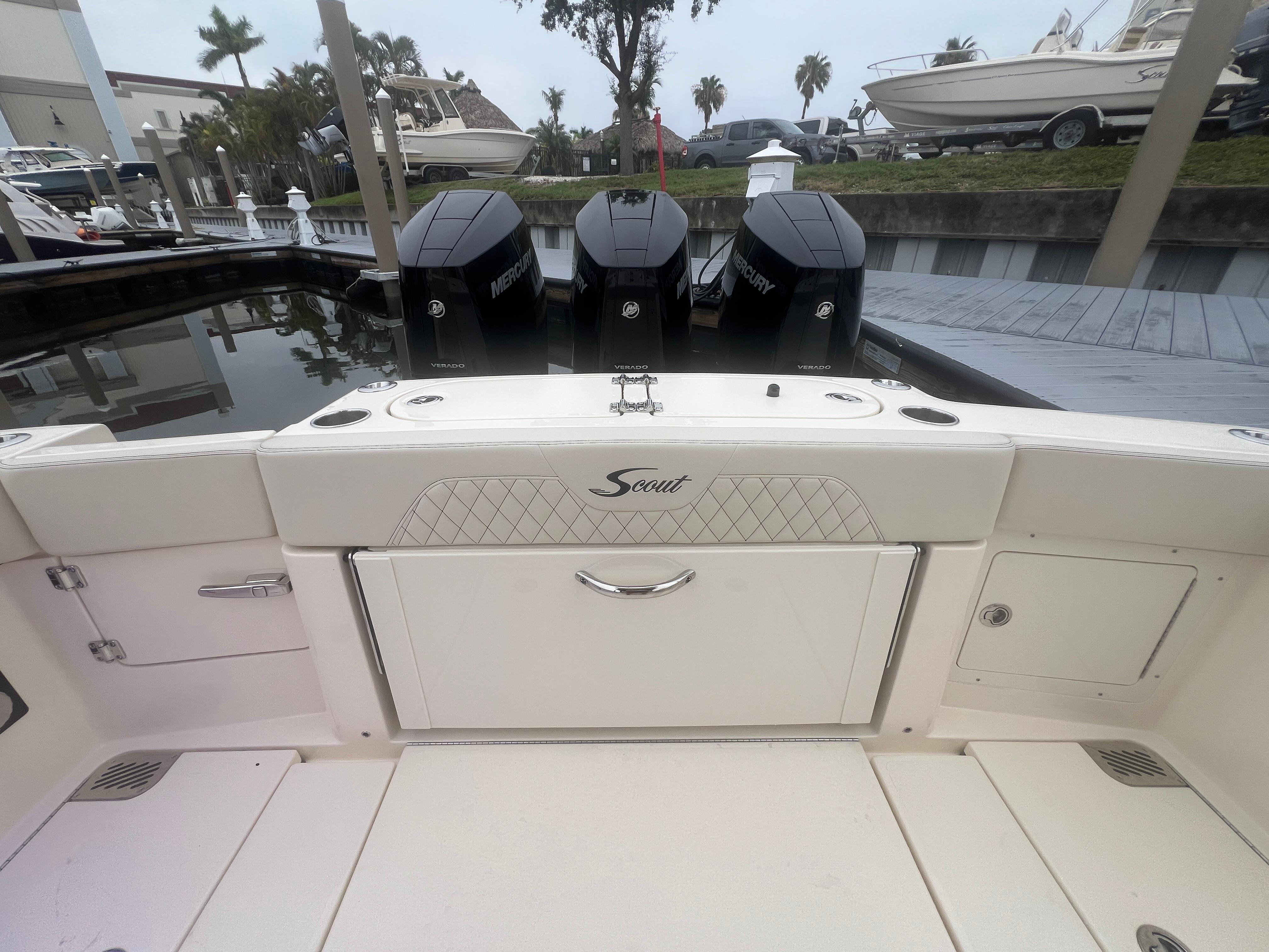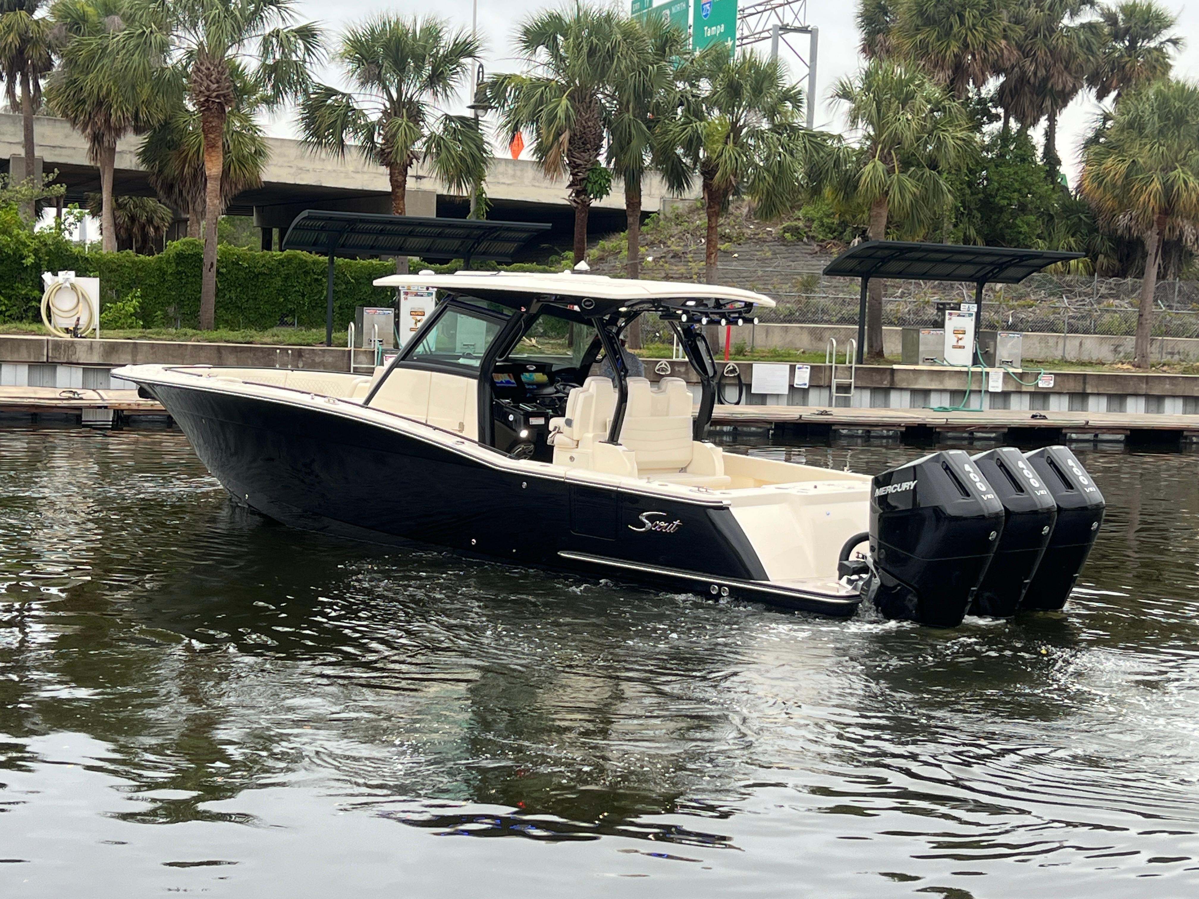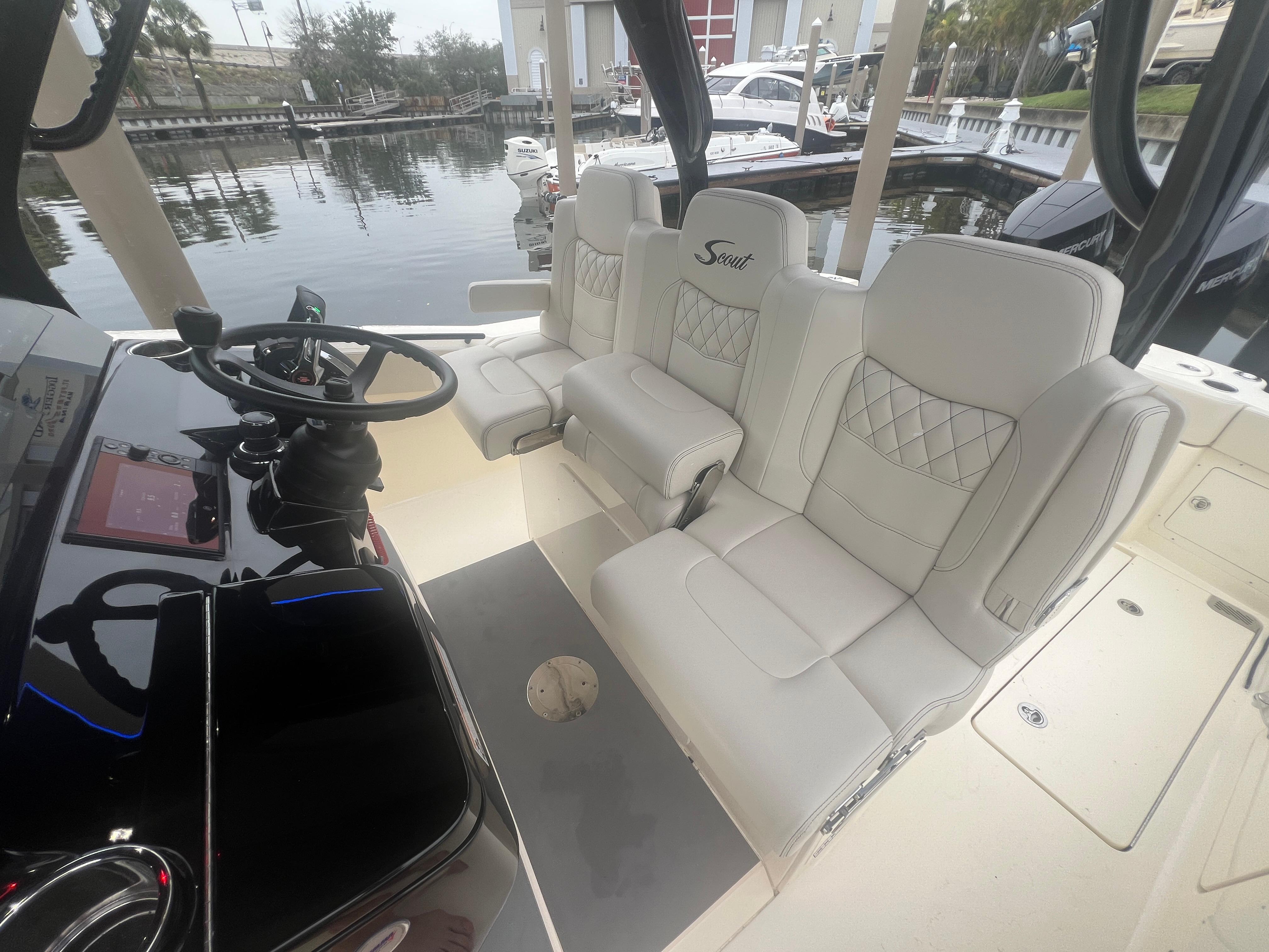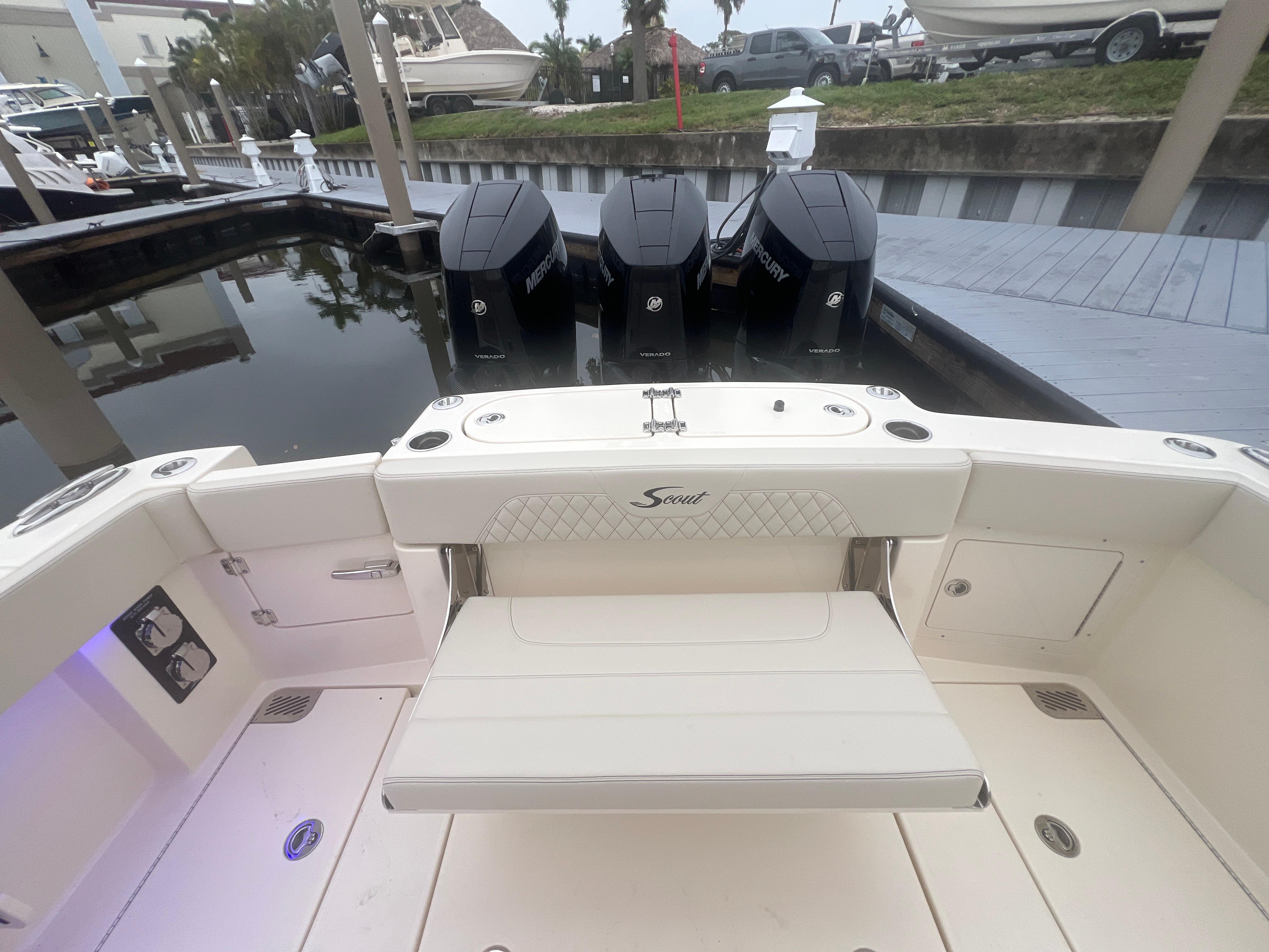 Scout has done it again with this amazing 357LXF. Wether on the water, on your lift, or docked at a restaurant, she is sure to turn heads. Discover more, with ScoutKey Features Include:Triple Mercury 400 V10's with Joystick Piloting3 Garmin Screens (2) 12" & (1) 16"Full Hull Color BlackMidnight EditionDeluxe Stereo UpgradeBianca UpholsteryElectric Fiberglass ShadeRetractible Ro cket Launchers, (Auto-deploy to egress Electric Shade)Air ConditioningPhone to Garmin via HDMIEdson Steering WheelWindshield WiperBow Cup/Rod Holder ComboPrewired for Radar, FLIR, & VHF RadioAnd Much More!***Call Today to Learn More or Schedule a Private Showing***