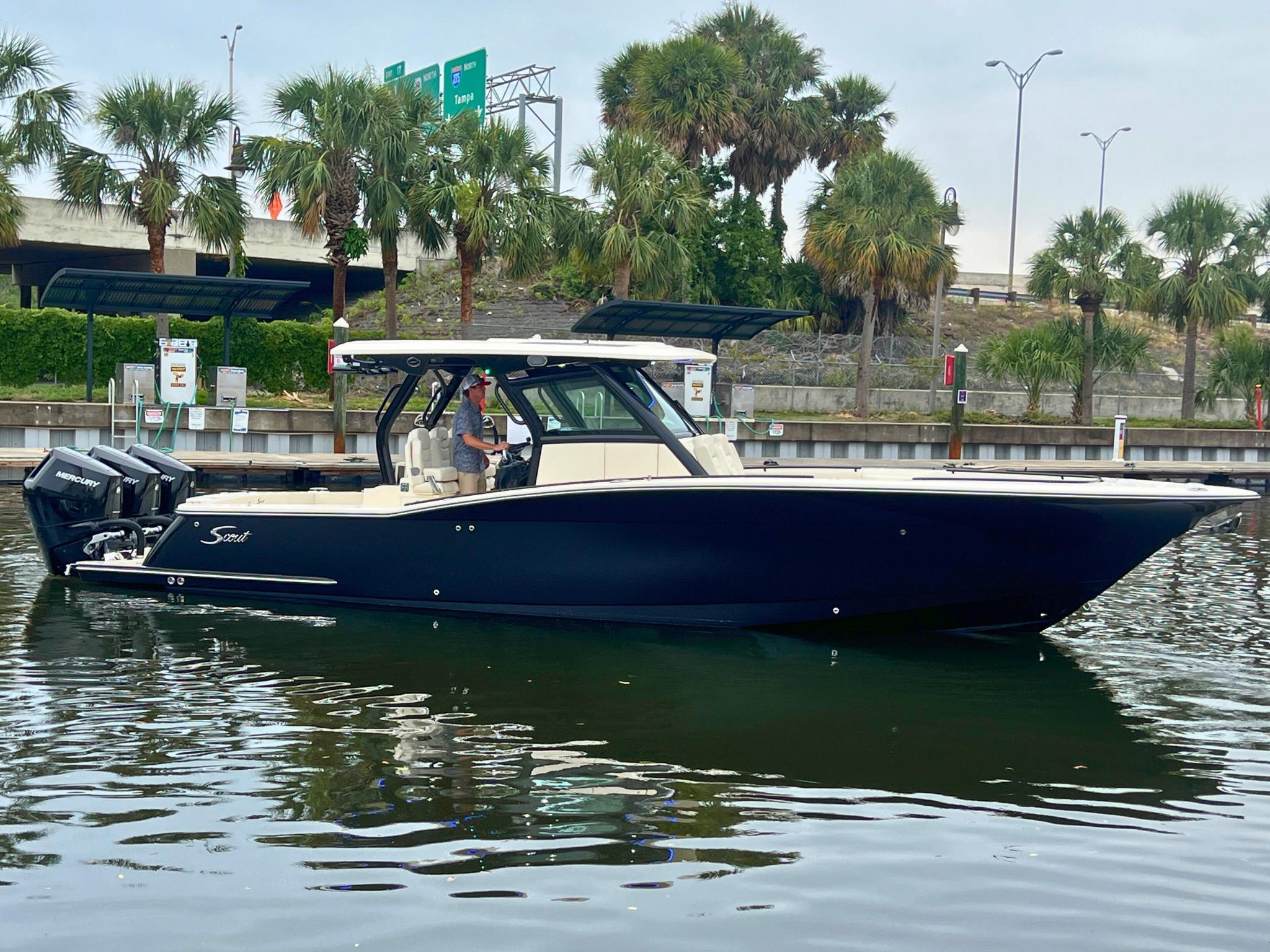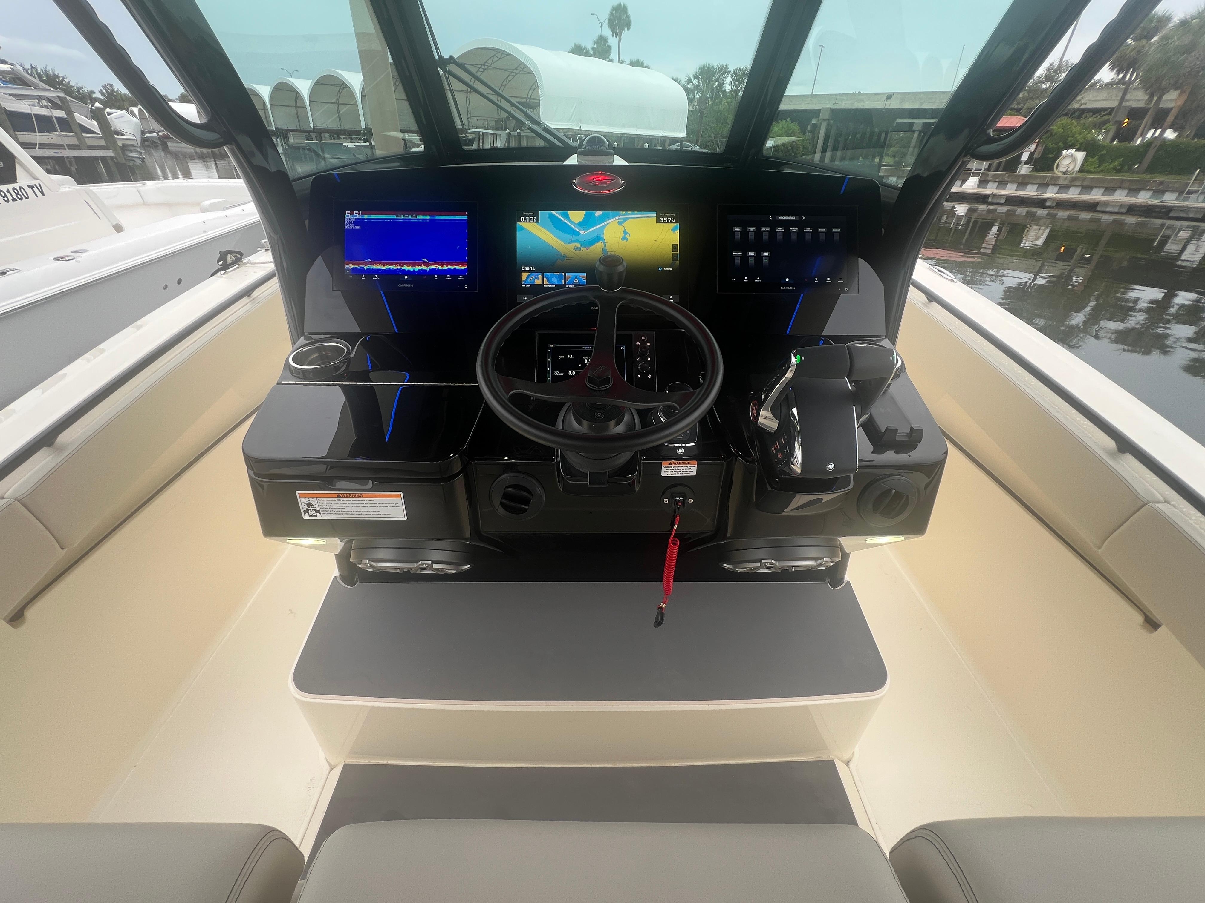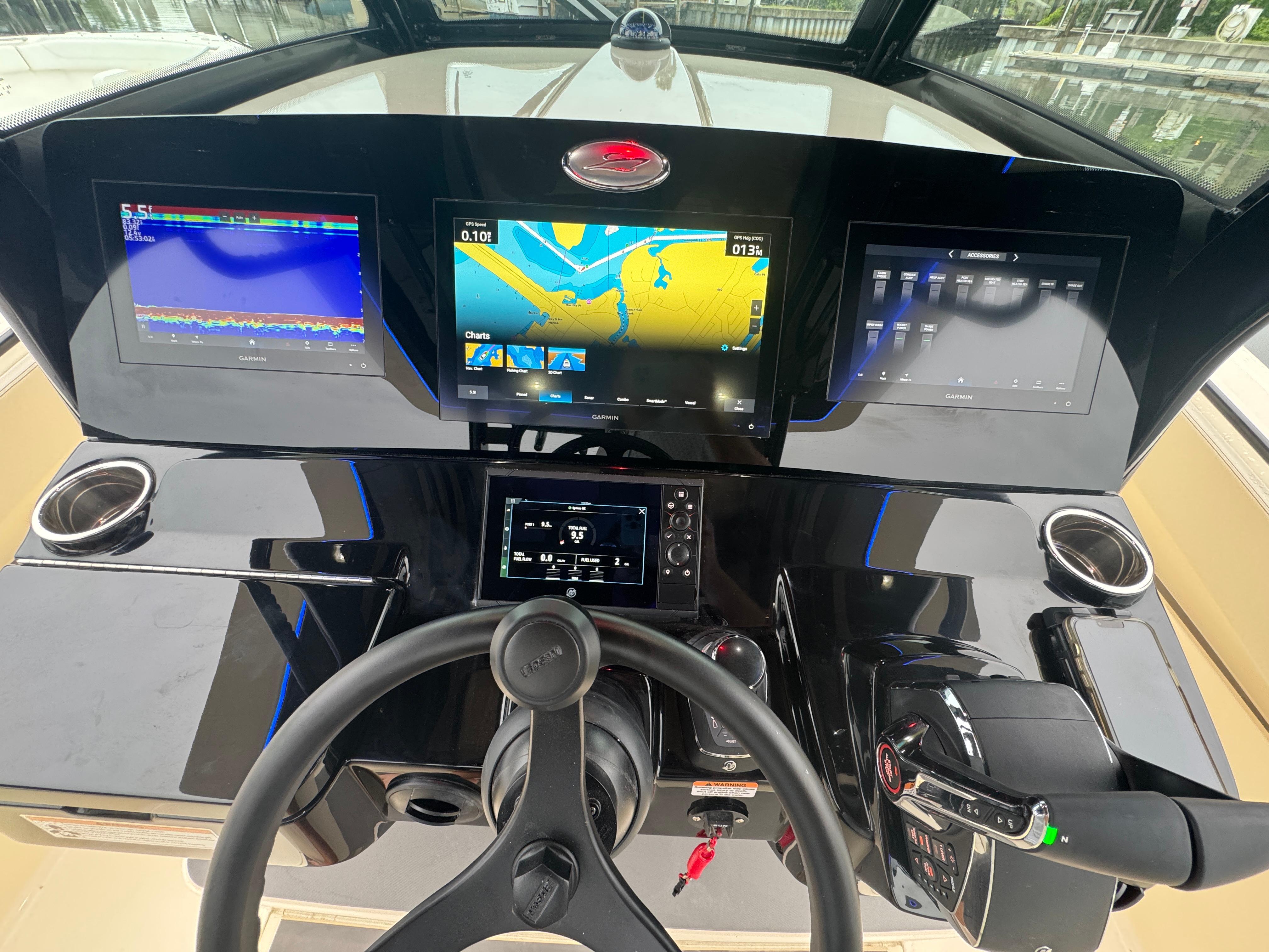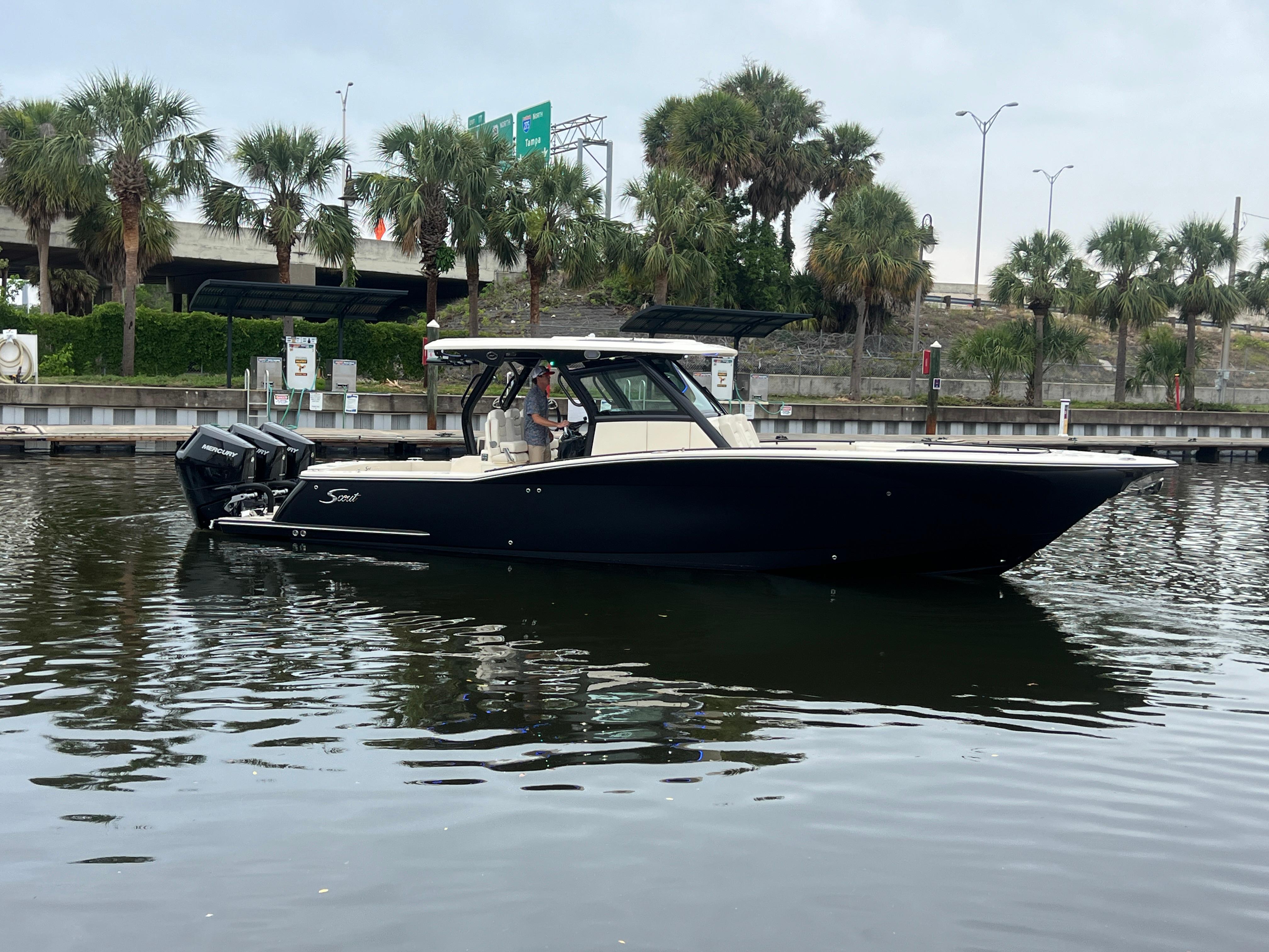 Scout has done it again with this amazing 357LXF. Wether on the water, on your lift, or docked at a restaurant, she is sure to turn heads. Discover more, with ScoutKey Features Include:Triple Mercury 400 V10's with Joystick Piloting3 Garmin Screens (2) 12" & (1) 16"Full Hull Color BlackMidnight EditionDeluxe Stereo UpgradeBianca UpholsteryElectric Fiberglass ShadeRetractible Ro cket Launchers, (Auto-deploy to egress Electric Shade)Air ConditioningPhone to Garmin via HDMIEdson Steering WheelWindshield WiperBow Cup/Rod Holder ComboPrewired for Radar, FLIR, & VHF RadioAnd Much More!***Call Today to Learn More or Schedule a Private Showing***
