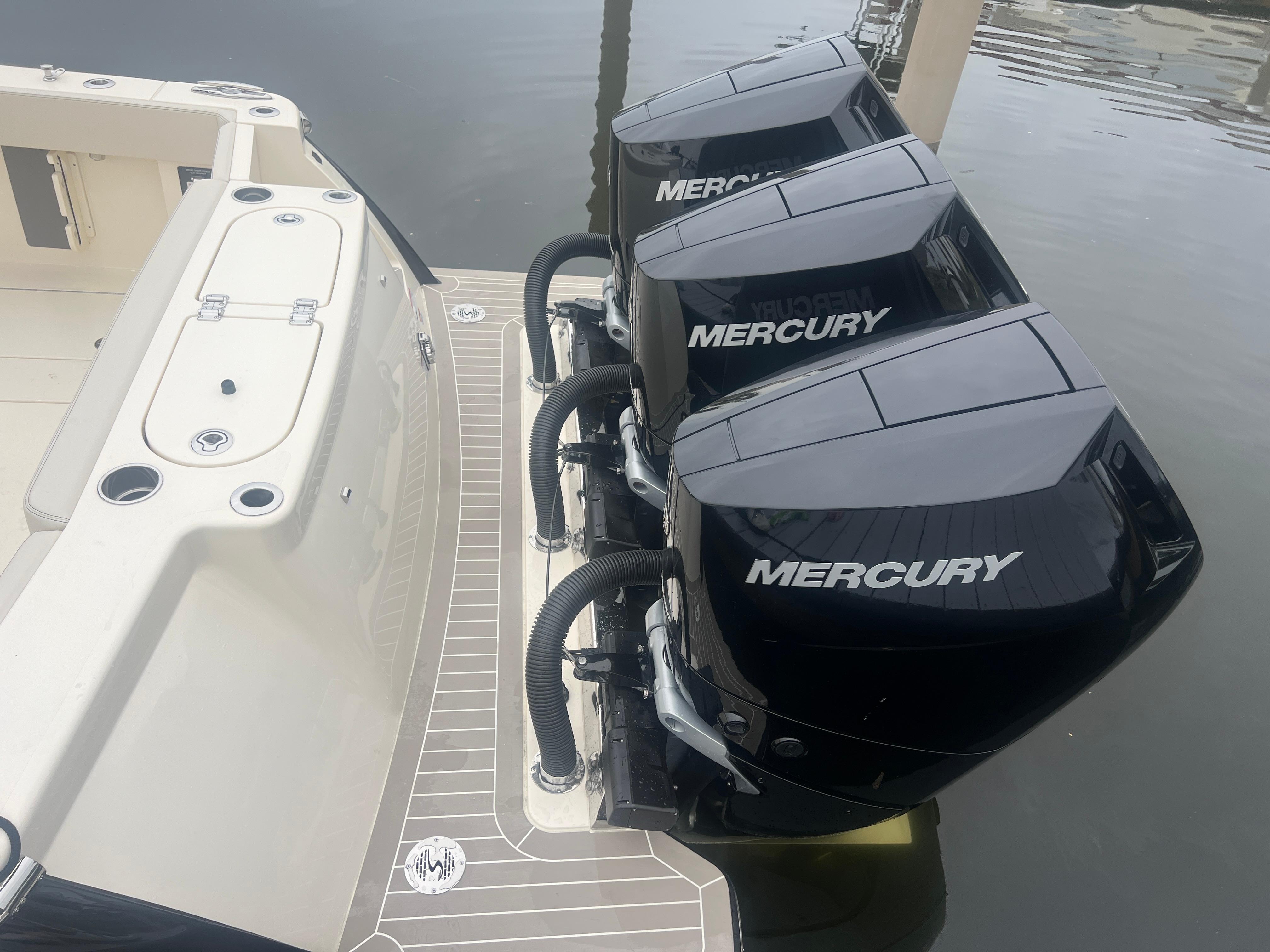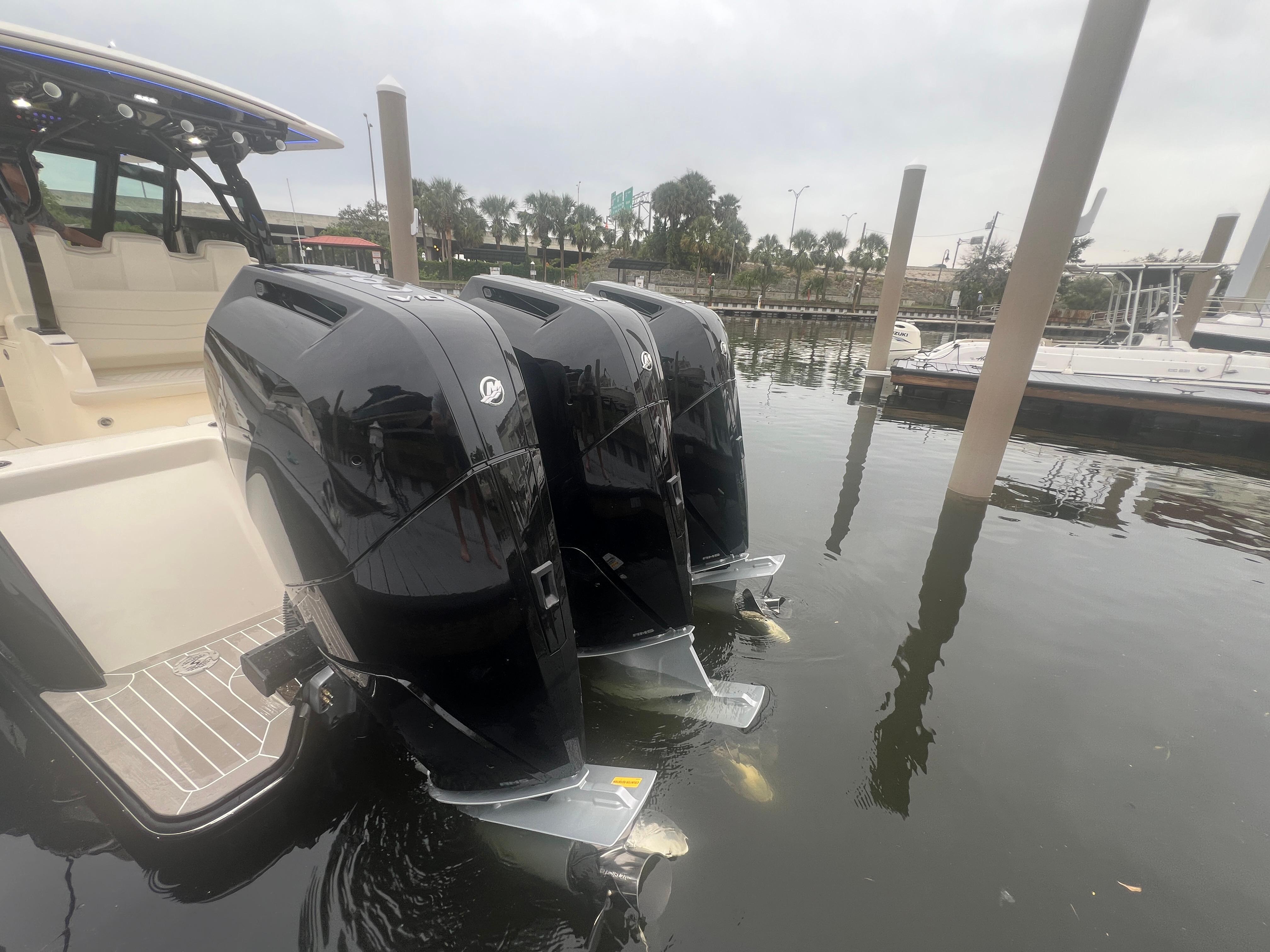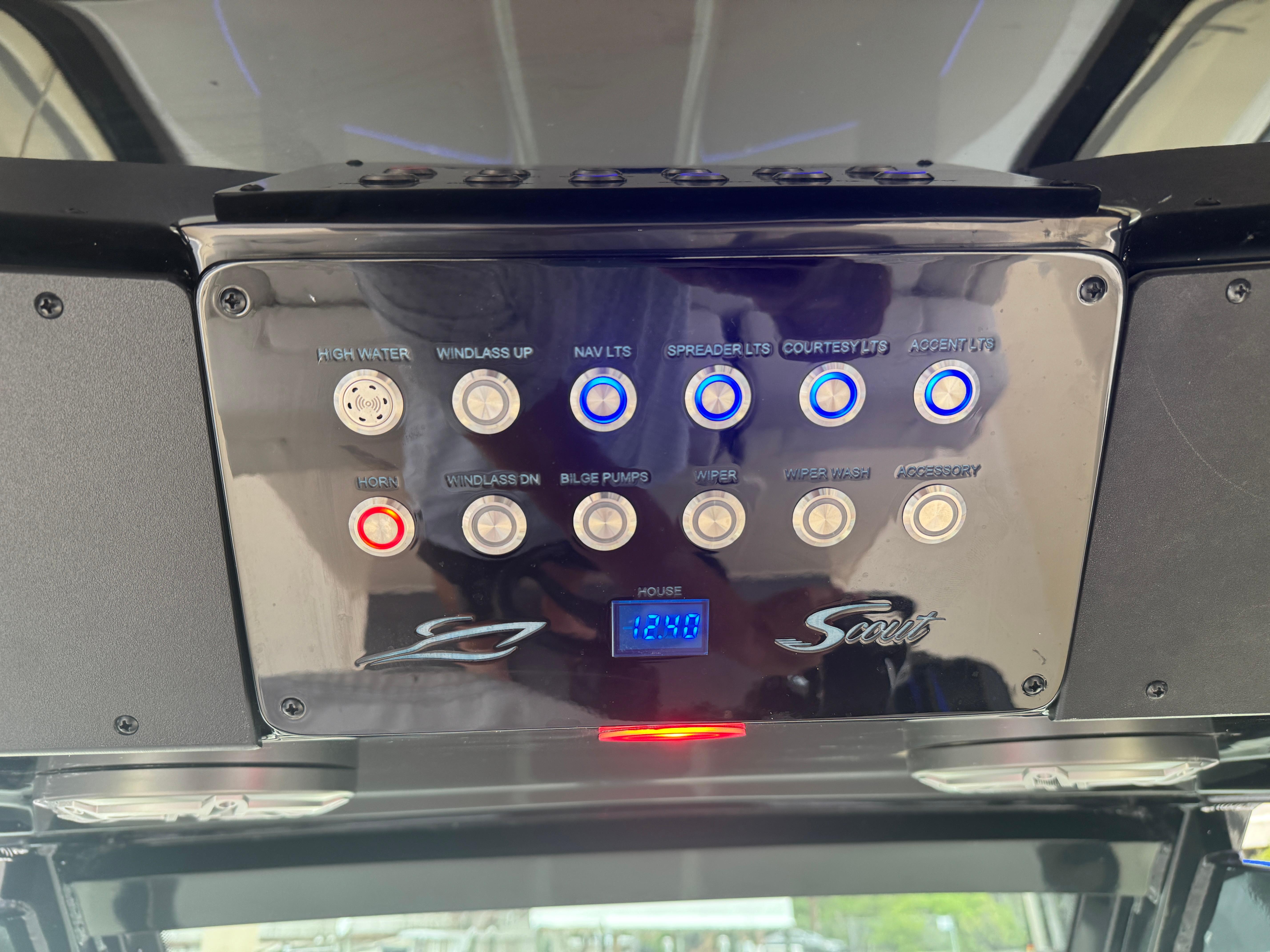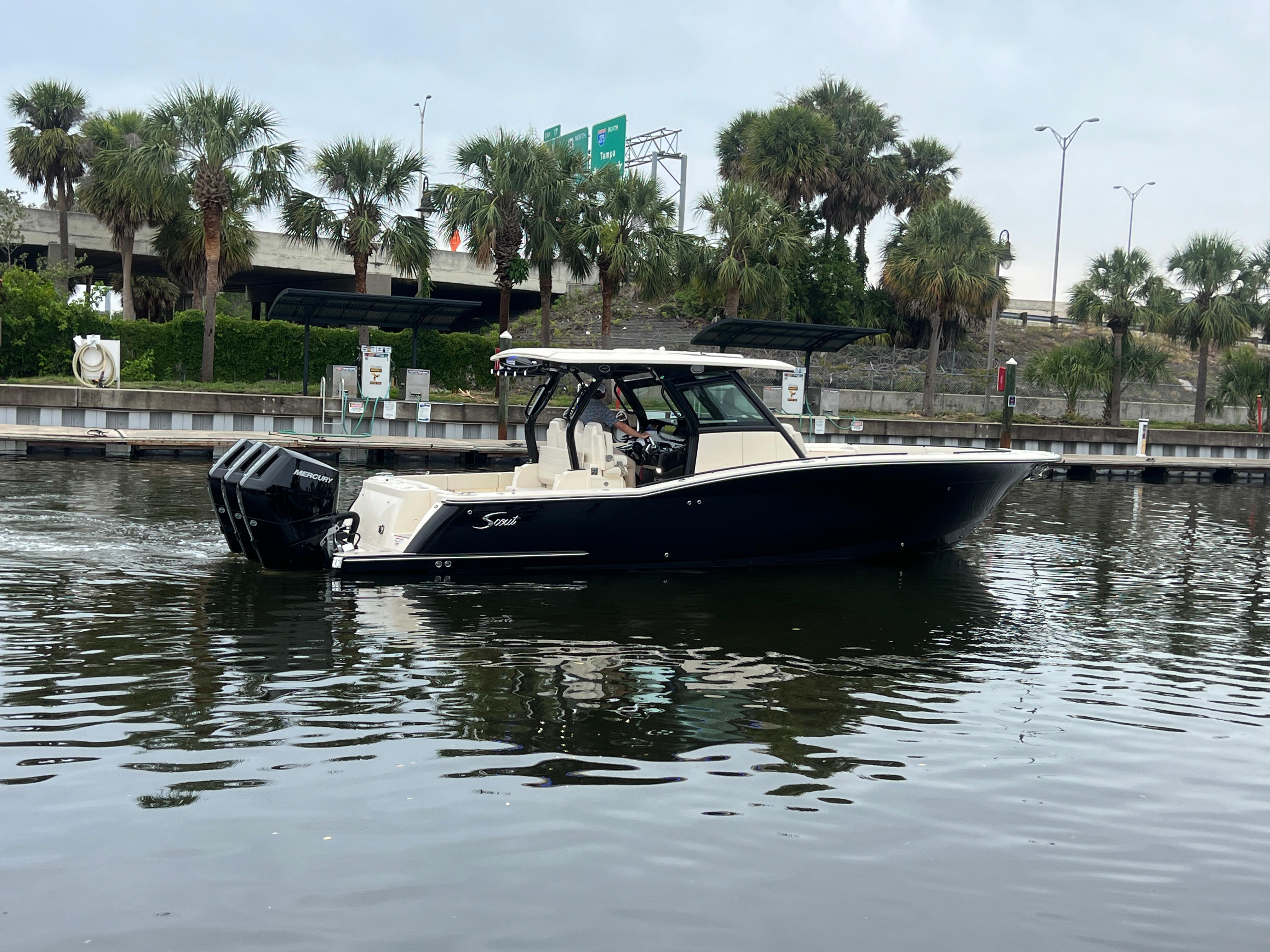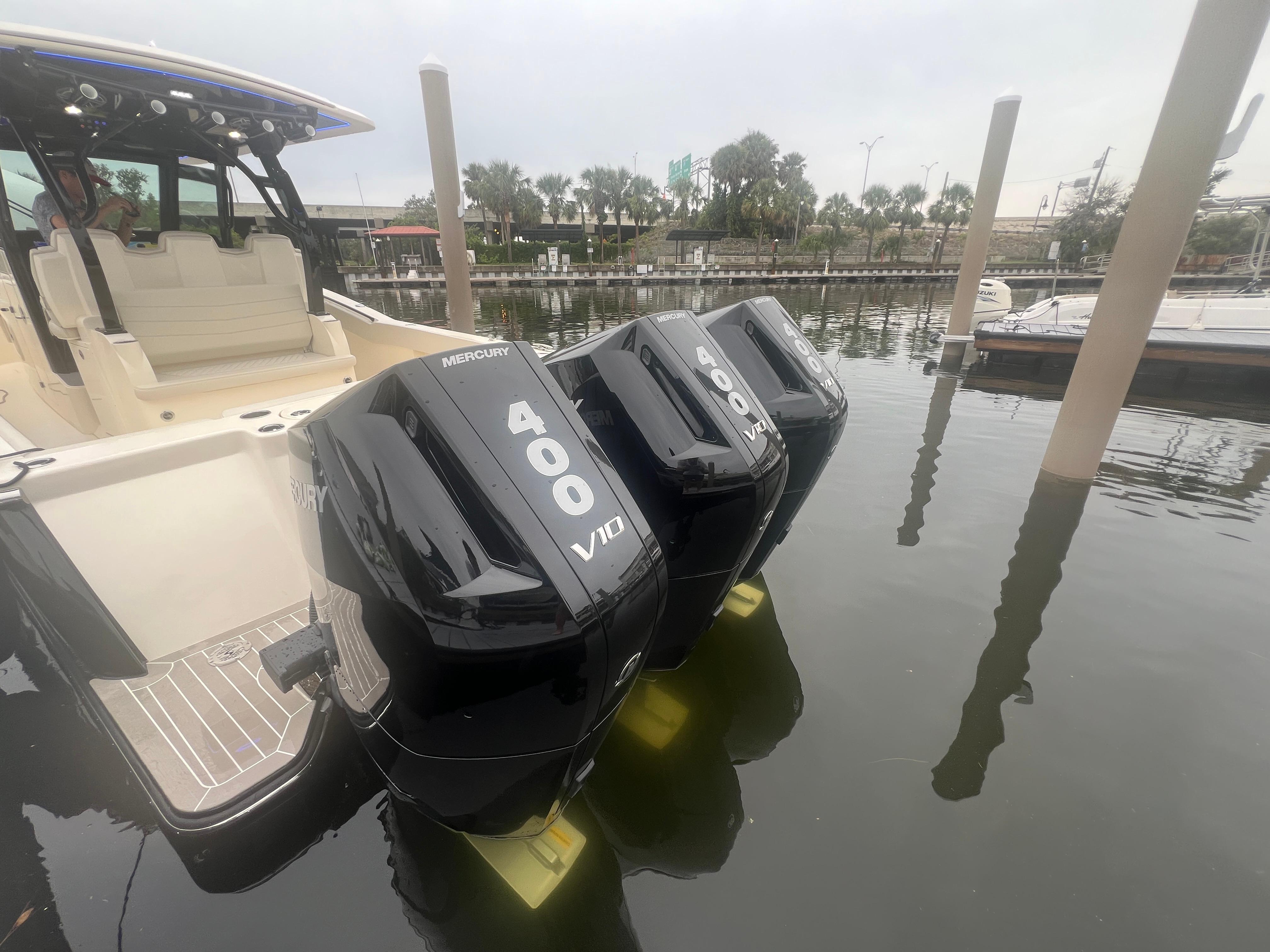 Scout has done it again with this amazing 357LXF. Wether on the water, on your lift, or docked at a restaurant, she is sure to turn heads. Discover more, with ScoutKey Features Include:Triple Mercury 400 V10's with Joystick Piloting3 Garmin Screens (2) 12" & (1) 16"Full Hull Color BlackMidnight EditionDeluxe Stereo UpgradeBianca UpholsteryElectric Fiberglass ShadeRetractible Ro cket Launchers, (Auto-deploy to egress Electric Shade)Air ConditioningPhone to Garmin via HDMIEdson Steering WheelWindshield WiperBow Cup/Rod Holder ComboPrewired for Radar, FLIR, & VHF RadioAnd Much More!***Call Today to Learn More or Schedule a Private Showing***