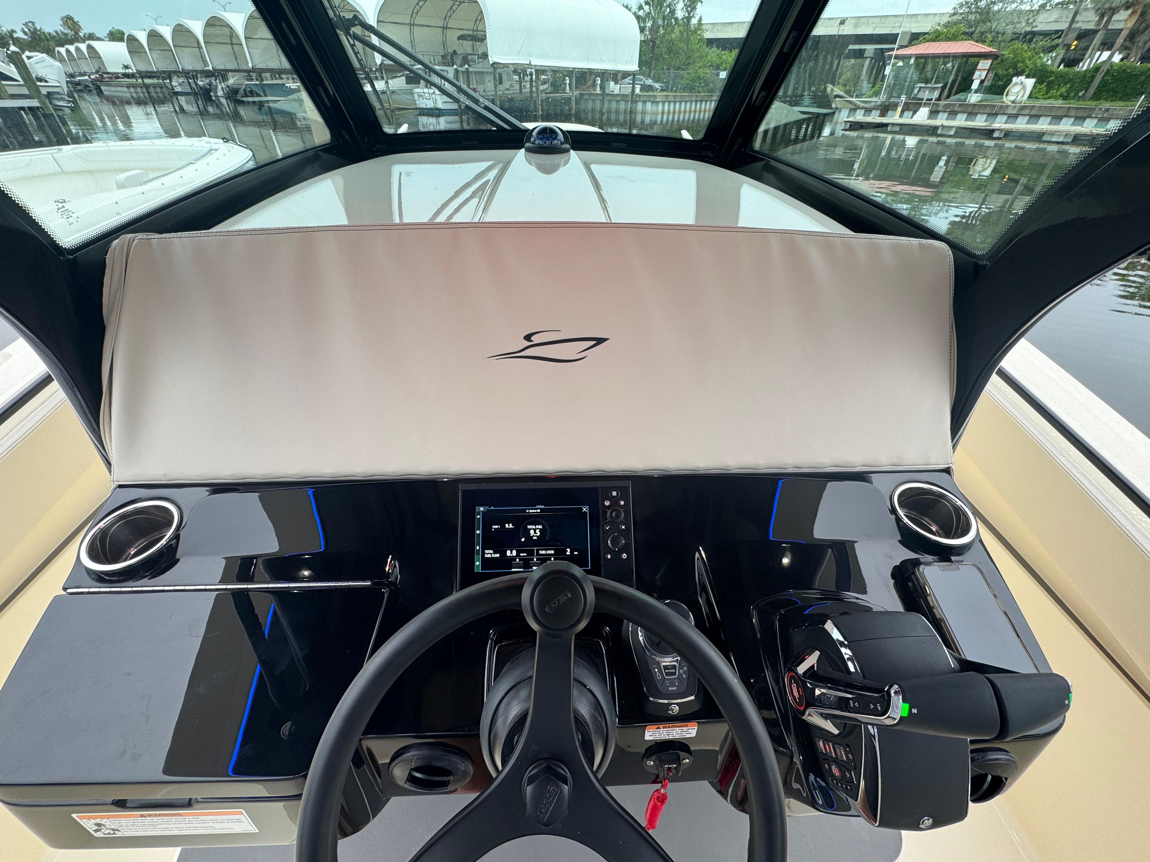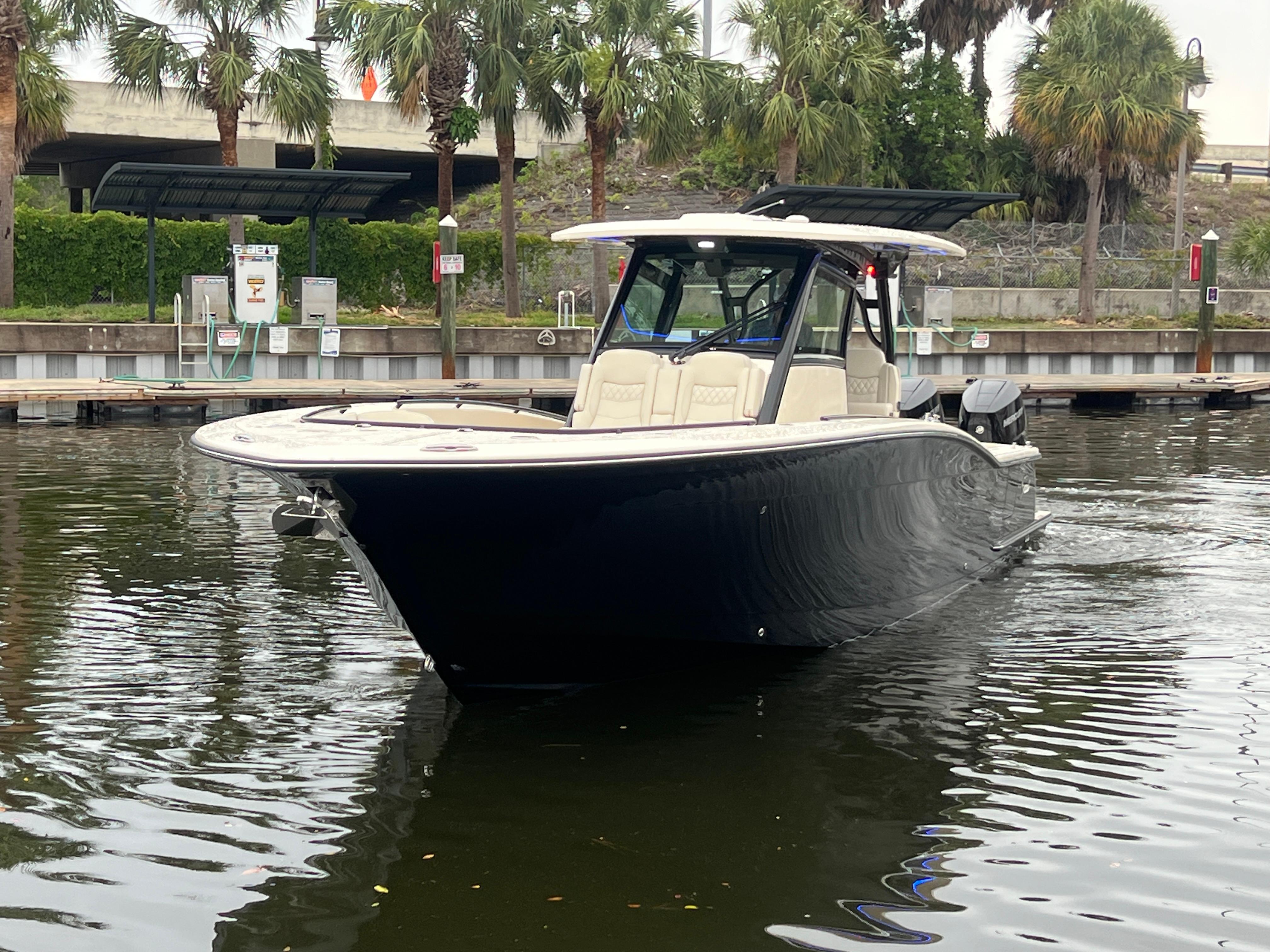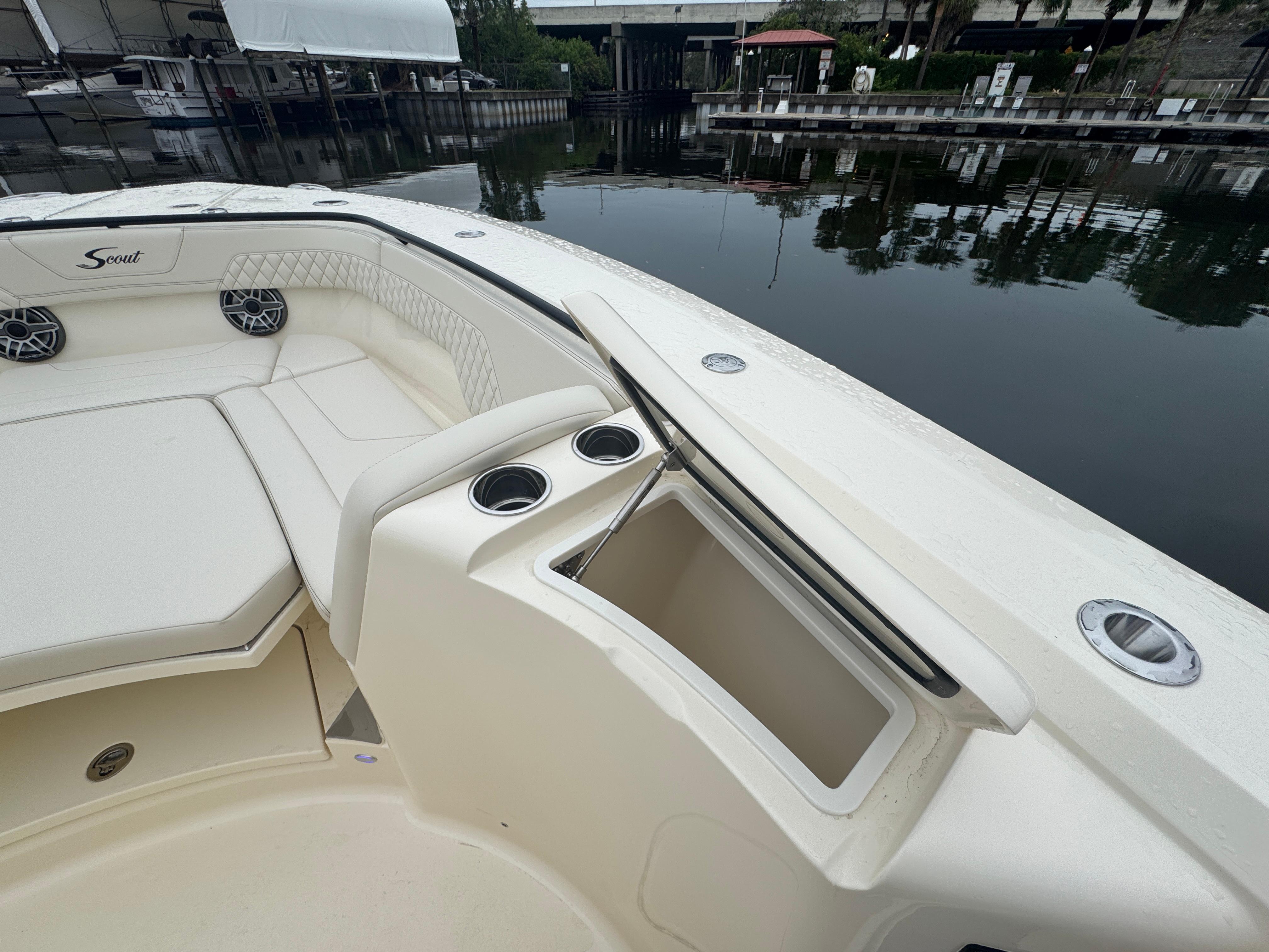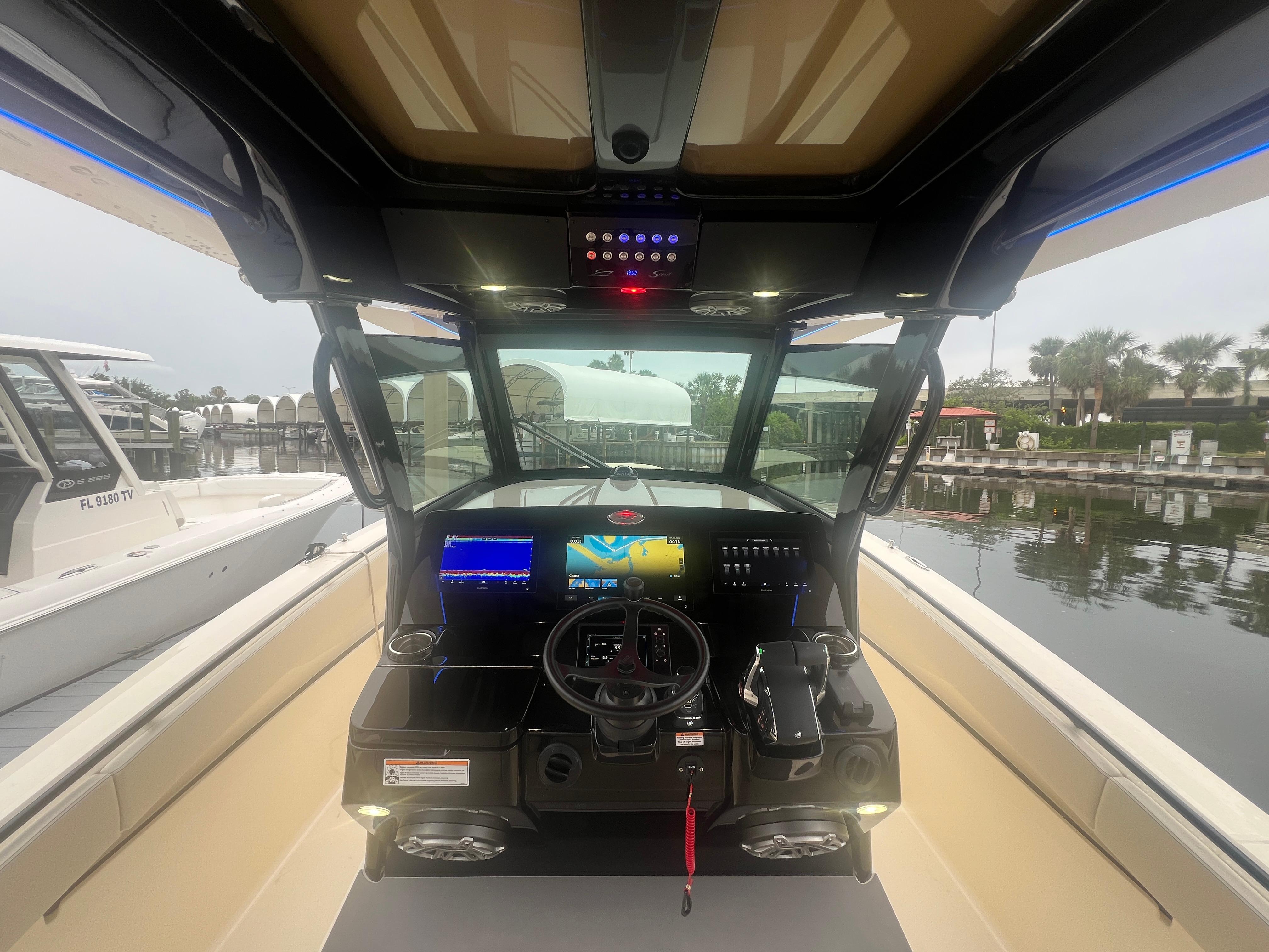 Scout has done it again with this amazing 357LXF. Wether on the water, on your lift, or docked at a restaurant, she is sure to turn heads. Discover more, with ScoutKey Features Include:Triple Mercury 400 V10's with Joystick Piloting3 Garmin Screens (2) 12" & (1) 16"Full Hull Color BlackMidnight EditionDeluxe Stereo UpgradeBianca UpholsteryElectric Fiberglass ShadeRetractible Ro cket Launchers, (Auto-deploy to egress Electric Shade)Air ConditioningPhone to Garmin via HDMIEdson Steering WheelWindshield WiperBow Cup/Rod Holder ComboPrewired for Radar, FLIR, & VHF RadioAnd Much More!***Call Today to Learn More or Schedule a Private Showing***