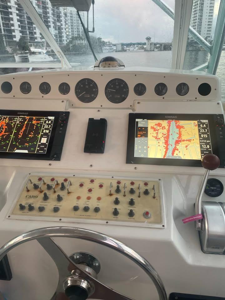 The 35' Cabo Express is a perfect platform for both serious fishing and family cruising and overnighting. The engineering and construction are impeccable. The shallow draft and wide beam give her a great ride and great performance. The cabin space is well equipped with a double forward berth, a dinette/sofa that converts to 2 single berths, full galley, full head, and lots of cabinetry and storage space.Propulsion Engine 1 Engine Make: CAT Engine Model: 3208 Total Power: 450hp Engine Hours: 4000 Engine Type: Inboard Fuel Type: Diesel Engine 2 Engine Make: CAT Engine Model: 3208 Total Power: 450hp Engine Hours: 4000 Engine Type: Inboard Fuel Type: Diesel Generator Engine Make: Westerbeke Model: 7.6KW Total Hours: 4000 Engine Type: Generator Fuel Type: Diesel Boat and engine handwritten service logs available to serious buyer! All engine service and updates tracked. More Details Services and Upgrades • New Dometic 16000BTU Self Contained AC Unit • Annual engine services done - heat exchangers cleaned and inspected, Aftercooler on Starboard engine serviced, zincs, etc - March 2025 • Cleaned and detailed - January 2025 • New battery charger - 2024 • New batteries (5) - 2023 • 3 Simrad plotters upper & lower helm - 2019 • New Simrad autopilot - 2024 • New Fusion Audio System (head unit/speakers/sub/amps/wiring - 2022 • Top end of starboard engine - cylinder inspections, valves, injectors replaced, after coolers, etc. - 2025 • Cockpit enclosure • Cockpit upholstery • New 3 new Macerator pumps, both fish boxes and overboard discharge 2025 • New Fresh Bottom Paint 2025 • New Fresh Bottom and running gear zinc's 2025 • New Lumitech Cockpit lighting 2024 • Smart TV • New Oil Change Transfer Pump 2024 • New Electronic Windshield actuator 2025 • New Windshield Wipers/blades 2025 • New Hardware for Sliding Entry Door (Track and wheels) 2024 • New Lewmar Port Window (starboard) 2024 • New Full Size Bow Cushon 2024 • New Freshly painted Bilge 2025 • New Helm Hatches 2024 • New Solar System 2024 • New Anchor Light 2024 • New Sterling DC 60A Charger 2023 • Mantus Marine M2 Anchor (55LB for Storms and sleeping well on the hook) • Mantus Marine anchor swivel Deck and Hull • Aluminum bow railings • Deck hatch • Bow pulpit • Lewmar windless SS • 55lb Mantus M2 Anchor • 3 piece windshield • Hard top • Pipe welders tower • 5 Rod Holders in gunnels • 4 Rod Holder/Cup Holder rocket launchers • SS cleats and hardware • Outriggers New - 2019 (just serviced and support wires replaced as needed) • VHF, GPS, Digital Antennas • Simrad radarAft Cockpit • Transom door to Stbd w/ 3 step dive ladder • Large live well in transom • Coaming bolsters • 2 large fish boxes in deck • Raw water washdown • Rod storage under gunnels • Storage lockers under steps • Pompanette fighting chair • Bait freezer to Stbd • Cleaning station w/sink to portUpper Cockpit • Tackle storage to Stbd • Bench seat to port w/recliner • Deck hatch engine room access • Cockpit deck raises for full engine room access • Bench port passenger seat • Bench helm seat to Stbd • Charting table on dash • 3 sided windshield • 4 sided isinglass enclosure Helm to Stbd Electric windshield vent • Hard top w/2 hatches • Recessed overhead lights • Courtesy lights Stereo speakers Handrails in hardtop overhead Helm • Furuno Navnet • Simrad plotter • Simrad auto pilot • Clarion stereo remote • Fireboy monitor gauge • Icom M424G GPS VHF • Trim tab controls• CompassTower Helm • Bench seat • SS Steering wheel • Engine controls • Simrad plotter • Garmin plotter • Simrad auto pilot • Compass• 2 Icom VHF • Hard buggy top Cabin • Sliding entry door • Storage under steps • Teak & holly flooring Galley to port • L-shaped sofa/dinette to Stbd (converts) • Double berth forward • Sette to Stbd of bed • Teak wood cabinetry throughout • Overhead moonlight windows • Deck hatch w/shade and screen • Overhead recessed lighting • Port hole windows • Hanging locker • Drawers under bed • Reading lights • NEW A/C unit and controls • Full head to portGalley • L-shaped counters - Corian • SS sink • Sharp carousel microwave • Under counter refrigerator/freezer • Ample drawers and cabinetry • Mirrored storage cabinets • Recessed lighting overheadHead • Private teak entry door • Mirrored vanity • SS Sink • Corian counters • Vacuflush toilet • Shower • Port hole window • Recessed overhead lighting • Rod storage in showerCreated by the boat building team of Henry Mohrschaldt and Michael Howarth, the same craftsman selected by Fortune Magazine for building one of the top 100 products in the world, the Cabo 35 Express is a benchmark in design, construction, and performance. As an offshore powerboat racer, Dick Ornstein knows that it takes a masterful blend of design and construction to achieve a high level of performance. When it came time to purchase a sportfisher for his personal use, he chose Cabo for just those reasons. Even more important in the real world, however, is that the Cabo Express can eat up the miles at a comfortable cruising speed of 33 mph and still have a range of nearly 350 miles. This combination of speed and range gets the Cabo 35 to a faraway fishing ground fast and allows it to stay longer than any comparable boat. Whether you're backing down on a billfish, spinning to stay with tuna, or firewalling the throttles to head for new fishing grounds, the Cabo 35 Express responds instantly to helm and engines.