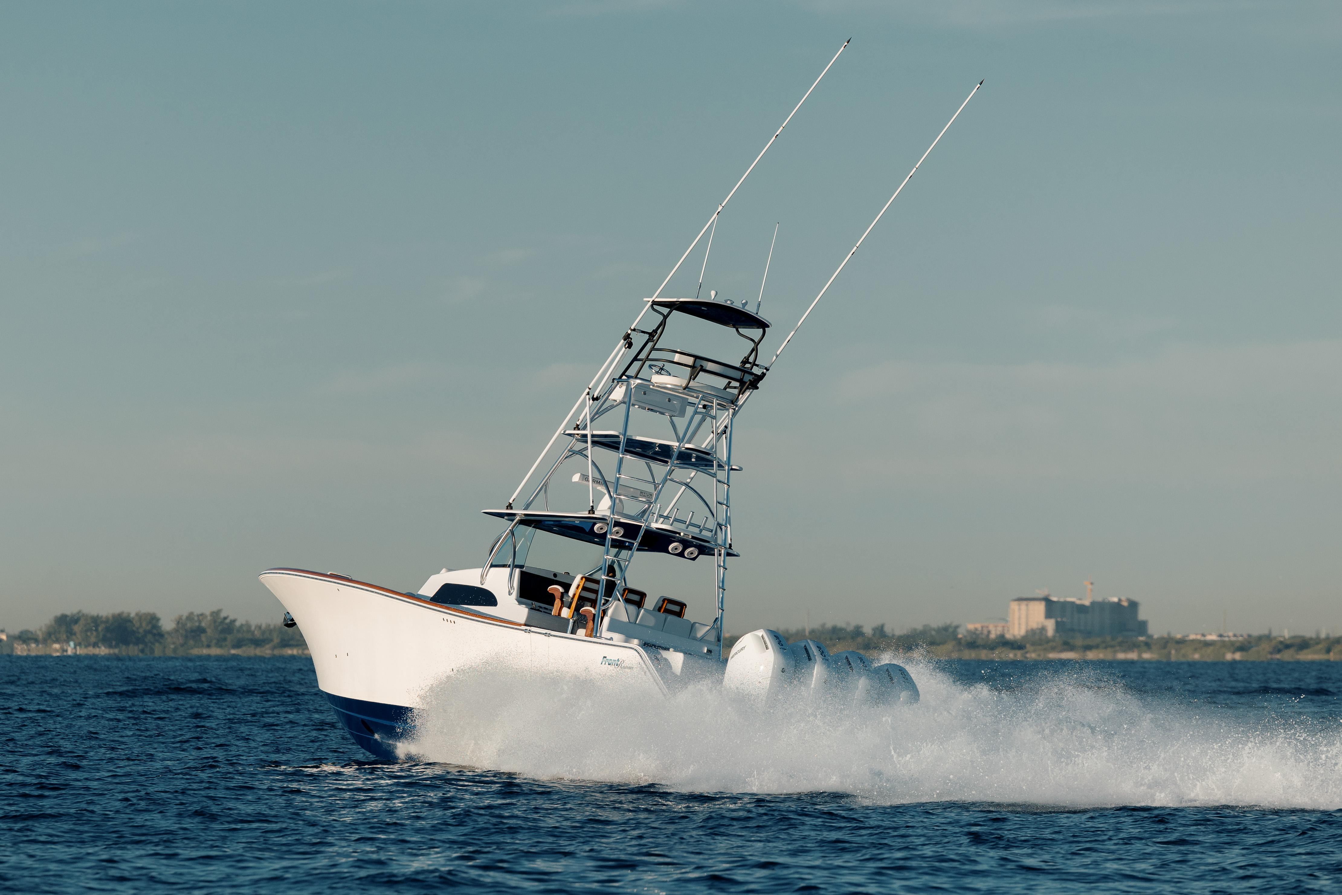 If you measure your weekends in knots, strikes, and blood on the deck, the 47 Front Runner Center Console was built for you. This is the flagship of offshore aggression—designed from the waterline up to dominate big water, big fish, and big expectations.At over 47 feet with a massive 13'4" beam, this battlewagon is a tournament-grade predator. Quad outboards deliver blistering speed and a range that lets you chase pelagics where the charts go blank—and still get back before dark. The double-stepped hull eats up chop, tracks like a missile, and keeps you dry no matter what Mother Ocean throws your way.But the real story is in the layout: a sprawling cockpit built for battle, dual pressurized livewells, massive insulated fish boxes, a rigging station that means business, and enough rod holders to make a tackle shop jealous. Every inch is optimized for flow, function, and fish.Need to run 100+ miles offshore? No problem. Want to do it in 4-footers while rigging baits and watching the spread? The 47 CC laughs in the face of it. And with a below-deck berth, full head, and premium finishes, it’s just refined enough to pass the family test—if you’re willing to share.This is not a pleasure boat with rod holders. This is a full-blown fishing weapon, built for captains who know the grind and live for the chase. The 47 Front Runner isn’t just part of the fleet—it leads it.Ready to run harder, fish farther, and win more? Step up. The ocean’s waiting. Contact C.NicklausStarling today.
