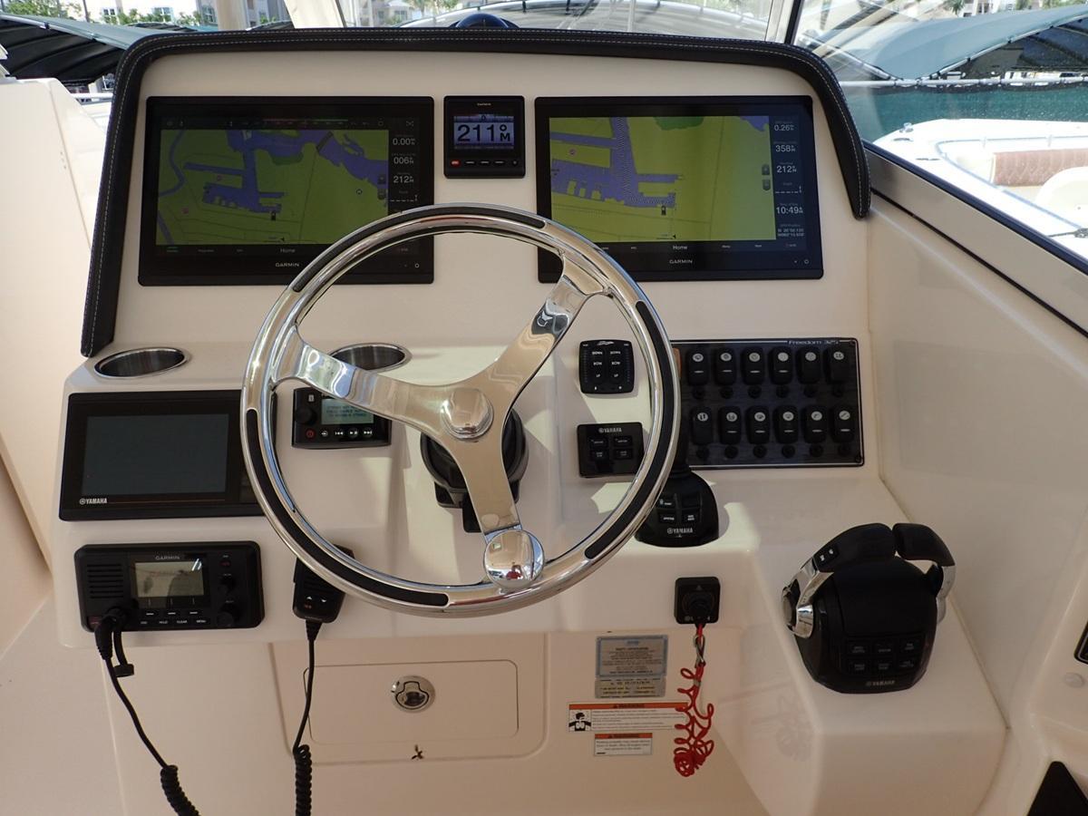 2020 Grady White 325 Freedom 2020 Twin Yamaha F300's with 193 hours & warranty till 11/26/2025 Yamaha Helm Master EX Joystick docking Sand hull color Color matched hardtop Deluxe wet bar with 12V Refrigerator Led underwater lights Bow cover Aft curtain Ivory Bow sun shade Dual Garmin 8616's 16" multifunction color displays Garmin B175 1Kw Chirp thru hull transducer Garmin 215 Vhf radio Garmin GMR 24 24” Fantom 48 Mile Radar Garmin Reactor 40 Auto pilot Garmin GXM 54 XM Weather receiver Just serviced and detailed, extra clean !!! Asking $249,900 OBO Call John FerraraIntroducing the 2020 Grady-White Freedom 325, a stunning dual console boat that seamlessly blends performance and comfort. With an overall length of 33.08 feet, this vessel boasts a robust fiberglass hull designed in the innovative Sea-V2™ shape, ensuring stability and smooth navigation. Powered by twin Yamaha F300XCA outboard engines, each delivering an impressive 300 horsepower, this boat promises exhilarating speed and reliability, with only 173 hours of use. The stainless steel 3-blade propellers enhance efficiency and performance on the water. Equipped with joystick control, maneuvering becomes effortless, making it perfect for both seasoned mariners and newcomers alike. The Freedom 325 is designed for leisure and adventure, providing ample space for relaxation and enjoyment on the water. This used model is a fantastic opportunity to own a high-quality vessel that combines luxury and functionality for unforgettable boating experiences.