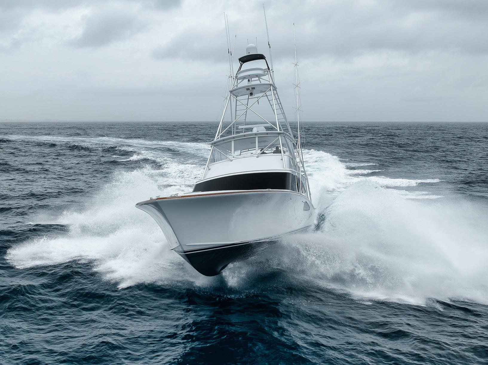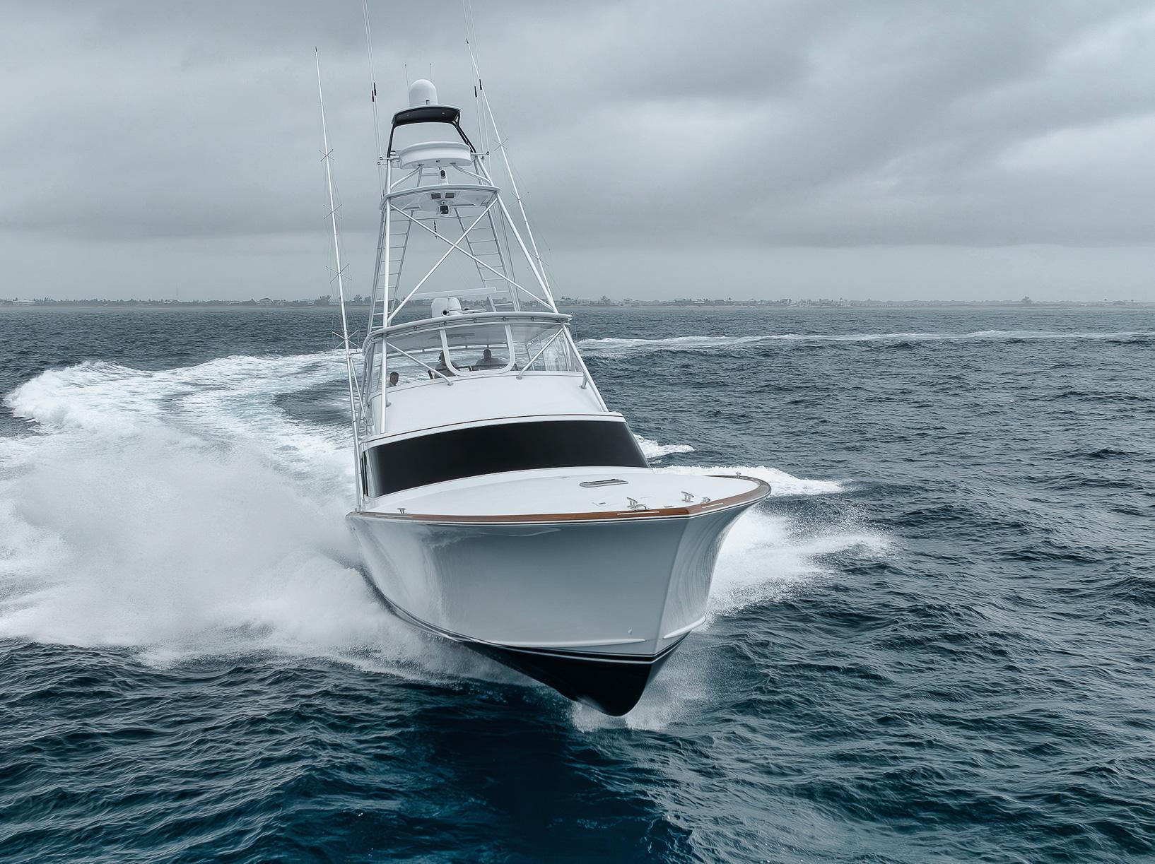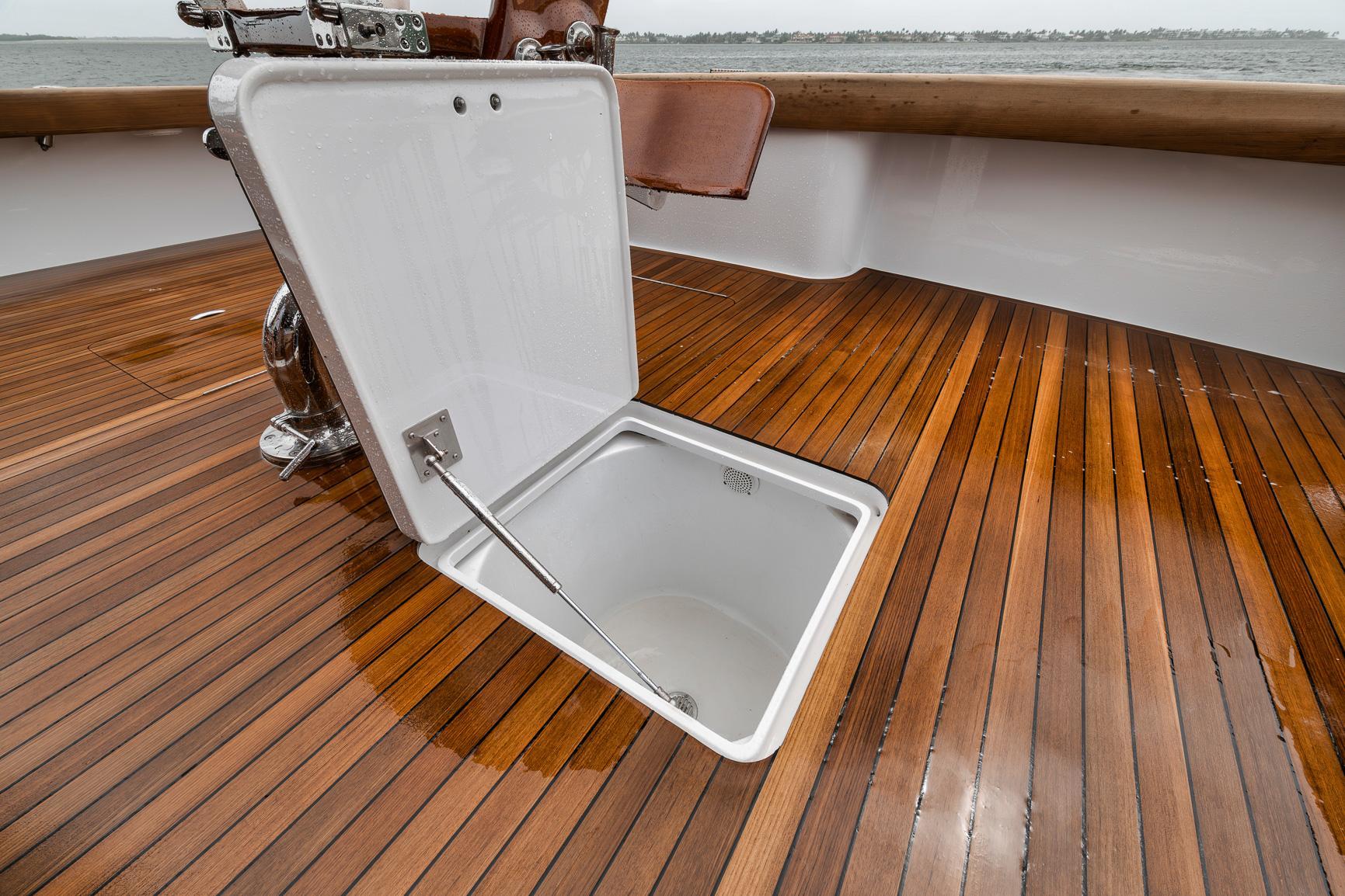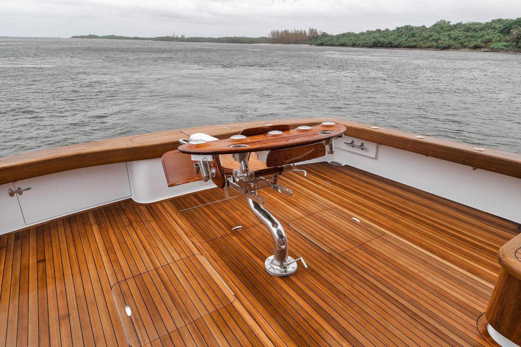 The bow is thoughtfully designed to combine functionality, safety, and classic sportfish elegance. Featuring a wide, solid non-skid foredeck, it provides a stable platform for docking, anchor handling, or simply enjoying unobstructed views at the front of the yacht.