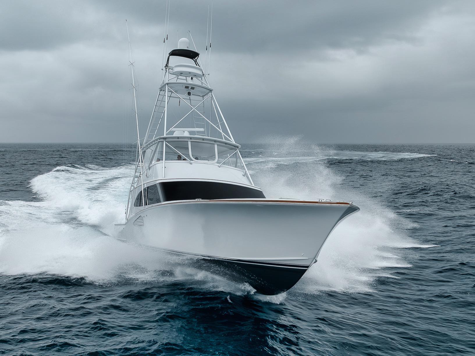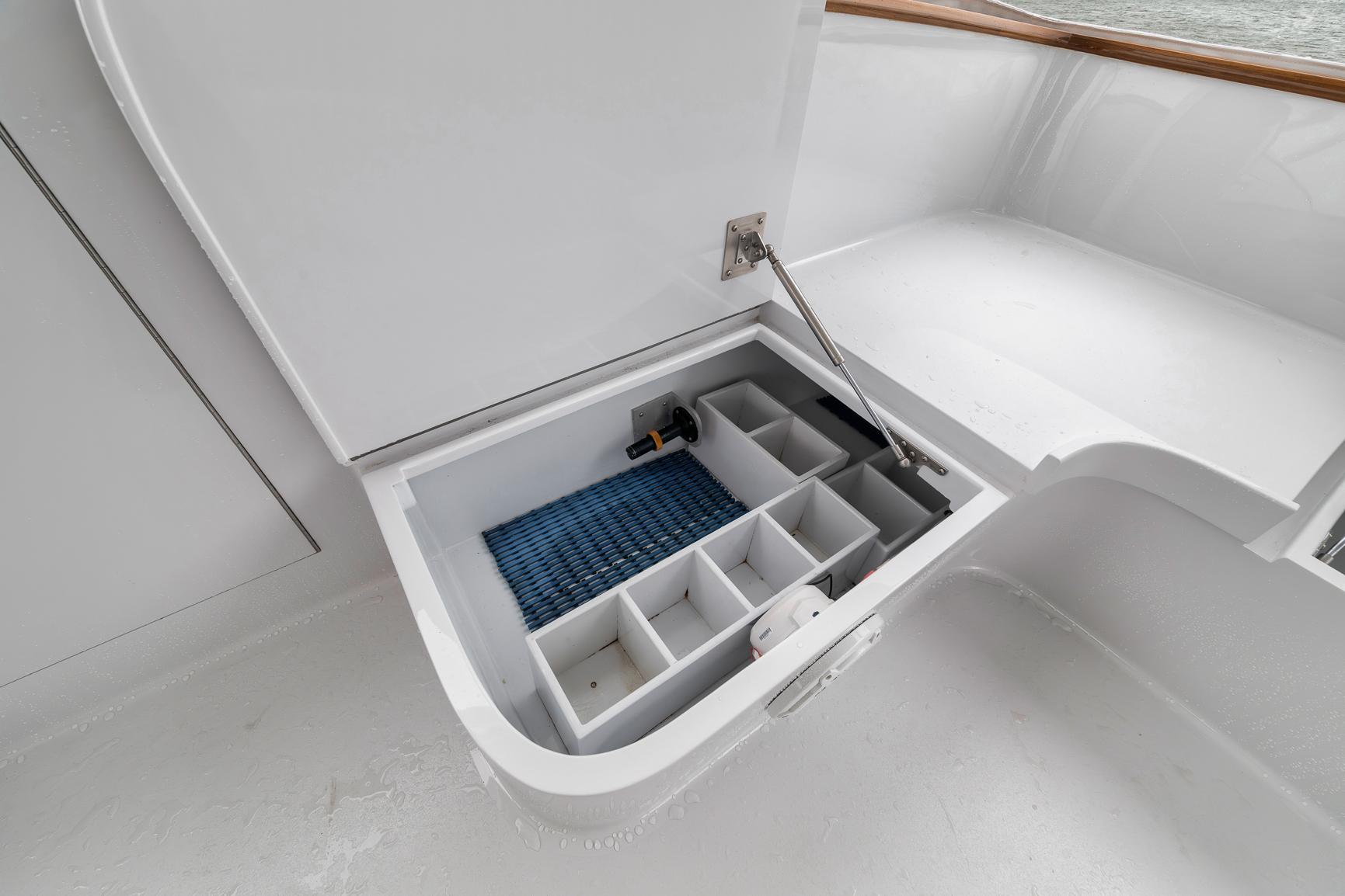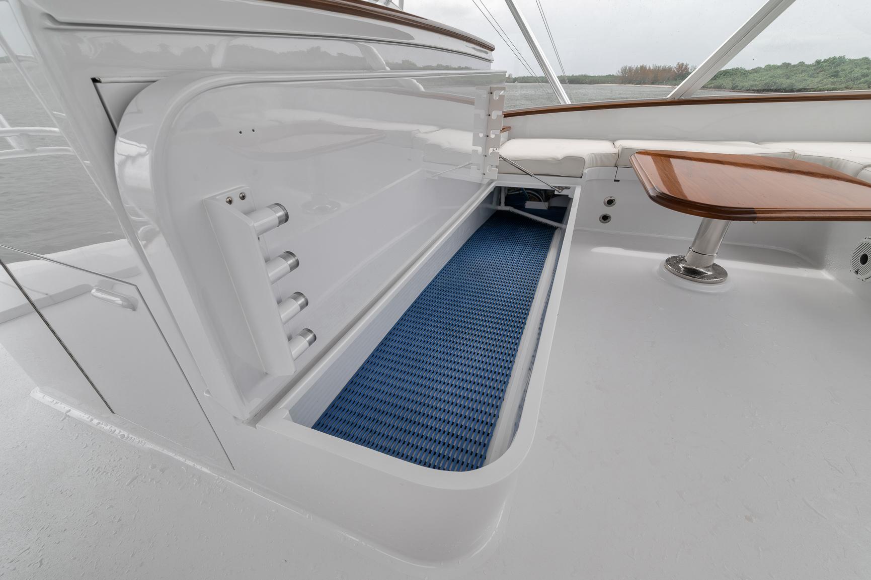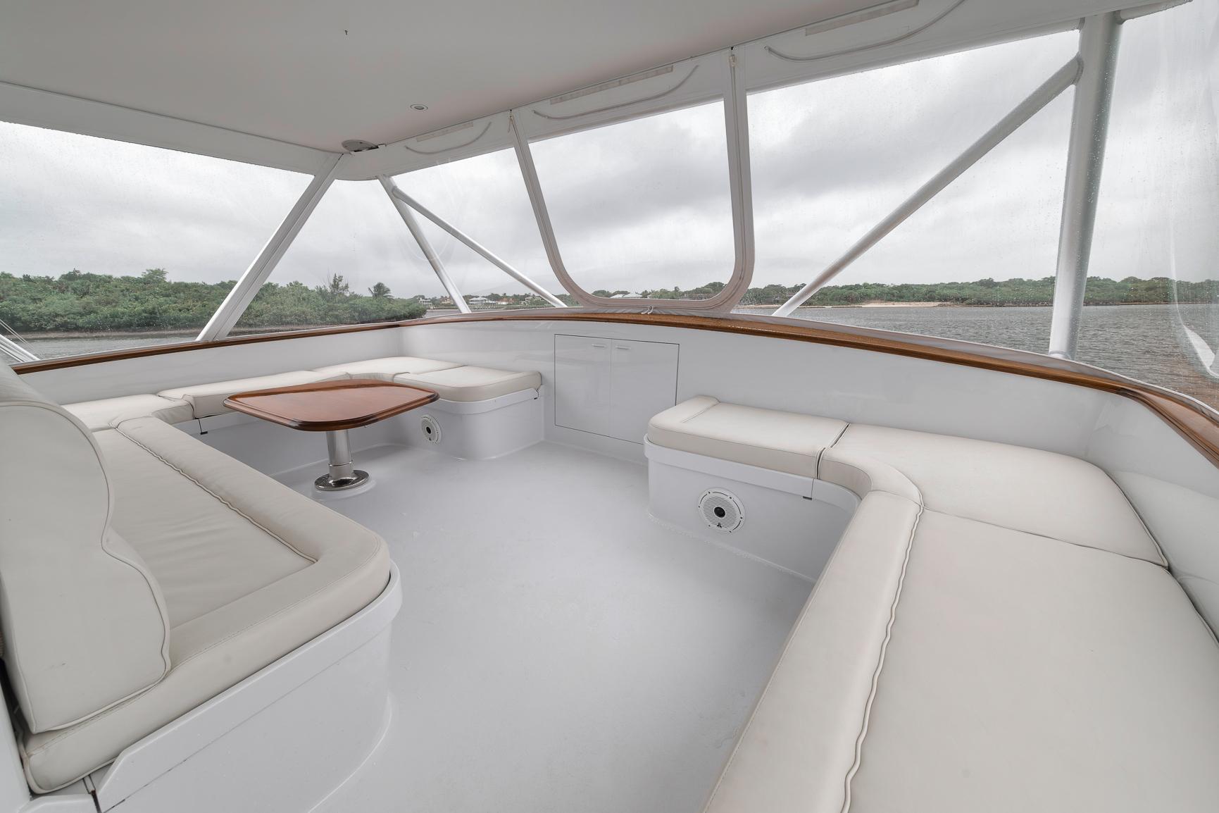 The bow is thoughtfully designed to combine functionality, safety, and classic sportfish elegance. Featuring a wide, solid non-skid foredeck, it provides a stable platform for docking, anchor handling, or simply enjoying unobstructed views at the front of the yacht.