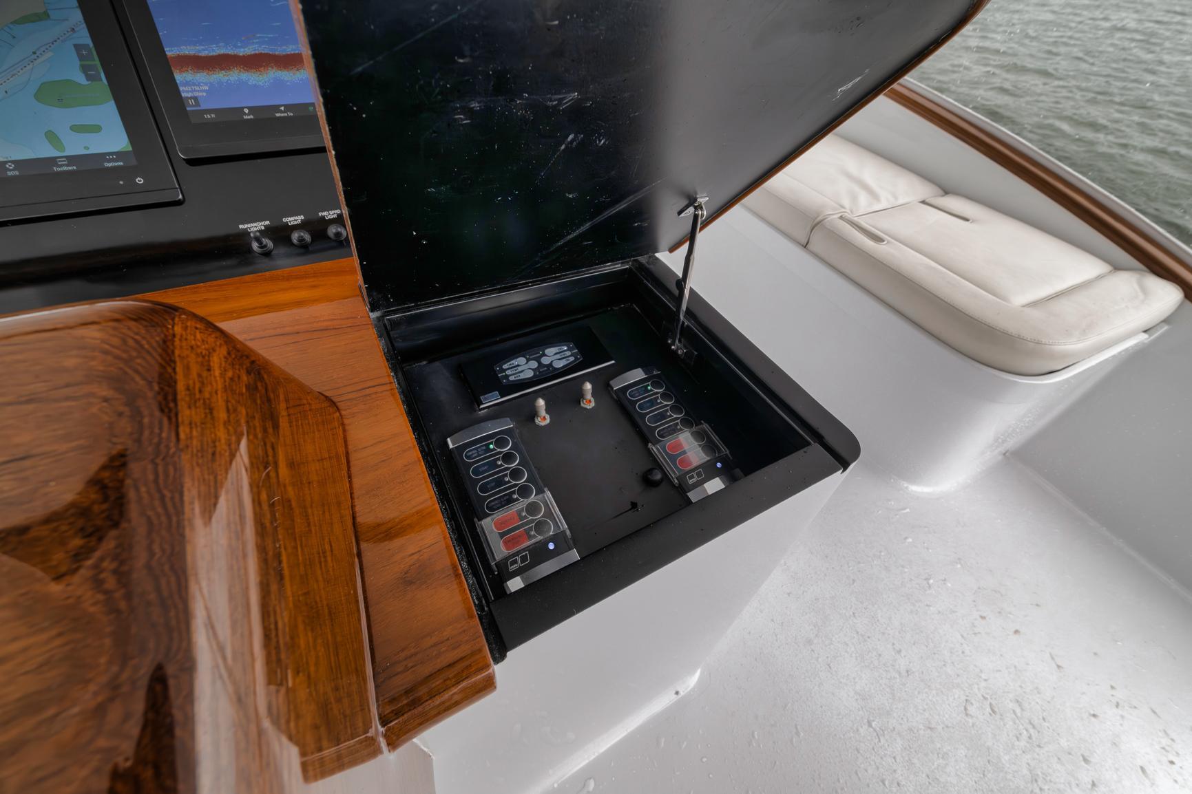 The tower on "Reel Lax" is a finely crafted and highly functional feature, built for serious sportfishing performance while complementing the yacht’s sleek, custom profile. Constructed by a top-tier tower builder—Palm Beach Towers—the structure is lightweight yet rugged, designed to provide excellent visibility and durability in offshore conditions.