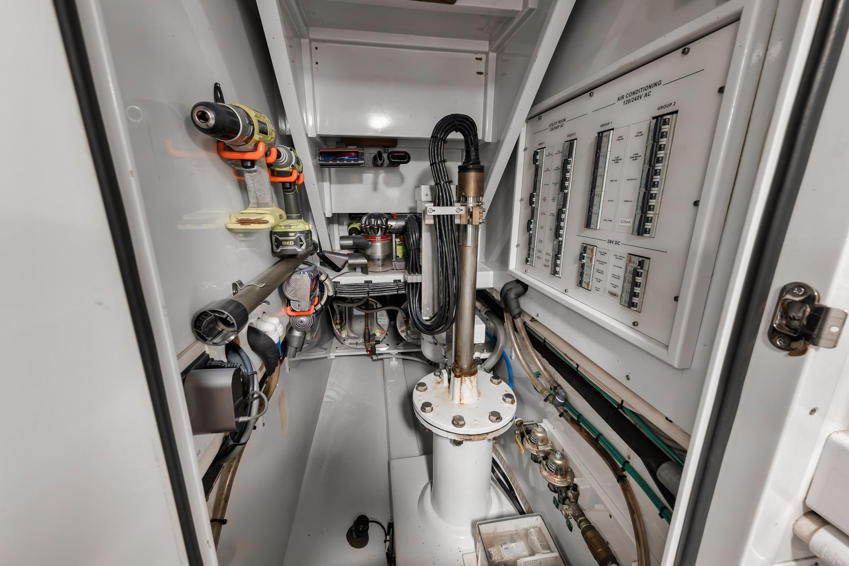 The pump room is a dedicated systems space that reflects the yacht’s emphasis on engineering excellence and clean functionality. Strategically located for easy access, this compartment houses the vessel’s critical support systems, including generators, air conditioning chillers, bilge pumps, and water heaters.