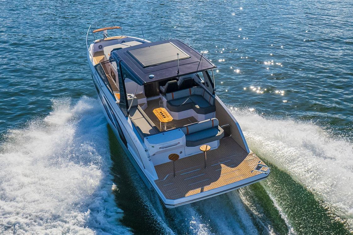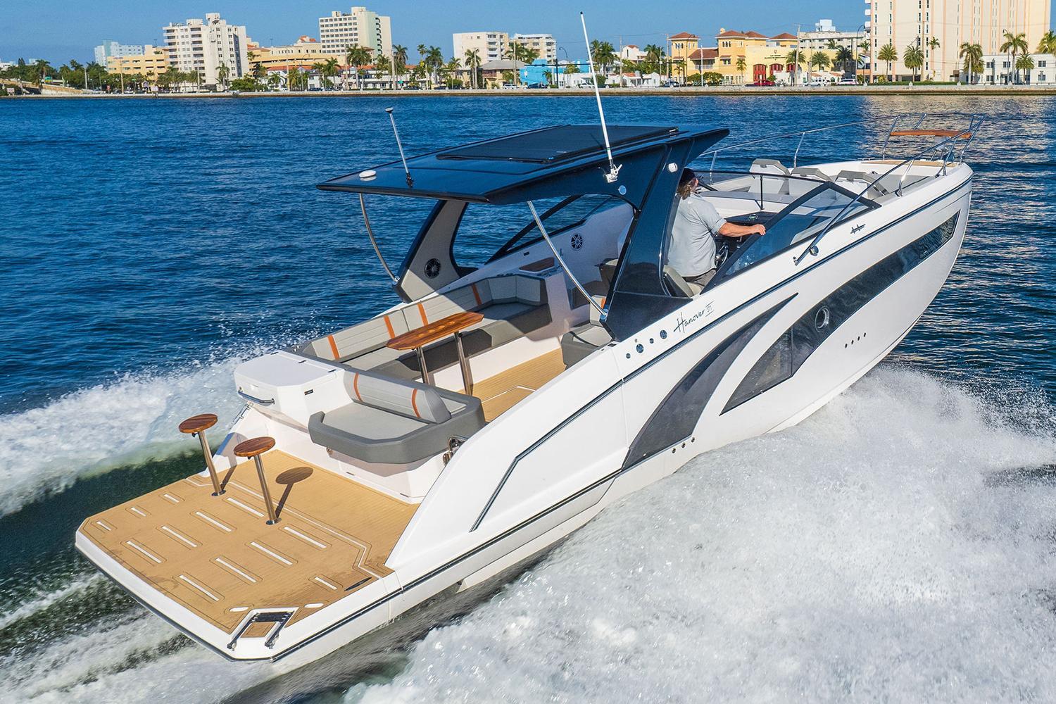 2023 Hanover 377Engine Hours: 112 & 115It's powered by a Twin MerCruiser® 350HP 6.2L MPI ECT Bravo Three®ABOUT THE HANOVER 377:The Hanover 377 boasts an incredibly unique design, found only in Hanover models. It’s the perfect boat for cruising in style, powered by robust engines that ensure a smooth and exciting ride.Whether you’re lounging in the spacious seating areas, soaking up the sun, or grilling meals at the stern while enjoying the company of friends and the beauty of the water, every detail is designed for pleasure and comfort.At the bow, you’ll find an elegant seating area with reclining sunbeds and a teak bench, ideal for relaxing in the breeze. Thanks to its generous beam, the Hanover 377 offers a surprisingly roomy cabin that feels like you’re aboard a much larger vessel. Below deck, two double berths comfortably sleep up to five people. A fully equipped galley and a dry head with ample headroom round out the interior amenities.Whether you’re planning a day trip or an overnight adventure, the Hanover 377 delivers luxury, space, and performance, making it a top choice for unforgettable moments on the water.Premium Features- 2 X Gps Raymarine Axiom 9”- Synthetic Teak On Bow- Synthetic Teak On Platform- Synthetic Teak On Cockpit- Boss Sound Kit + 8 Marine Fusion Speakers + Amplifier + Sub- Electric Anchor Windlass System - 1000w- 22lbs Anchor + 131ft Chain- VHF Radio With Antenna- Electric Opening Sunroof- Macerator And Holding Tank- 12000 Btus A/C System- Onan Cummins 5kw Generator- Electric Boiler System In The Toilet- Underwater Lights (Pair)- Electric Trim Tabs (Flaps)- Head Lights With Remote- Shore Power (50 Amp)- Complete Power Inverter And Charger System + Internal Ac (220v Or 110v)- LED 24 Tv, Blu-ray Player And Mounting Bracket- Induction Electric Stove- 80l Refrigerator- Stainless Steel Electric Grill- 2 Stools (Seats) At PlatformTechnical features:• Length: 38' • Beam: 10' 10"• Fuel Tank Capacity: 160 Gallons• Water Tank Capacity: 50 Gallons• Passengers: 15 day / 5 night