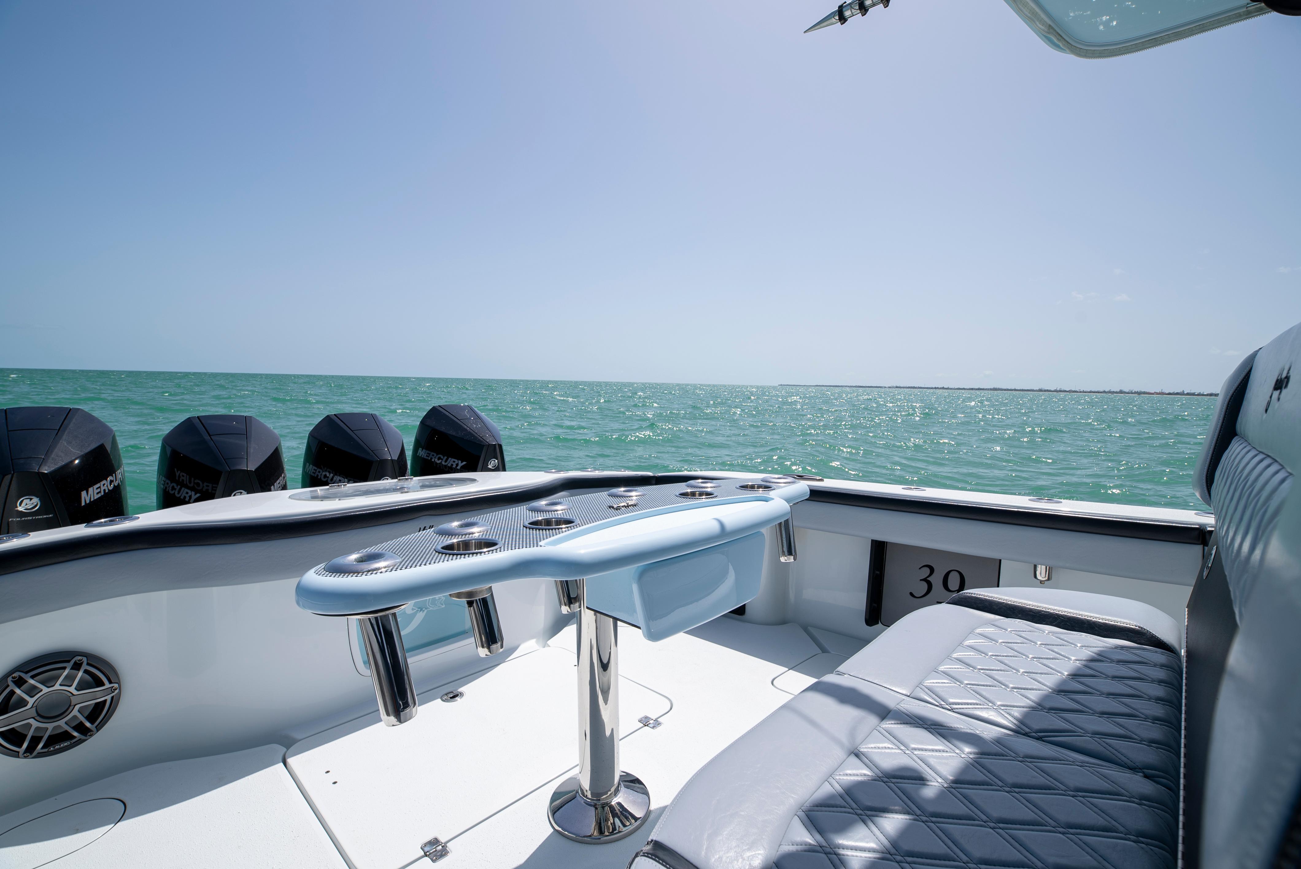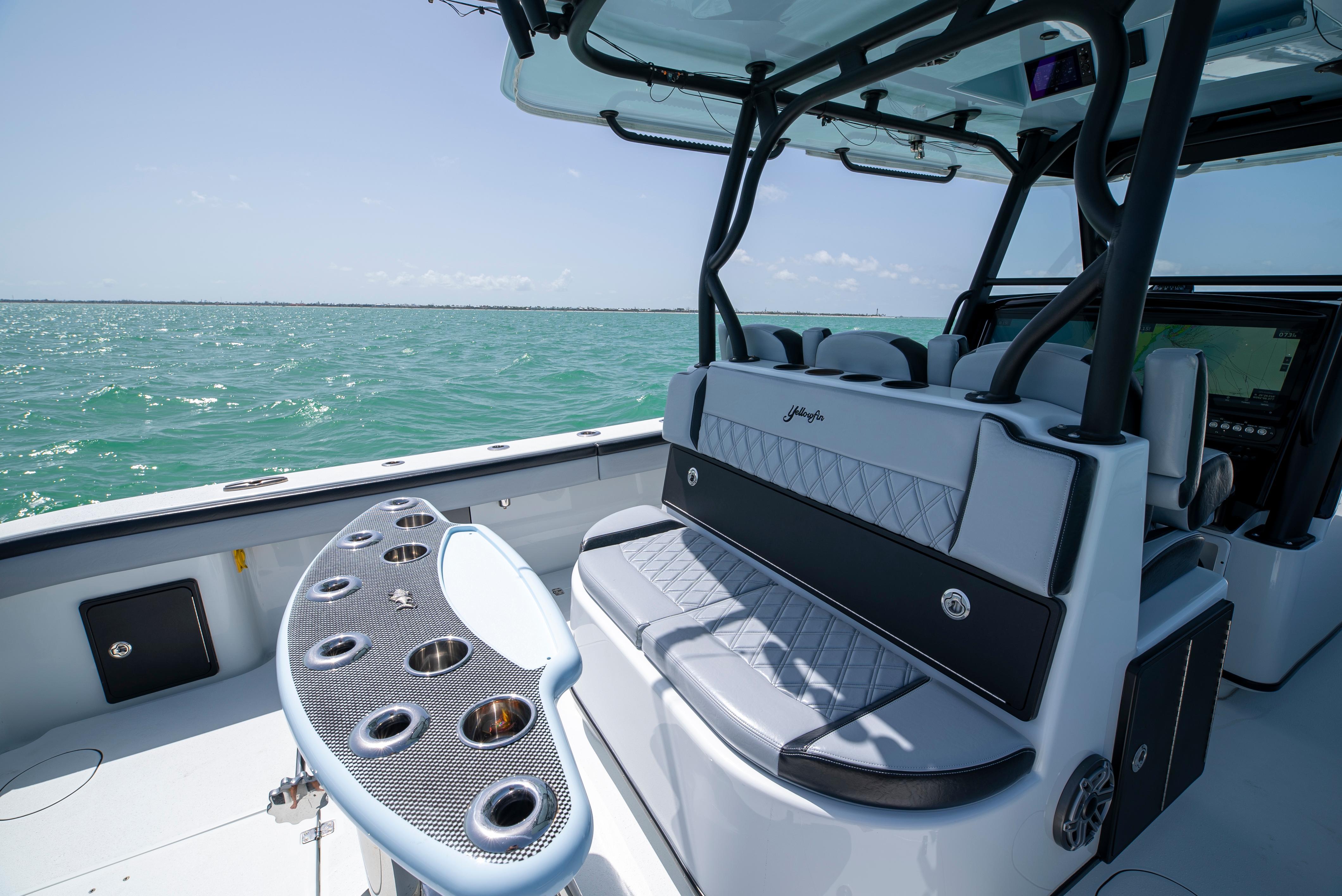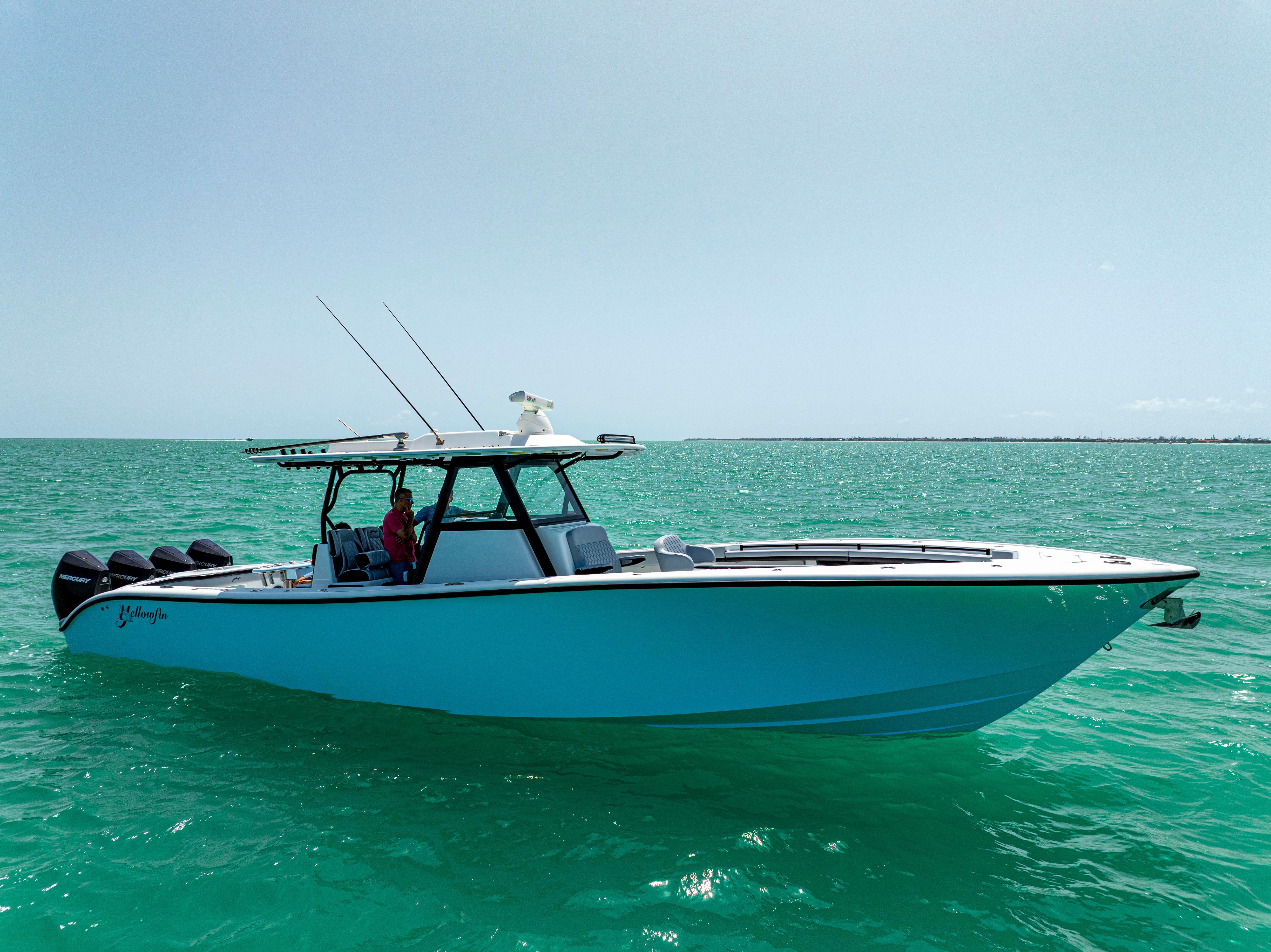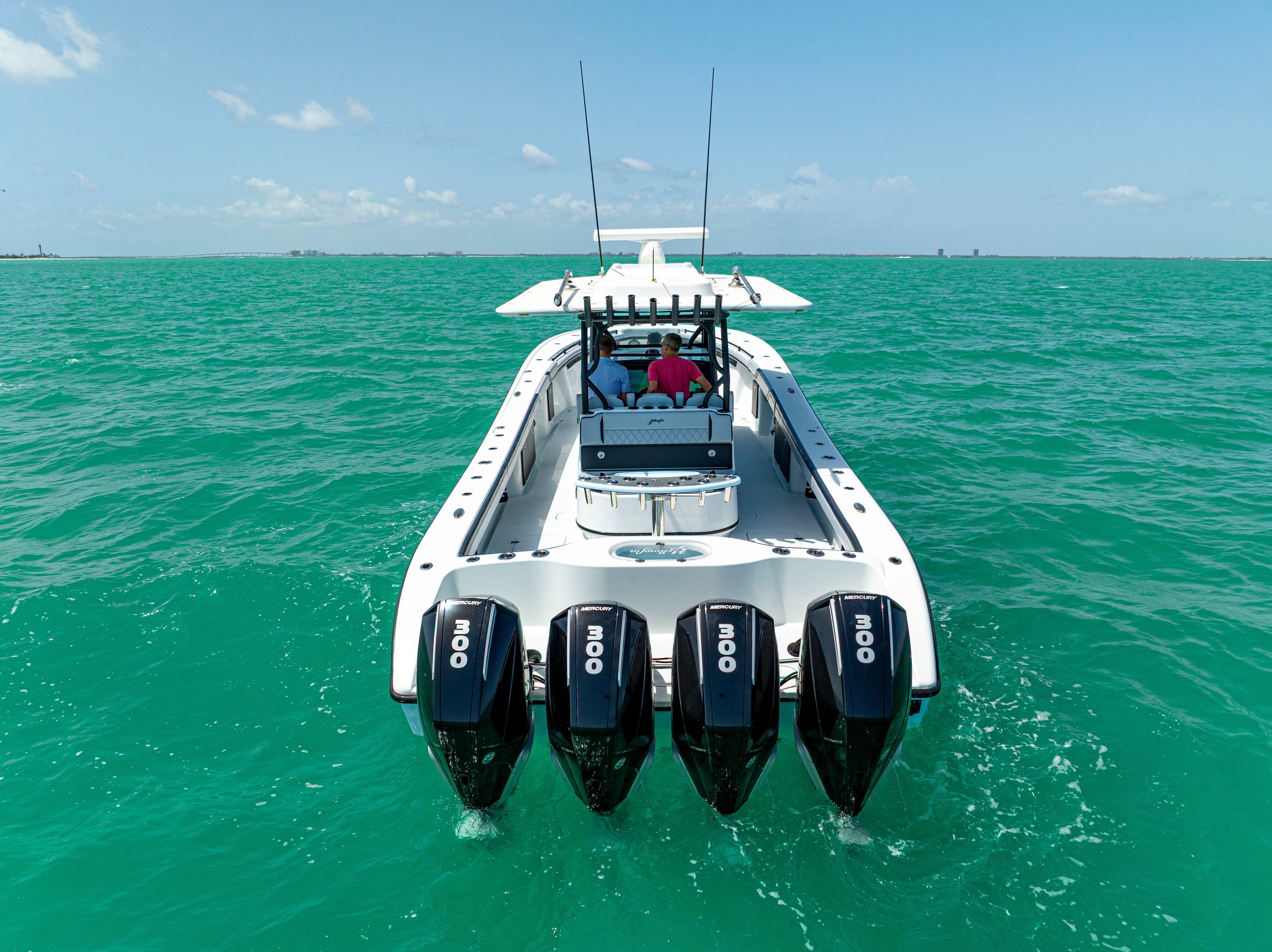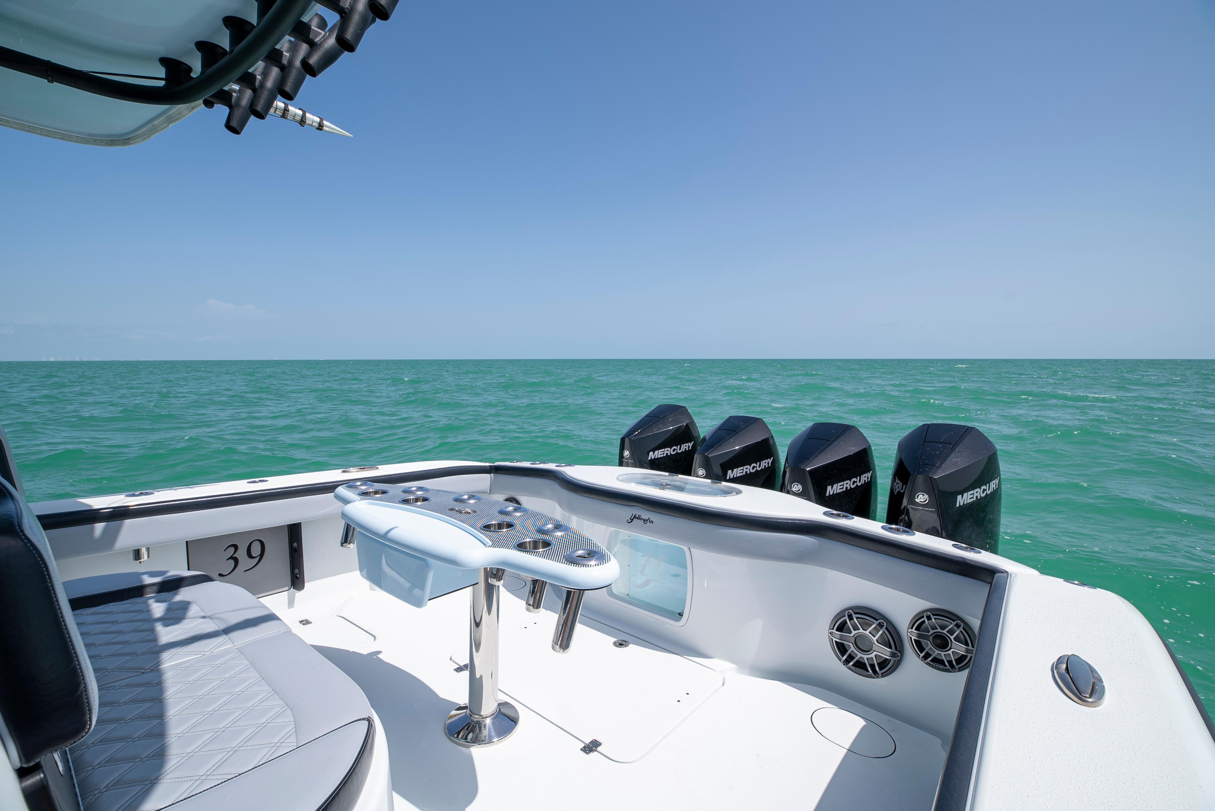 NEWEST 2022 39' YELLOWFIN TO HIT THE MARKET!! QUAD 300 MERCURY V8S WITH ONLY 250 HOURS!! ENGINE WARRANTY TILL 7/1/27!! THIS BOAT IS AN ABSOLUTE BEAUTY AND IS LOADED WITH EVERY OPTION!! - Quad 300 Mercury V8s (250 hours)- Amera Trail Trailer '- Ethereal Blue Hull Color and Underside of Hard Top- (2) 22" Garmin units - (1) 12" Garmin unit- Garmin autopilot - Garmin HD Radar- Fushion head unit with Bluetooth- Massive JL Audio sound system, speakers, subwoofers, and amplifiers (Titanium color) - Airmar transducer- Windlass- Bow Thruster- Underwater lights- Lumitech multi-color under gunwale lights- Head inside the console- Coffin box with removable backrest- Gem lux blue water bases and carbon fiber outriggers - Baitwell pump box- Custom rocket launcher - Custom covers - Extra rod holders throughout - 3 house batteries - Double diamond stitch upholstery - Triple headrest helm seating- All pipework in textured black - Hull and underside of the hardtop is Etheral Blue - Antennas painted black - All calking in black- All boxes in black - LED light bar- Full boat cover - Live Well WindowTOO MANY OPTIONS TO LIST!! SHE WON'T LAST!!WE CAN ASSIST WITH FINANCING AND WILL CONSIDER ALL TRADES!!