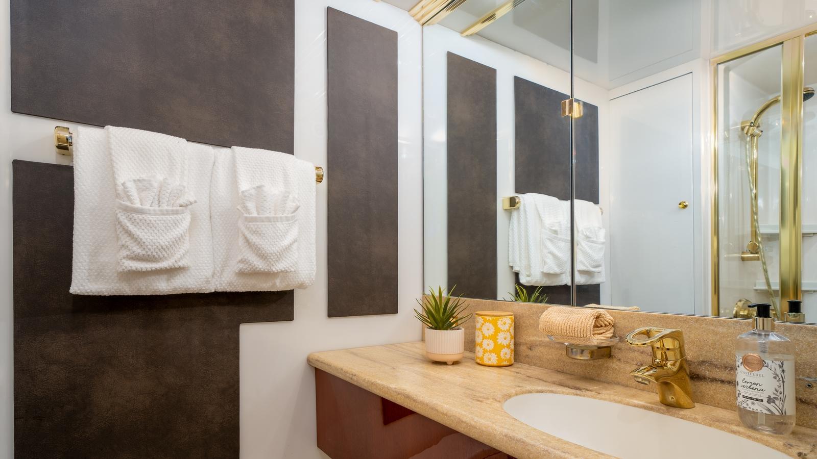TRYST offers accommodation for up to 10 guests across five well-appointed cabins. Her rare and versatile five-cabin layout maximizes both space and privacy, making her ideal for larger groups or extended family cruising. The highly desirable skylounge provides an elegant social space for gathering and relaxation, while a dedicated pilothouse offers serious navigation capabilities for the captain.Practical amenities enhance the cruising experience, including two full-size washer and dryer units that make extended voyages more comfortable and convenient. The modernized galley's all-new appliances complement the sophisticated living spaces throughout the yacht.TRYST underwent a comprehensive refit in 2022 that transformed both her interior and exterior systems. The galley received a complete modernization with all-new appliances, creating a chef's dream for onboard dining. The interior was refreshed with new carpeting throughout and dining area updates that include custom chairs and a striking glass tabletop. All interior and exterior lighting was converted to energy-efficient LED systems for enhanced functionality and reduced power consumption.The electrical system received significant upgrades with ASea power converters being fully overhauled and all new 8D house and engine batteries installed. Safety was prioritized with the addition of two new Revere Commander 2.0 Offshore Survival life rafts and a new 406 MHz EPIRB installation, ensuring peace of mind during extended voyages.The yacht's exterior showcases fresh paint completed in 2022, giving TRYST a pristine appearance. All teak decks have been meticulously maintained through razor-stripping, fresh Sikaflex application, and professional sanding to achieve a smooth, even finish that's both beautiful and functional.The enclosed flybridge offers protected helm operation while maintaining extensive outdoor entertaining areas for guests to enjoy. The forward sun pad has been redesigned for enhanced relaxation, providing an ideal spot for sunbathing and lounging. A luxurious jacuzzi provides the perfect retreat for unwinding while at anchor or underway, adding a resort-like element to the yachting experience.The mechanical systems have received thorough attention to ensure reliable operation and optimal performance. Engine mounts were replaced to improve performance and reduce vibration, creating a smoother cruising experience. Engine shafts and couplings have been turned and precision-balanced, while shaft stuffing boxes were renewed for reliable operation. Rudder packing glands were replaced to ensure precise steering response, and a new Kobalt air compressor was installed to support various onboard systems.TRYST is truly turnkey and ready for immediate adventures, with every system updated and maintained to the highest standards.