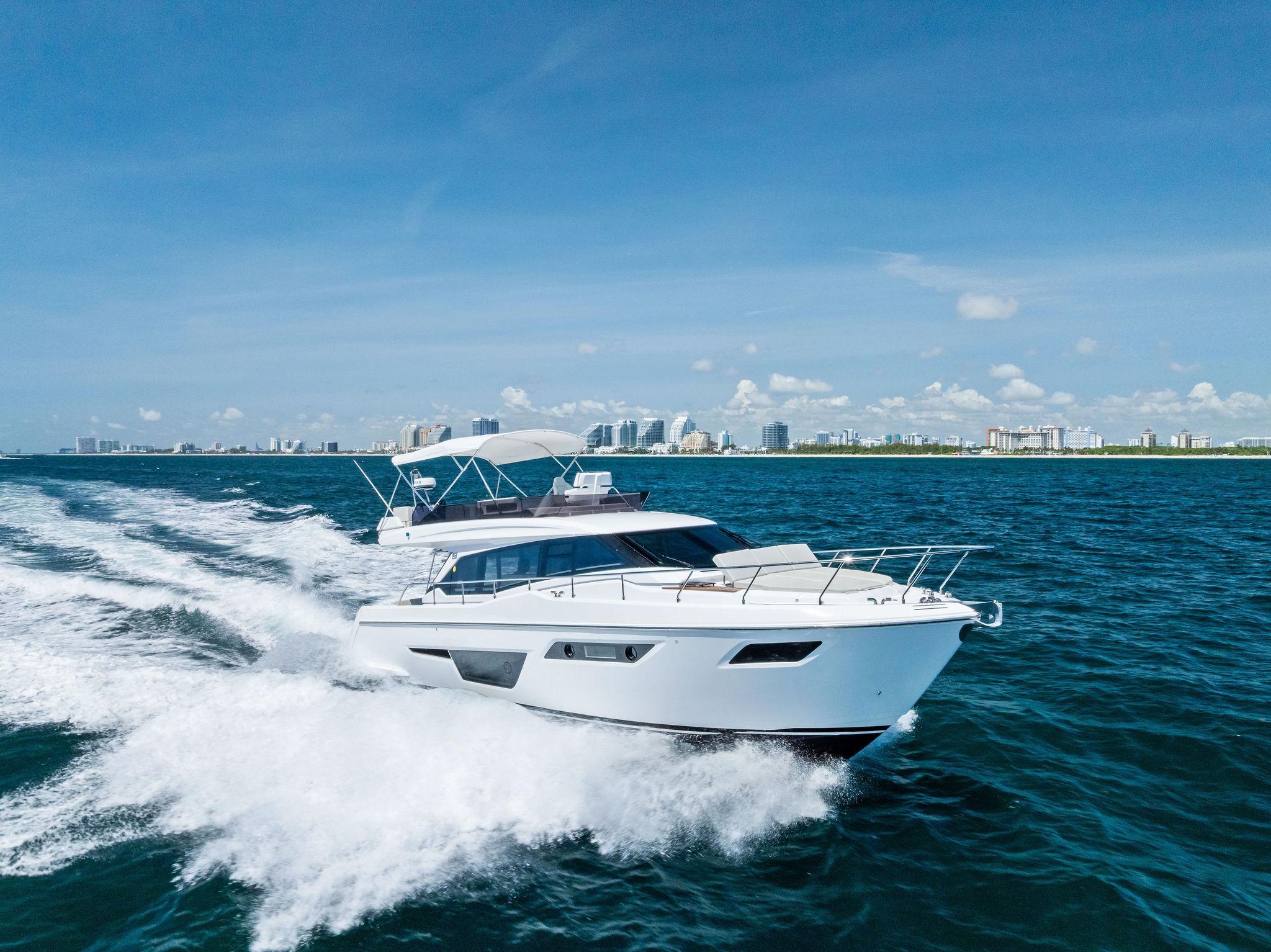 2024 Ferretti Yachts 500*Ready for Immediate Delivery*This well-equipped 500 Ferretti is turnkey, and she is equipped with the SeaKeeper Gyro for added comfort while at anchor.*Bottom paint, prop speed and service recently doneWith her upgraded interior this 500 will make you feel right at home. And, with her neutral color scheme throughout, you can change the look anytime just by adding throws and pillows in your favorite color. As you step out of the salon and the carpet, you’ll feel the comfort of teak decks under your feet along with the large teak steps leading to the very comfortable flybridge. This 500 Ferretti is a must see. Features:Underwater Lights (2)Teak in SpoilerShore Waker IntakeTeak Steps to SidewalksFridge in FlyGrill in FlyCover Lockers for Mooring WinchJoystick (2 Stations)Spotlights for Sidewalks and BowCourtesy Lights to FlybridgeCourtesy Lights to SpoilerSmoke SeparatorCrew Cabin OutfitIcemakerBimini Top in Stainless Steel with Led LightsListing PlatformTV 43" in DinetteTV 32 in Master CabinTV 22 in Guest CabinTV 22 in VIP CabinSunpad at Bow with Reclining HeadrestsAutopilot SimradControl Unit for AutopilotSAT TV PredispositionHifi Fusion MS-RA770Speakers to Fly (2) with Volume ControlCockpit Amplified SpeakersRadar AntennaSeakeeperElectric TV Raising System for SalonCummins EAPP CertificateSimrad Display UpgradeDigital Chain Counter at HelmTop of the Bar Cockpit UnitLight Wood PackageParquet: Milano LatteGalley Countertop: Marble Fridge & Freezer Furniture Top: MarbleFurniture Tops: White GlassFurniture Tops with Leatherette Accents Bathrooms: StandardSalon Sofa: FabricPilot Seat: LeatheretteWheel: StandardMaster Cabin Sofa: FabricExterior Upholstery: White Lower Deck Carpet: UpgradeHeadboards: FabricBed Frames: Leatherette Ceilings: StandardCurtains: Venetian Canvas Package Recent Upgrades:Bottom PaintHull strainers servicedCleaned underwater metals: Main shafts, main struts, propellers, rudders, fixed trim tabs, stainless swim platform mechanismsApplied prop speedExercise seacocks: Main engines, generator and A/C raw water intakeInvoices Available