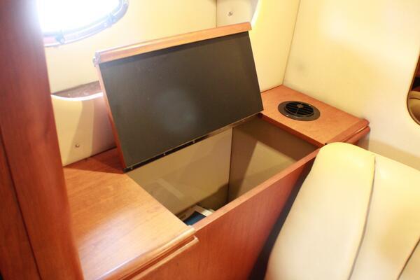 This 2002 Cruisers Yachts 3672 Express delivers the perfect blend of performance, luxury, and livability in a sleek express cruiser design. With its wide 13-foot beam, full canvas enclosure, and thoughtfully laid-out interior, this cruiser feels more like a floating condo than a 36-foot boat.Below deck, enjoy an open-concept layout featuring a spacious salon with 6’6” headroom, a convertible dinette, a fully equipped galley, and a large forward stateroom. One of the standout features of the 3672 is its full-size head with a separate shower stall—a rare find in this class! The mid-cabin settee converts to an additional berth, making this layout ideal for hosting family or guests on extended trips.Up top, the expansive cockpit boasts wraparound seating, a wet bar, and a double-wide helm seat—perfect for entertaining or relaxing at anchor. Powered by twin MerCruiser 8.1L Horizon engines, this express cruiser offers comfortable, confident cruising with solid handling and excellent visibility from the helm.Koehler generator 5.5kW - only 500 hoursMX II A/C controlDinette Seating with TablePorthole windowsLarge lounging couchPower OutletsBreaker Panel SystemOverhead LightingClarion stereo systemHelmRay Marine 12”Dual Binnacle controlsTrim Tab controlsMercury Smart CraftFireboy fire suppressantAnalogue GaugesRay Marine autopilotGalleyAbundant StorageCuisinart MicrowaveStainless SinkDometic refrigerator2 Burner Schott Ceran CooktopBreaker panelProScan TelevisionMaster StateroomQueen BedUnderbed StorageDeck HatchPorthole Windows2 Hanging lockersSamsung TVOverhead lightingCockpitSwim PlatformTransom StorageFull enclosureNew upholsteryDometic RefrigeratorJabsco Searchlight controlBoarding stepsStainless Steel CleatsElectric Engine HatchShore Power – dual 30 ampCup holdersSinkSofa in the Salon converts to a pull-out double bedCall today, as this beauty will not last long!