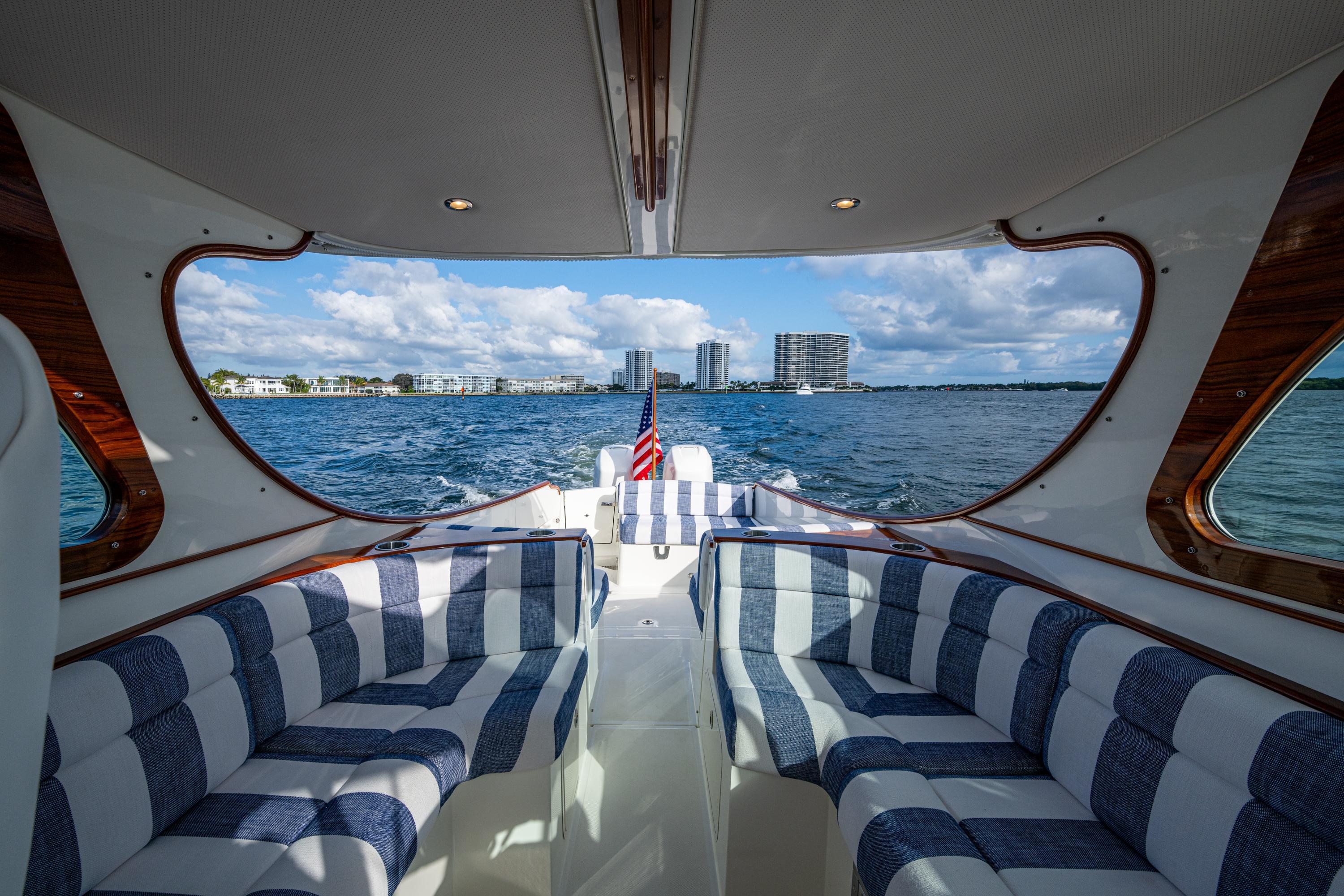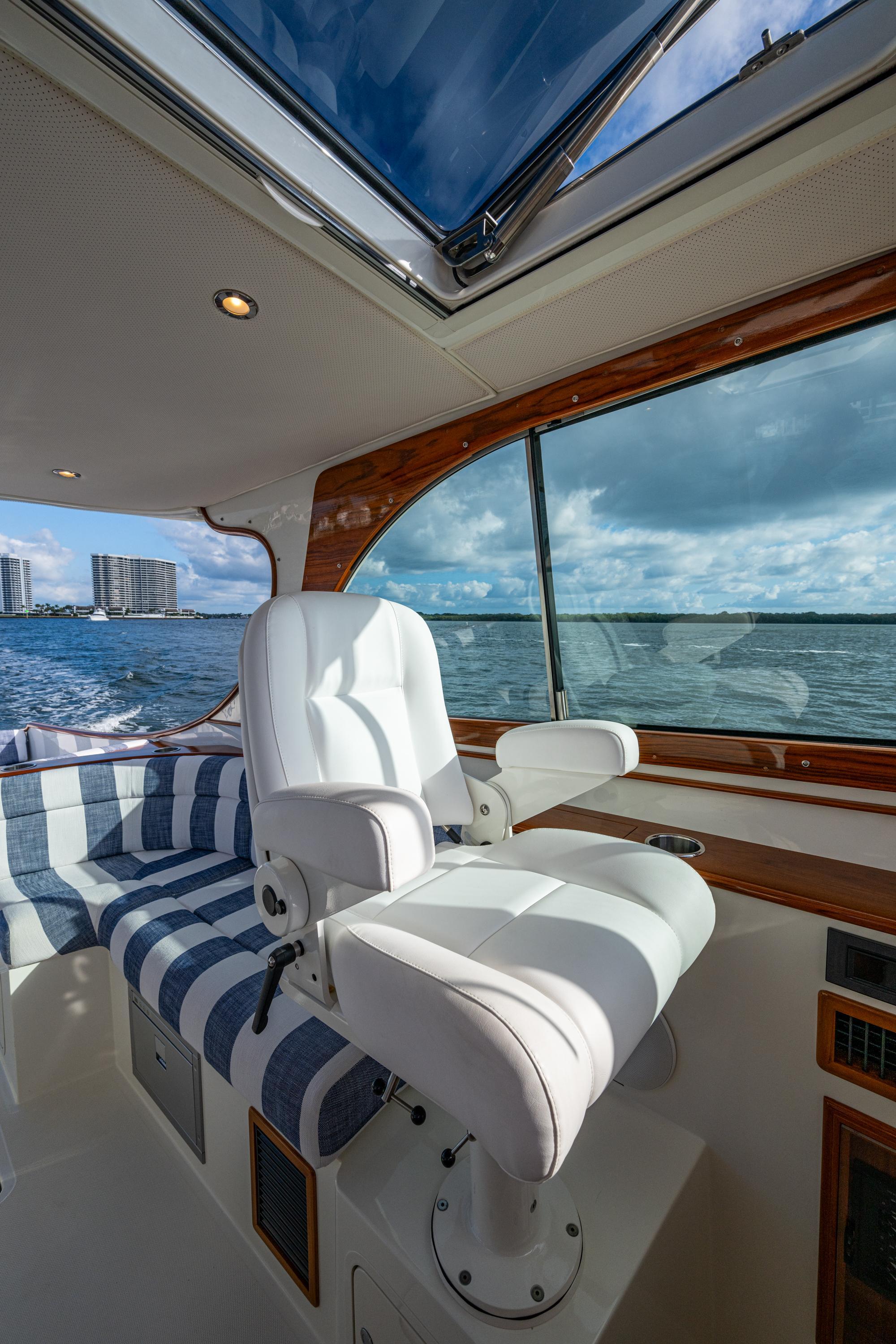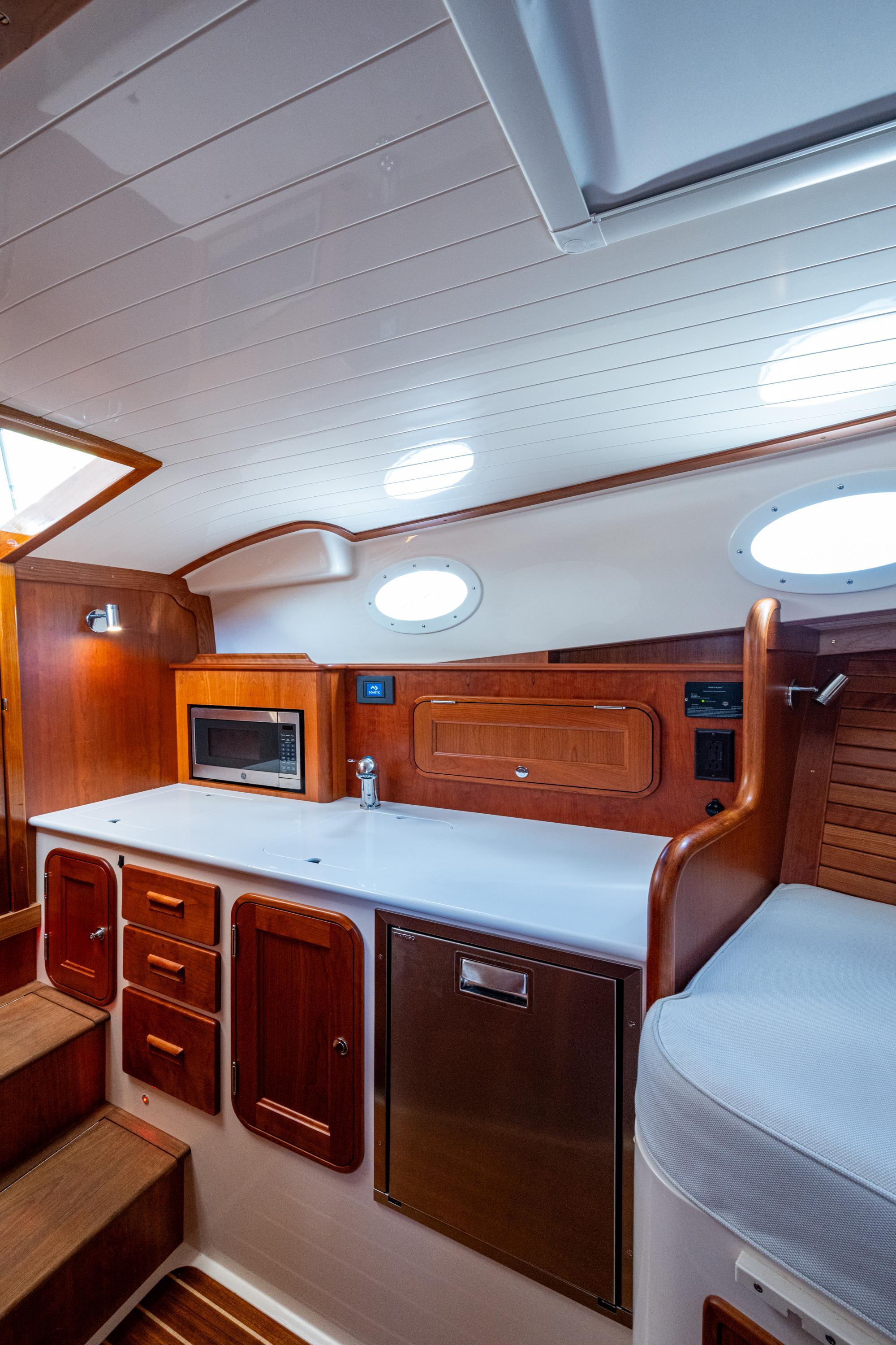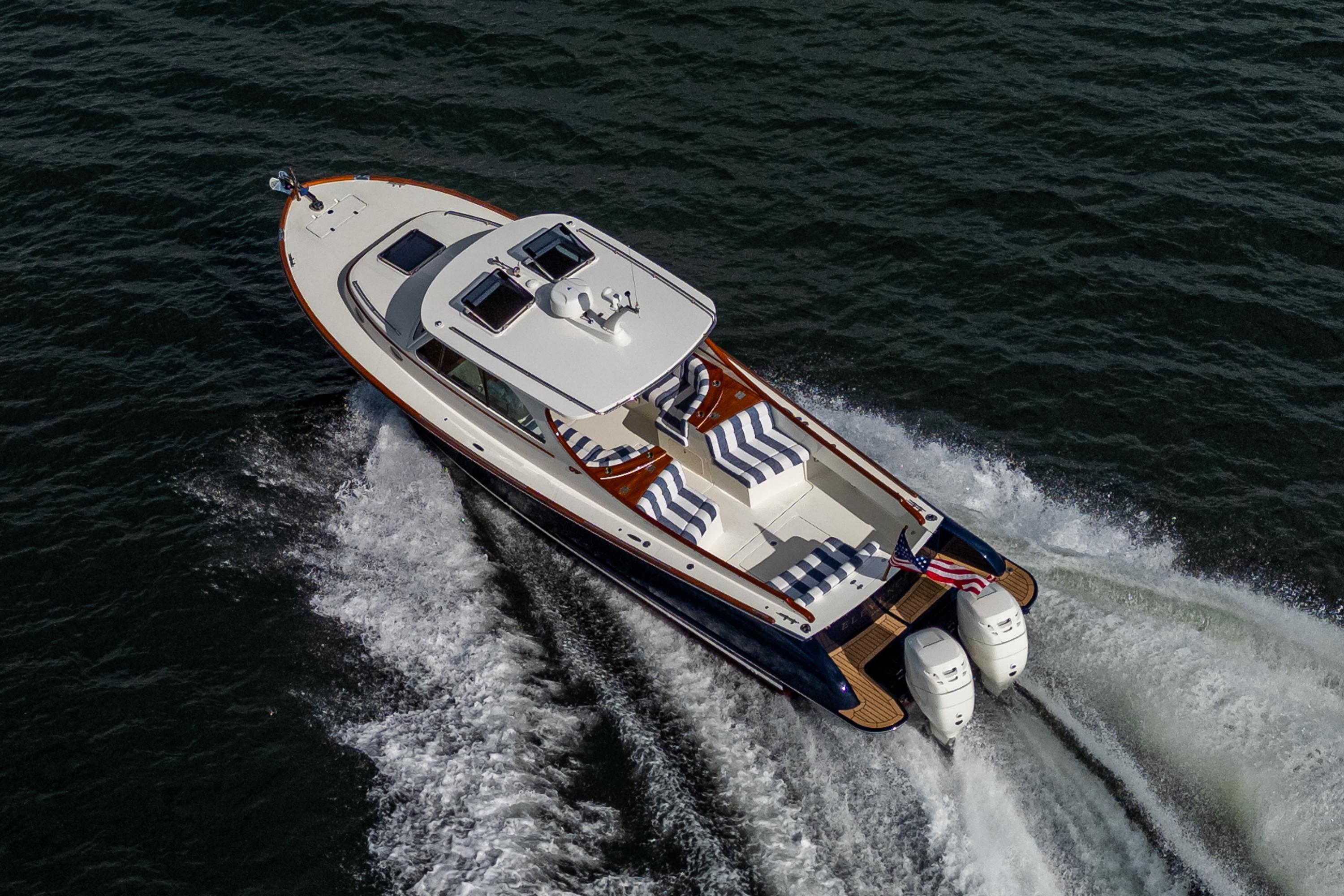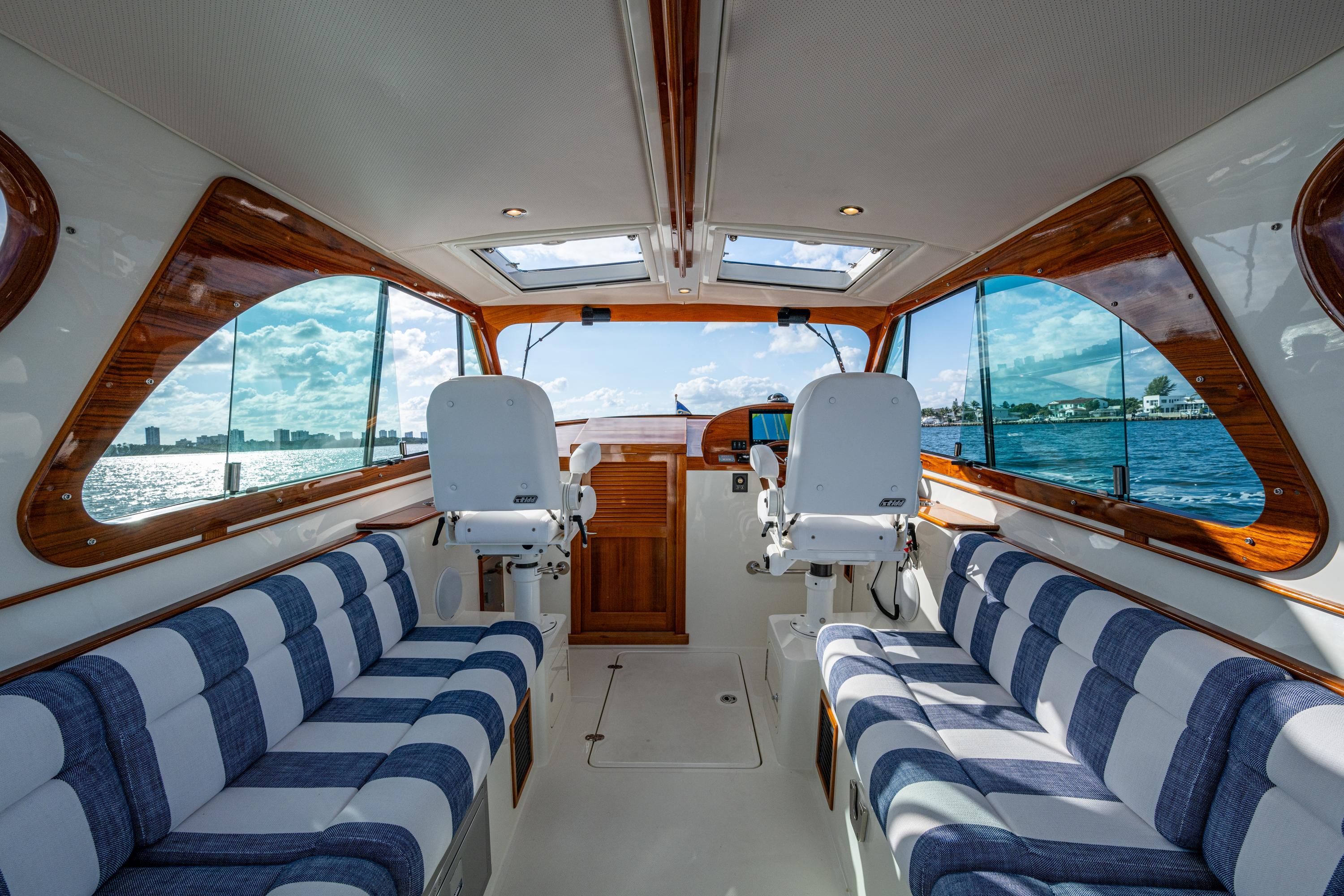 ELEVENCEAS offers the immediate delivery of a stunning and fully equipped Hinckley 35. This exceptional vessel features upgraded Mercury Verado 350hp engines, Mercury JPO joystick control, generator and air conditioning, ensuring swift and luxurious journeys. Enjoy peace of mind with a transferable Mercury Engine Warranty valid through May 2026, and extendable through Hinckley Yacht Services for ongoing worry-free cruising. Launched in 2020, the Hinckley 35 has rapidly earned acclaim for its unparalleled speed and performance, making it the perfect choice for those seeking an elegant and comfortable day boat.ELEVENCEAS’ significant features include:Upgraded Twin Mercury Verado 350hp outboard enginesMercury JPO joystick control system w/ integrated variable speed bow thrusterC-zone digital switching.5 kW Onan marine diesel generatorAir conditioning for interior and pilothouseUpgraded Garmin 8616 16” displayOptional Stidd Seats in lieu of standard helm seatsClearView™ single-pane windshieldAnchor roller with windlassDrawer refrigeration in pilothouseHull: Carbon construction with Corecell M Foam core. Infused and post-cured with Epoxy resin using Seaman Composite Resin Infusion Molding Process (SCRIMP®). E-glass outer and inner skin with closed cell foam core. Laminated using Seaman Composite Resin Infusion Molding Process (SCRIMP®).Flag Blue Awlgrip topsidesOff White gelcoat cabin house and deckStark White Awlgrip boot stripeRed Micron CSC bottom paintStainless steel half round on fiberglass molded rub railHinckley designed heavy-duty fiberglass swim platform painted to match hull color, stainless steel supports and half roundStainless steel telescoping 3-step folding swim ladder that stores under platformDeck Features: Polished stainless steel anchor roller with 12-volt windlass. Windlass controls at helm and handheld wired remote at bow locker.Flush foredeck anchor locker with hinged hatchOPTIONAL Rounded, tapered, varnished teak toe rail with Hinckley profileOPTIONAL Varnished teak eyebrow molding around cabin topPolished stainless steel handrails on cabin house, pilothouse top and across aft end of pilothouseCustom Hinckley 316L stainless steel bow chocksTwo fixed 10" bow cleats, two fixed 10" stern cleats, four 8" pull-up spring cleats, all Type 316L stainless steel.Three (3) Fender pad eyes with chafe strips on toe rails on port and starboard side decksPilothouse top with Hinckley designed fiberglass mast with radome and GPS antenna painted to match deck colorThree fixed ports on cabin house sides and one opening port in the head. Opening port in head has removable screenCockpit: The cockpit features wonderful seating with both forward and aft facing seats. There is a transom door to provide easy access to the swim platform.Cockpit features:Teak deck in pilothouse, cockpit and swim platform-Cushions in Perennials – Vintage Stripe ‘Hello Sailor’ 865-90Hinckley custom built teak step box to aid boarding on port or starboard sideTeak boarding step for port or starboard side deckStarboard transom door to swim platformCockpit shower with hot and cold mixing valve at transom doorDirect overboard drainage and stainless-steel grate covers.Removable bin beneath transom seat and storage locker in transom with drainWhite Stamoid cockpit coverWhite courtesy lights, two per side, in the cockpit footwells on a dimmer switch, two interior step lights, and one cockpit step light.Pilothouse: One (1) fixed ClearView™ single pane curved windshieldTwo (2) manual sliding side windows in concealed stainless steel frames port and starboard with light green tint.Pilothouse front window has heavy duty, self-parking, intermittent windshield wipers and freshwater washersTwo (2) Stainless steel powered lifting and dogging pilothouse overhead hatches with sky screen retractable shade/screensTwo Stidd Custom seats port and starboard. Covered in Sunbrella – Horizon WhiteCushioned settees port and starboard covered in Perennials – Vintage Stripe ‘Hello Sailor’ Insulated white acoustic overheadTeak overhead handrail in pilothouse along centerlineLighting is five (5) overhead LED lights on dimmersStorage under pilothouse settees, port and starboard(6) Cup holders in the pilothouse and helm areaVarnished teak locking companionway doorWhite Stamoid 3-piece drop curtains with Eisenglass windowsInterior window covers for pilothouse side and front windows made of White StamoidTwo (2) entertainment system speakers to port and starboard with independent zone controlHelm Area: Dual USB jack at helmManual sliding side window with powered lifting and dogging overhead hatchStorage compartment under port helm seat with door on inboard faceHinckley custom helm seat with adjustable (up/down/fore/aft) finish to match starboardGlove box for storage of small itemsVessel shore power and 120V breaker panelStainless steel cup holder forward of glove boxStainless steel footrest integrated into helm areaHelm Station:Fiberglass console and varnished teak accentsVarnished teak instrument podStainless steel steering wheel with varnished wood rimMercury JPO Control SystemBow Thruster control-under dashHinckley custom helm seat with up/down/fore/aft adjustment (and swivels), upholstery in Sunbrella – Horizon WhiteStorage compartment under helm seat with door on inboard face of compartmentGlove box to starboard for storage of small itemsManually operated sliding side window and overhead hatch with powered lifting and dogging overhead hatchStainless steel cup holder at forward end of starboard shelf12V cigarette-style charging plug and dual USB charging portFusion stereo remoteWiper and ACR spotlight controlsRitchie compassTrim tab controlsStainless footrestElectronics & Navigation: Garmin GPSMAP® 8616 multi-function 16” Display with depthGMR™ 18 XHD 4kW Radome and differential GPS antennae painted to match deckMercury JPO AutopilotVHF radio with RAM micACR remote controlled spotlight mounted on mast and painted t