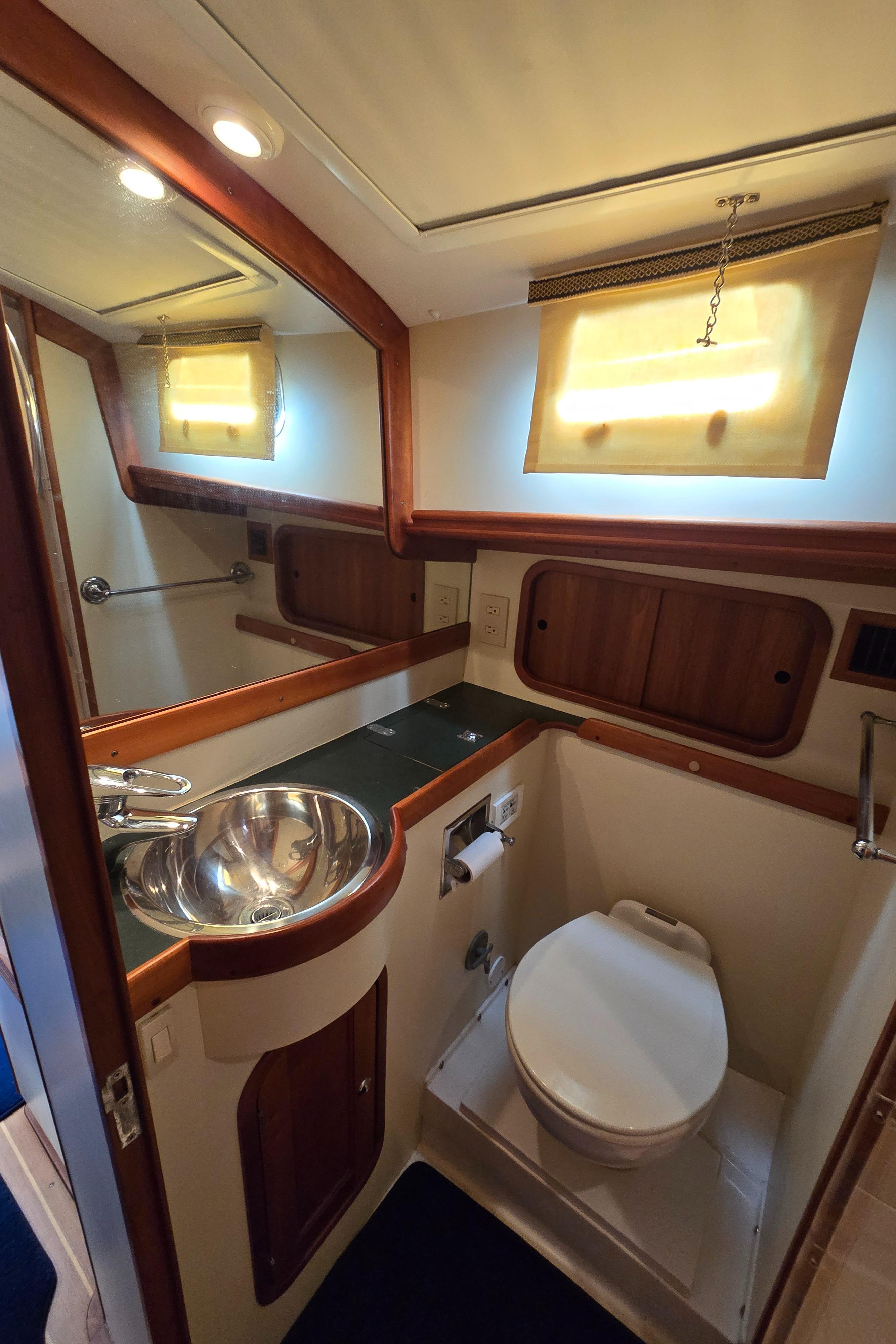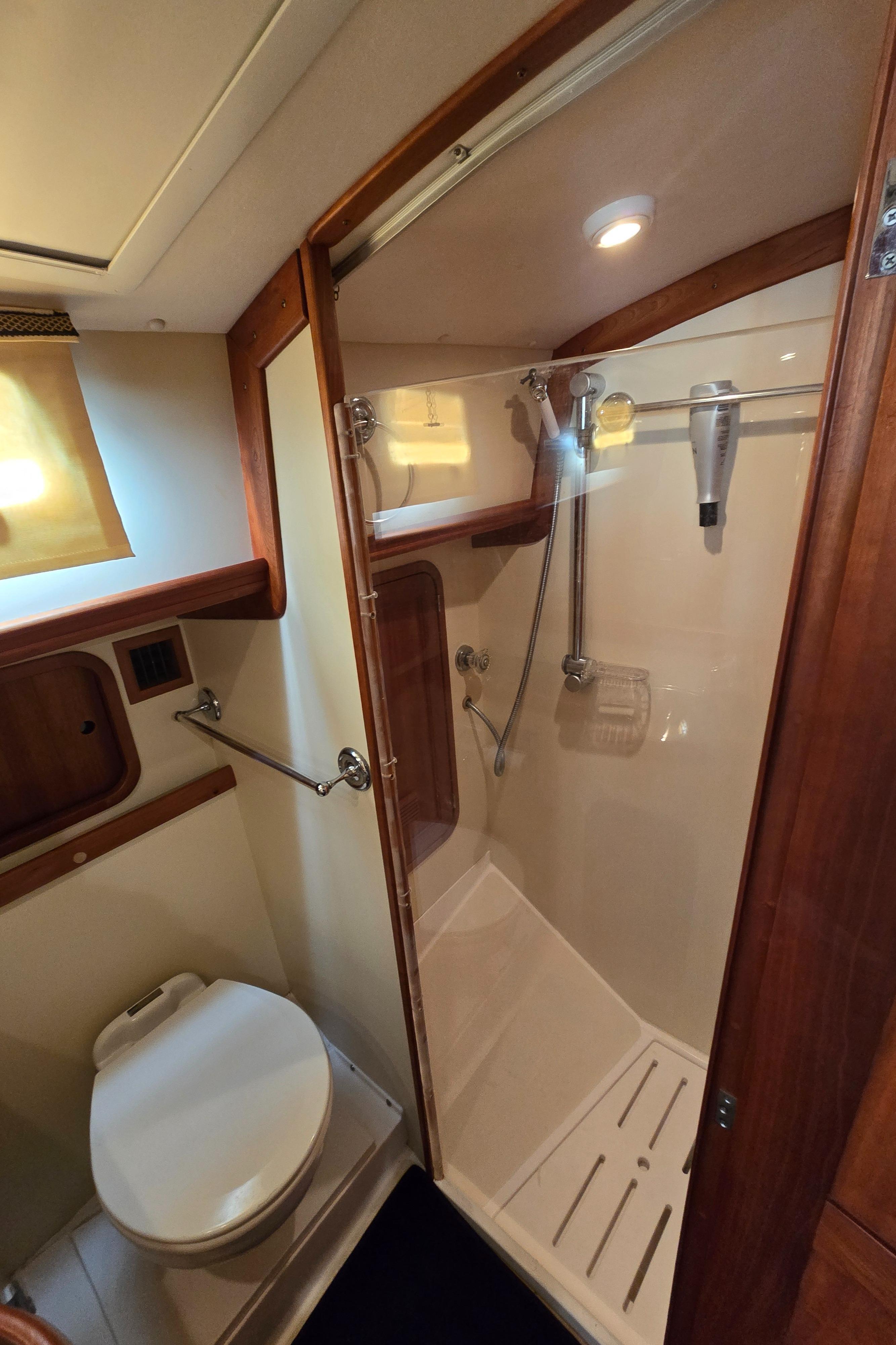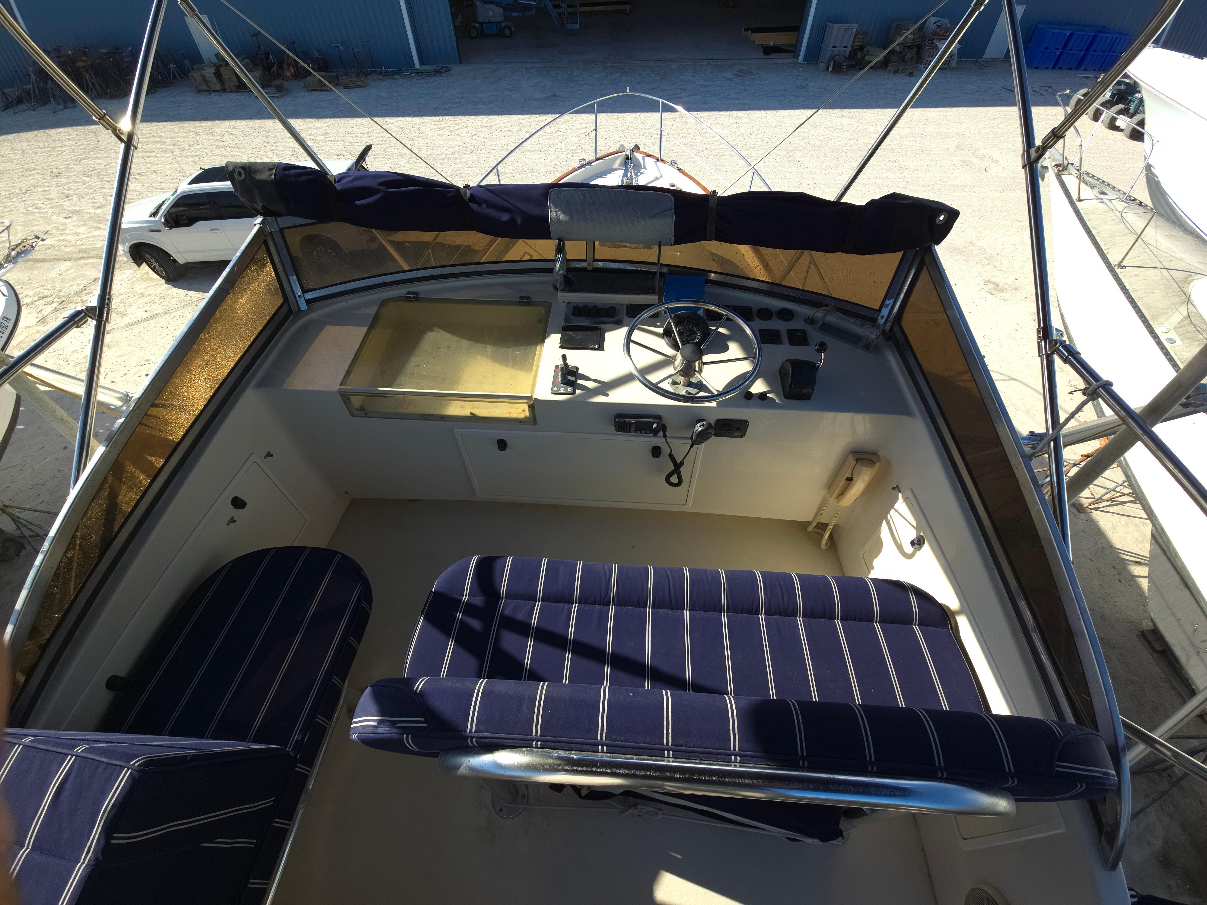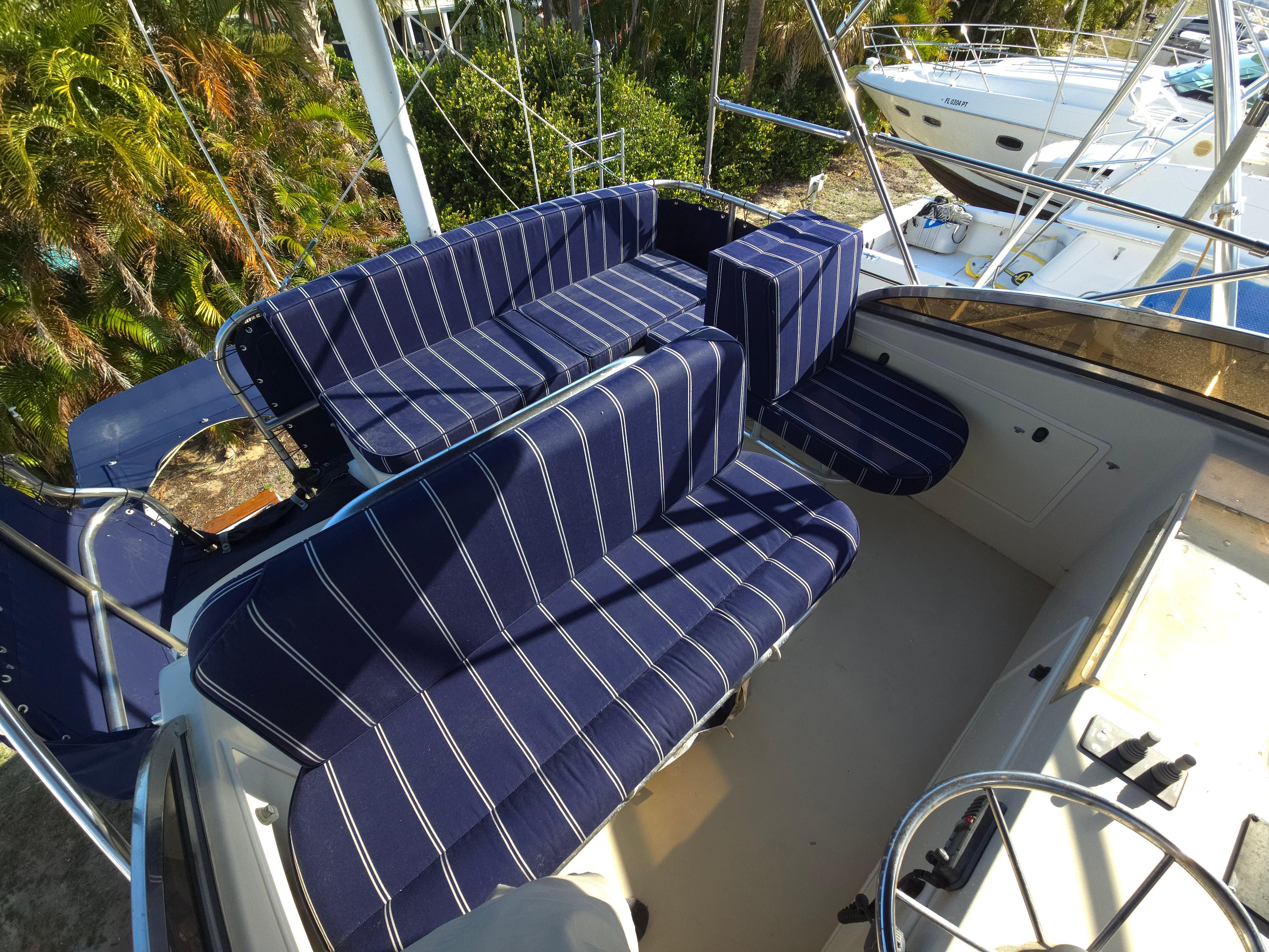 LINDY is a Legacy 40 Sedan Flybridge that has been extensively upgraded and improved by her current (second) owner at the Portsmouth and Stuart Hinckley service yards. With her single Cummins QSM-11 (635 hp) engine and Mark Ellis-designed modified deep vee hull, she is very fuel efficient. She will plane off at 11 knots and can be cruised as fast as 21 knots. The hull has a full keel so the running gear is fully protected. LINDY is a two-cabin, single-head layout with the galley down.INTRODUCTION:Currently sitting in Stuart, Florida, LINDY is a classic Downeast design that is easy to see and ready for her next owner. She has been set up to fish or cruise or just enjoying a ride at the end of the day. CONSTRUCTION: DECK & HULLHull is vacuum infused fiberglass laminate with Corecell foam with vinylester resinWhite hull with green boot stripePainted rub rail and quarter guard with stainless steel chafe strips protect the hullSwim platform with swim ladder and handholds by ladderDeck is fiberglass laminate with balsa coreWhite gelcoat with light tan nonskidVarnished teak toe rail cap on molded bulwarkStainless steel bow chocks for bowlines and hawse pipes in bulwarks for midship and stern linesStainless steel bow rail extending aft to cockpit provides security on deck (2013)Stainless steel handrails on forward trunk cabin and edge of pilothouse roofThree large overhead hatches in trunk cabin forward. Aft two have built in solar powered vent fansForepeak storage for anchor chain and fender and lines on either side of windlassCourtesy lights in bulwarks COCKPIT:The aft cockpit provides a comfortable outdoor space with access to the swim platform through a transom door and a ladder up to the flybridge. Steps up to the side decks provide access to the bow and a sliding door opens into the pilothouseAmenity under flybridge ladder includes a small sink and baitwell (sink faucet pulls out for deck shower) (2013)Aft facing seat with cushion with storage belowSecondary steering station outboard of aft facing seat with controls for engine, steering and bow and stern thrusters as well as NavNet display (2013)Fighting chair with cushion (2013, stores in bunk room when not being used)Multiple rod holders in coaming and mounted to hand railsPivoting mast that can be lowered to reduce bridge clearanceHatches in deck provide access to systems and storage below deckCustom overhead awning (2013) FLYBRIDGE:The flybridge provides and additional outdoor entertaining and driving area with comfortable seating and excellent visibility Stainless steel folding bimini provides shade (2013)Lee graphite outriggers (2013)Double helm seat with single passenger seat to port and custom second row of seating behind (flybridge design and cushions updated 2013) Passenger seat to port converts to full reclined position for loungingStorage under flybridge helm and under aft seatsStorage bin to port in dash with clear cover for charts, etc.Flybridge steering station with duplicate electronics and engine controls ACCOMMODATIONS:The warm bright interior is finished in Herreshoff style with white bulkhead and overhead with varnished cherry trim and lockers and a traditional teak and holly cabin sole with removable yacht carpet. Starting aft, the large pilothouse includes an inside helm and large seating area which steps down forward to and open galley connected visually for visiting while cooking and entertaining. Opposite the galley to starboard is a sleeping cabin with double bunk berths and sliding pocket doors for privacy. The head is forward of the galley and includes a separate stall showers and has access from the forward cabin and main cabin area. Forward is the master cabin with a large v-berth. Air conditioning with reverse cycle heat provides climate controlled comfort when desiredOpening overhead hatches and portlights throughout provide abundant natural light and ventilationOverhead hatches have integrated screens and shades and portlights have curtainsVarnished cherry hull sheathing along exposed areas of hull insideCustom blue carpets over teak and holly cabin soleSolid cherry passage doors with stainless steel hardwareOverhead sound down material replaced 2013 PILOTHOUSE:The pilothouse with its large windows and comfortable seating is the primary interior living and entertaining space on the boat. The layout was customized by Hinckley in 2013 Excellent visibility through three large fixed forward windows, large fixed side and aft windows (side windows replaced 2013).Access to cockpit and side decks through sliding doors aft and on both sides forwardElectric window blinds for side and aft windowsHelm area forward to starboard provide protected inside steering station with easy access to the side deck through sliding doorL shaped settee aft to port with dining table and settee opposite to port behind helm with rod storage under starboard setteeDining table has fold out leafs and bottle storage (2013)Double helm seat with backrest that folds down to provide end table for starboard setteeOpening chart table to port above galley with storage belowLG smart flat screen TV in fold down cherry overhead box with Apple TV system (2023) GALLEY:The open u-shaped galley is open above to the pilothouse and has a bright and open feel. Dark green Formica countertop with cherry fiddlesStainless steel double sink with hot/cold pressure water faucetUnder counter refrigerator with separate large top loading freezer compartment outboardTwo burner Princess electric cooktopSharp microwave mounted under cooktopExcellent storage in lockers above and outboard of counter as well as in drawers and lockers below the counterLarge stainless steel opening portlight provides views outside and light and ventilation GUEST CABIN:The guest cabin opposite the galley provides sleeping for two in bunks and can also be used as a seating area to visit with the cook Lower berth pulls out to convert to small doubleSliding pocket doors can be closed for privacyO
