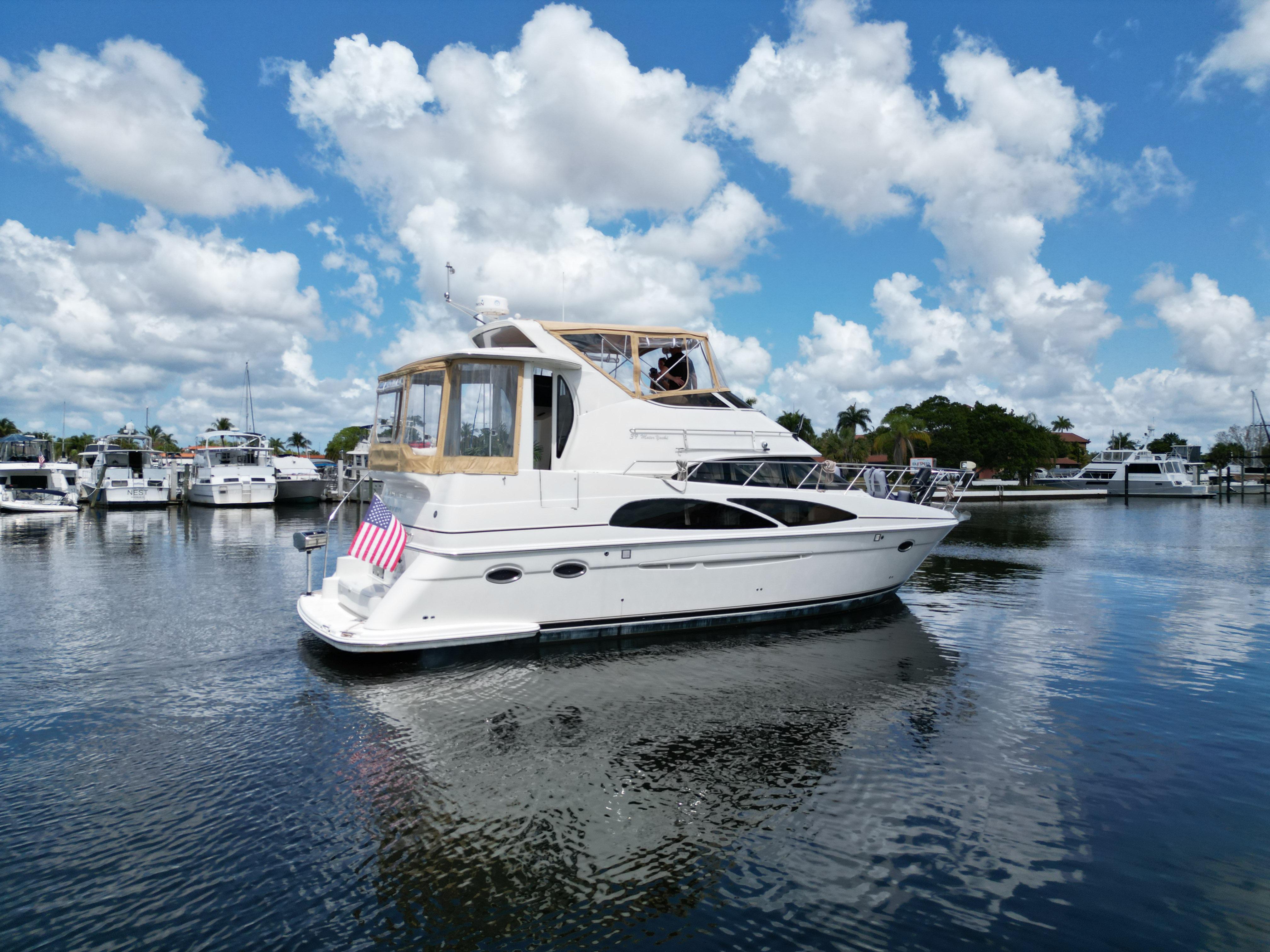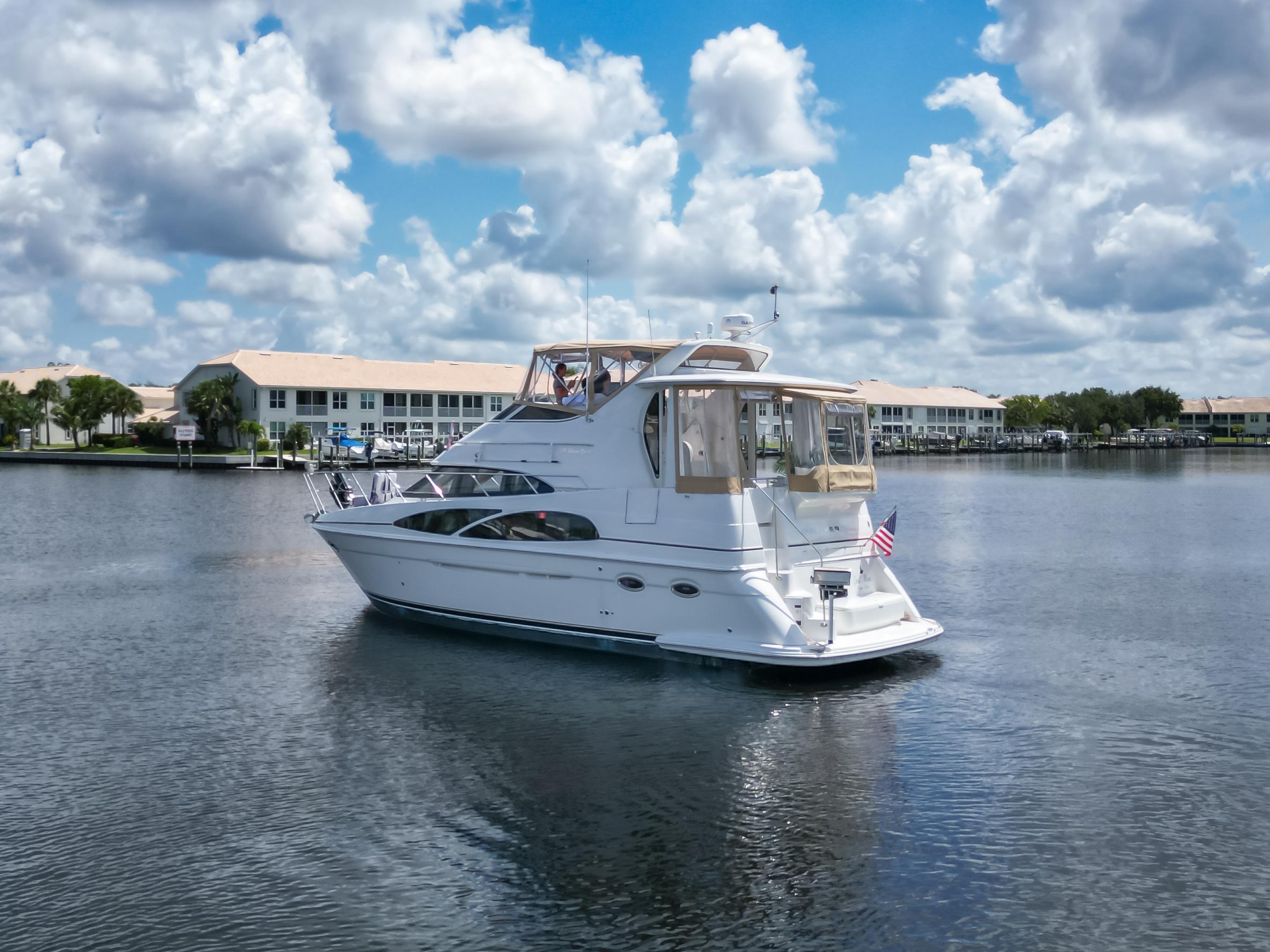 2005 Carver 390 CPMY – Ideal Great Loop Cruiser & LiveaboardMOTIVATED SELLER – BRING YOUR OFFER!The 2005 Carver 390 Cockpit Motor Yacht (CPMY) is a superb choice for cruising the Great Loop or enjoying extended liveaboard comfort. With twin 370hp Volvo Penta diesel engines (only 481 hours), an Onan generator, updated Garmin electronics, and a newer enclosure, this vessel is turn-key and ready to go.Key Features:Length: 40' LOABeam: 13'11"Draft: Approx. 3'6"Bridge Clearance: 18’10”Fuel Capacity: 330 gallonsFresh Water: 90 gallonsHolding Tank: 72 gallonsEngines: Twin Volvo D6 370 HP Diesels – 481 hoursGenerator: Onan Diesel – serviced and operationalInterior Accommodations SalonSpacious and bright with large panoramic windowsCherry wood cabinetry and trim throughoutDual Ultraleather sofas with recliners (port and starboard)Reverse cycle heat/air conditioningEngine room access via the salon floorEntertainment: 24” Flatscreen TV, Fusion stereo, DVD playerAC/DC breaker access panelGalleyHardwood flooringStainless steel double sink with water dispenserSharp convection microwavePrincess 3-burner electric stoveFull-size refrigerator/freezerAmple cabinetry and drawer storageDinette with wood table across from the galleyMaster Stateroom (Aft)Private and spacious with walk-around queen berthEn-suite head with a separate showerNew 40” Vizio Flatscreen TV, DVD player, and stereo speakersCedar-lined hanging locker, large storage cabinetsCarpeted, curtained windows for privacy and comfortVIP Stateroom (Forward)Centerline queen berthCedar-lined hanging locker and abundant storageFlatscreen TV, DVD player, stereo, and outletsOverhead hatch with screen and portholes with curtainsExterior & Deck Areas Aft DeckHardtop with full enclosure (excellent condition)Built-in bench seating and large storage lockersOverhead and courtesy lightingPort and starboard plexiglass wing doorsFlybridgeLarge L-shaped seating with captain's chairNew Bimini top and full enclosure with U-zip panelsGarmin 8612 chartplotter, radar dome, autopilotRitchie compass, Icom VHF, Lowrance depth indicatorDual engine controls, bow thruster, spotlight controlWet bar with sink and Raritan icemakerUSB charging outlets, stereo with speakersBow AreaWide side decks with stainless handrailsPlow anchor with windlass and foot controlsStainless fender holders and sunpad lounging areaMechanical & ElectricalTwin 370hp Volvo diesels – only 481 hoursOnan generatorReverso oil change systemFire suppression systemBilge pumps, sea cocks, freshwater pumpRecent full mechanical serviceUpdated batteries, fans, and charging outletsRecent Maintenance & UpgradesProps tuned and balancedNew Bimini topOil and filter changes (engines & generator)Transmission fluid servicedNew belts and zincs installedGenerator & engine impellers replacedCooling system descaledHeads serviced with new duckbill valves and sealsWater filters added to icemaker and galley faucetNew fans in stateroomsUSB ports added in salon and flybridgeSummaryThis Carver 390 CPMY is well-maintained, extensively updated, and ready for your next adventure. Whether you’re planning to cruise the Great Loop, weekend on the water, or move aboard full-time, she offers the comfort, reliability, and functionality you need.Located in North Fort Myers, Florida.Contact for More Information or to Schedule a ViewingMotivated Seller – All Offers Considered!
