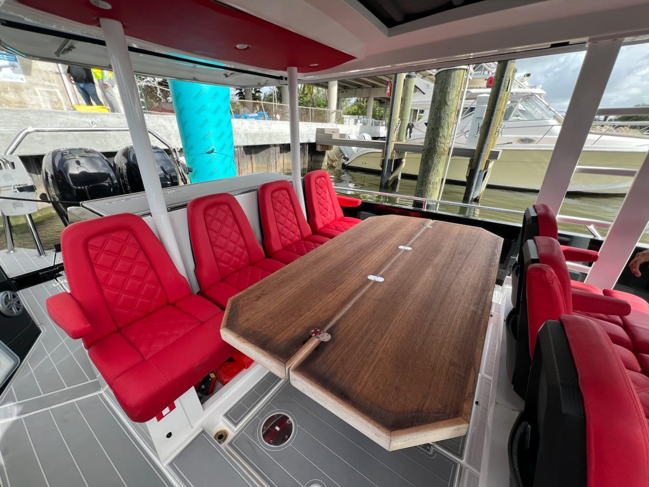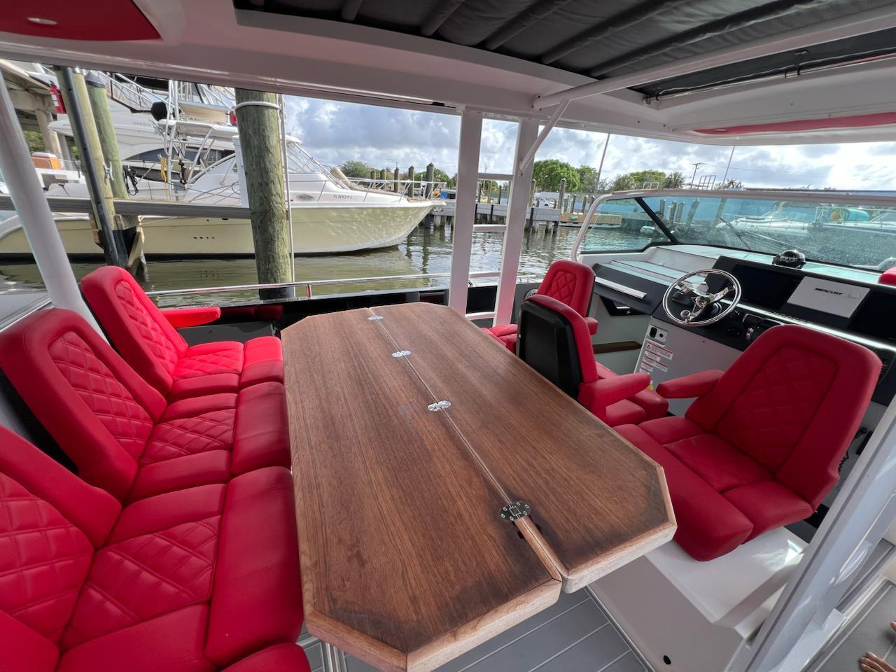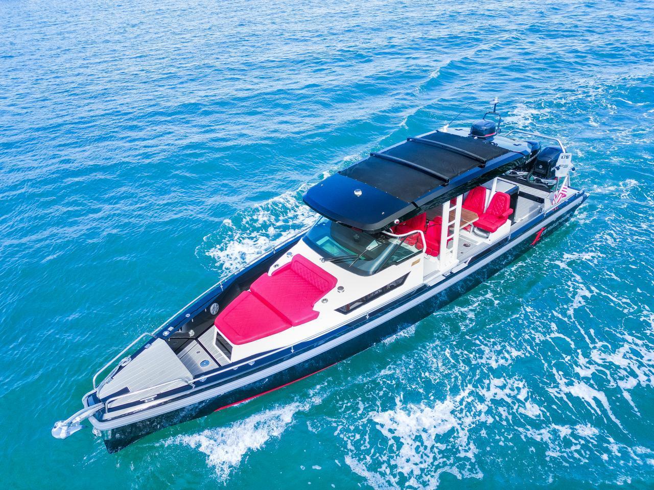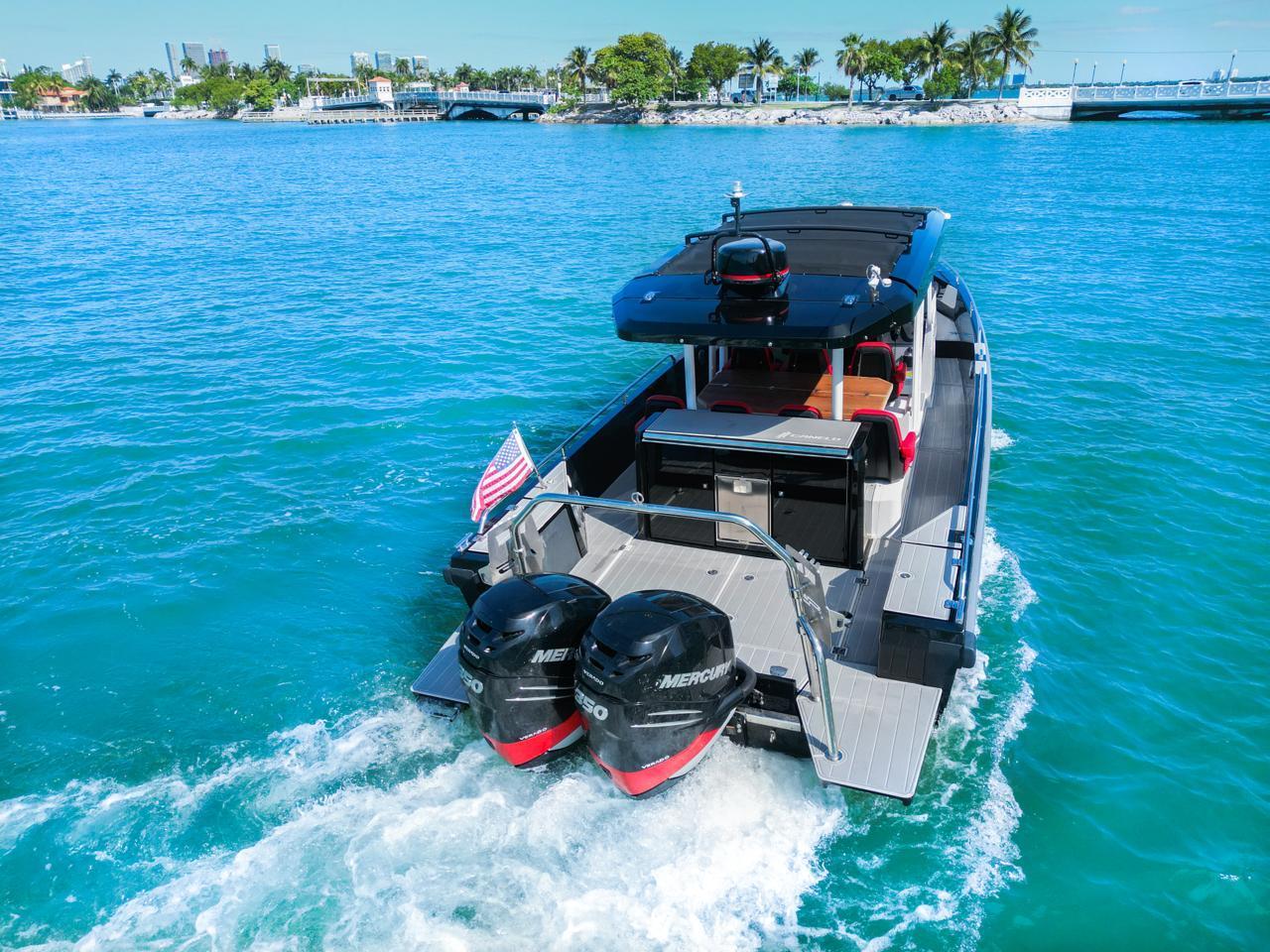 2018 Axopar 37 Sun Top – One-of-a-Kind All-Black Edition | Fully Loaded, Low Hours, and Water Sports ReadyThis 2018 Axopar 37 Sun Top is unlike anything else on the water. It’s the only Axopar 37 in the world with a full custom black paint job, paired with bold red upholstery and premium custom SeaDek flooring—a striking combination that sets it apart in any marina.Powered by twin Mercury 350 Verado engines with 458 hours, this boat offers exceptional performance, cruising comfortably at 28 knots and reaching top speeds of 45 knots. The deep-V hull ensures a smooth, dry ride whether you're island-hopping, cruising offshore, or enjoying water sports.Speaking of fun—this Axopar is fully outfitted for watersports, including board holders and a ski tow pole, making it the perfect choice for adventurous days on the water.Inside, the forward cabin sleeps two and includes a private head (toilet and sink), with an optional aft cabin allowing for additional overnight guests. With seating for up to 12 and a spacious, shaded deck thanks to the extended Sun Top, this boat balances comfort, style, and function beautifully.Key Features:Only fully black-painted Axopar 37 Sun Top in the world2018 model in excellent conditionTwin Mercury 350 Verado engines with low hoursCustom red upholstery & premium SeaDek flooringBoard holders & ski tow pole – water sports readyTop speed of 45 knots; cruises comfortably at 28 knotsSeating for up to 12 guestsForward cabin with private head (toilet & sink)Extended Sun Top for sun protection and airflowDeep-V hull for efficiency, speed, and stabilityThis unique Axopar 37 Sun Top is turn-key and ready for action—whether you're cruising through Miami, exploring the Keys, or heading off to the Bahamas.Contact us today to arrange a private showing or request more information.
