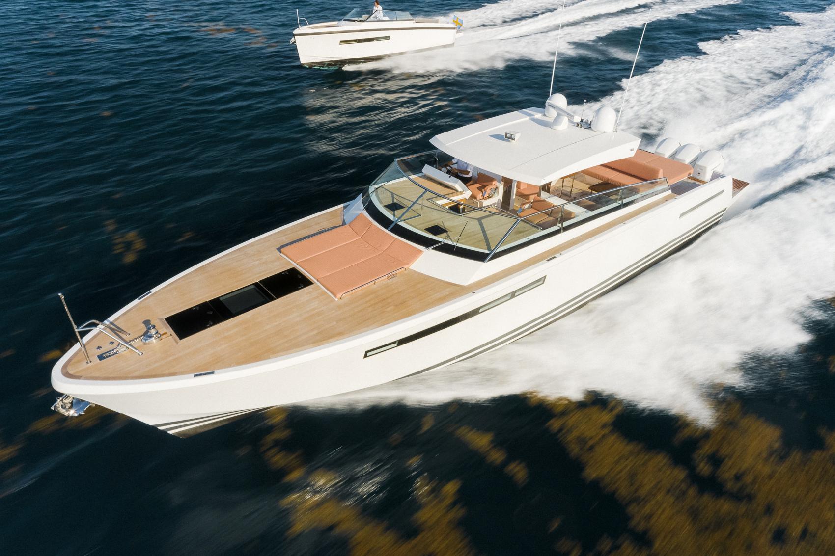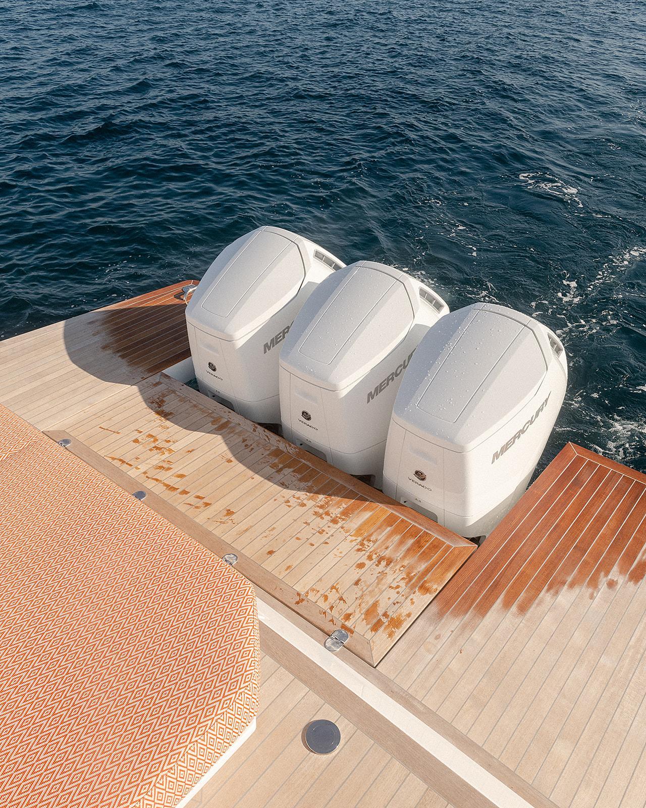 New to Market! Available now. Delta Powerboats 60 Open. The ultimate day boat! New to market Aug 2025, this 2024 Delta Powerboats 60 Open was spec’d to the highest standard including triple 600 Mercury Verado Outboards for increased performance and shallow draft boating. She is light, fast, strong, quiet and an incredibly high-quality build. Delta 60 open is the most recent launch in the range of open express cruisers from Delta Powerboats. Based on the successful hull of Delta 54 and powered by either an identical Volvo Penta IPS setup or triple 600 Mercury Varado Outboards she is as responsive and easy to handle as a pocket size sports boat.Ample exterior spaces meets with advanced technology and luxury features executed with flawless precision. The versatile cockpit holds seating for up to 20 guests and seamlessly transitions into the terrace-sized multifunctional launch platform.The belowdecks arrangement includes accomodation for six with a spacious owner’s stateroom forward with en-suite head and shower along with two amidship twin or optional double-guest cabins.With her efficient carbon fiber hull and high level of comfort the 60 open is pure powerboat performance offering endless possibilities both at sea and in ports.