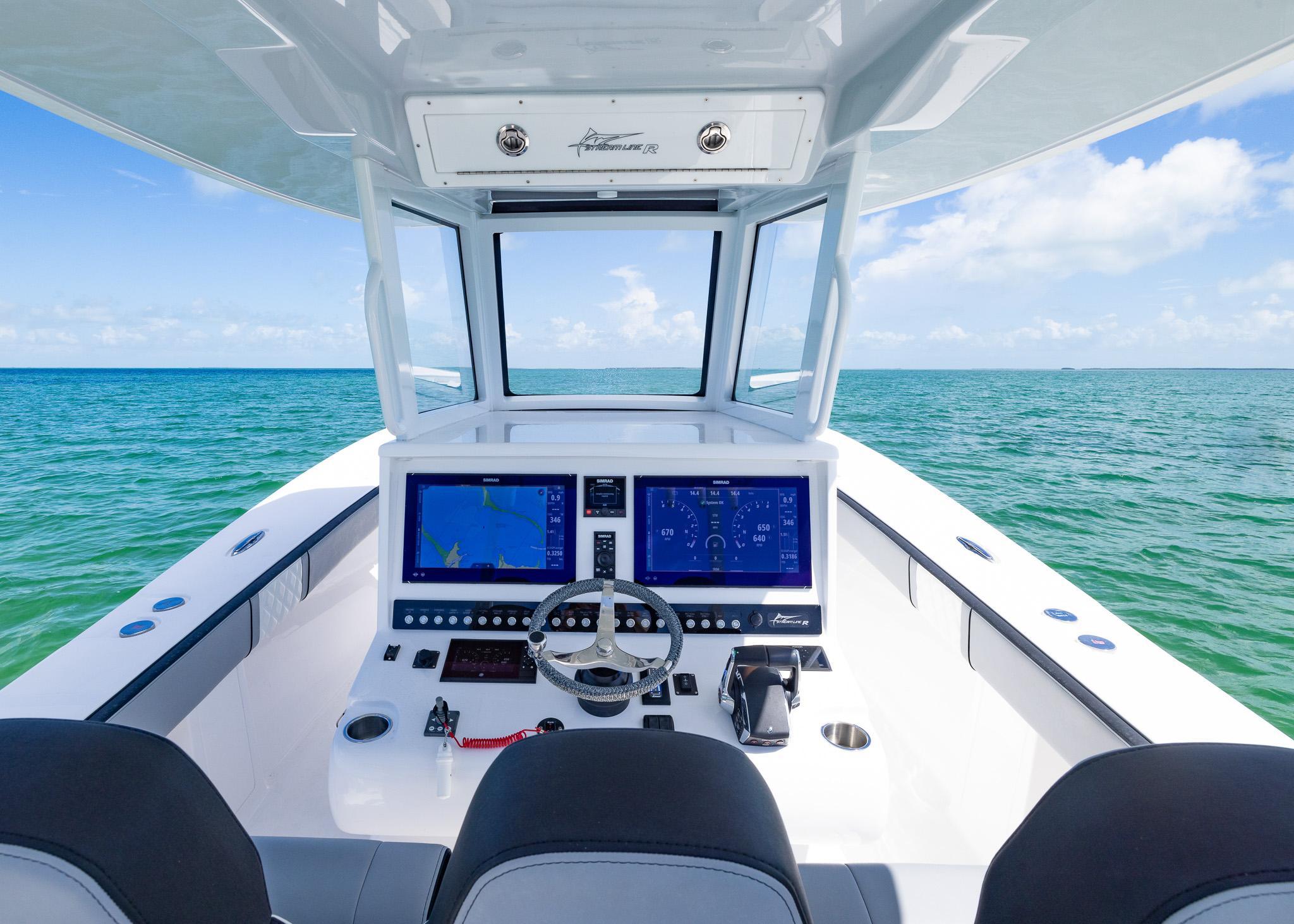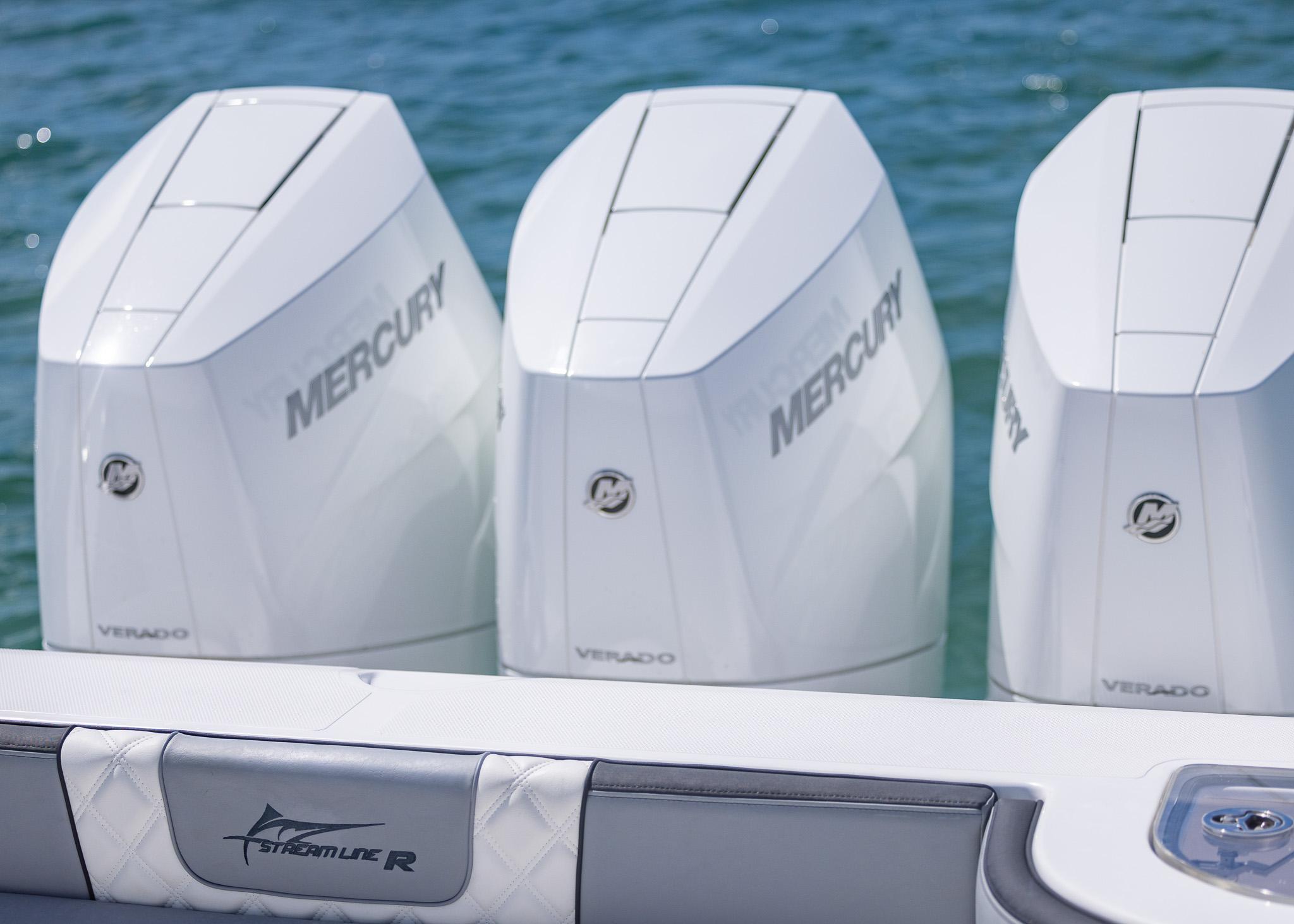 2025 Streamline R 35Warranty Until 1/28Triple Mercury 400 V10 with only 18 hours(2) Simrad Evo3 19” DisplaysPremium JL Sound SystemTransducerAutoPilotBow ThrusterWindless AnchorUnderwater LightsDive DoorSport Deluxe XL T-TopRazor Light Bar