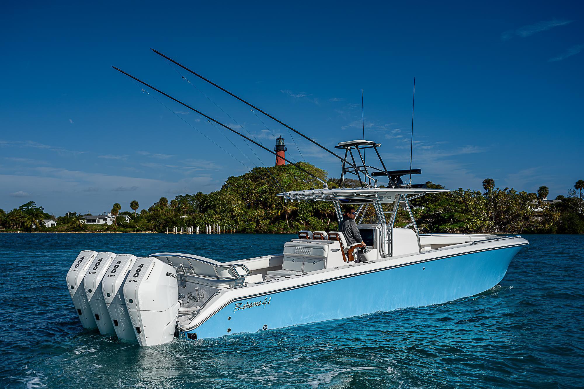 2013 Bahama 412024 Mercury Verado 400 v10’s Large 634 gallon fuel capacity! -Cold fusion white with 5 yr warranty-Custom blue hull-Stainless rubrail -Optimus steering -Glendening retractable hose reels under gunnel-Bow thruster-Birdsall crows nest-Birdsall wrap around transom bench seat -Ez2cy center panel with wings-Rear sunshade with carbon fiber poles -Recessed “Release Marine” plates in deck for rocket launcher (bow and stern)-rod holder storage inside console-Glendenning retractable hose reels(Bow and Stern)-full marine head-gps tracker for insurance -odyssey AGM batteries (7)-Release Marine “no bolt” rod holders in gunnel including 2 swivels -"Finholder" storage thruout vessel(Inside Console, cockpit, etc)-Cupholders on dash-Rupp Z-30 Outriggers with carbon fiber poles(new) New in 2023/2024-Mercury V10’s-All new Mercury Rigging-Mercury Smart Connect gateway-1/2” fuel lines-Release ladder back teak helm chairs-Release ladder back forward bench seat backrests-All new Diamond stitch upholstery thruout-Marsh Tacky 22' Carbon Fiber Internal rigged outriggers-Garmin 25kw radar-Garmin 8612(overhead)-Simrad 12” NSX (overhead)-Icom BB Vhf-VHF Antennas-Fusion Apollo 770 stereo-Fusion remote on dash-Ocean LED UNderwater Camera hooked up to 24" Garmin-Promariner battery chargers with displays(2)-Electric antenna mounts-Zip wake trim tabs-Transom hull deflectors-Carbon fiber outriggers-Garelick dive ladders(2)-Eisenglass wings-Shower curtain console cover-Engine covers-Rear bench seat cover Electronics Garmin 8624Garmin 8612Garmin GMI 20 autopilot Simrad 12” NSX (To run mercury gauges or CMOR Mapping)Simrad card reader Garmin GSD 26Garmin 25kw radarGarmin gxm54 satellite weather/radio antennaGarmin 24 gps antenna Garmin card reader Lumitec full RGB underwater lights(6)Ridgid LED light bar recessed in fiberglass enclosure JL audio 7.7 in fiberglass box(5 pair)JL audio 8.8 (1 pair)JL audio 10” subwoofers (4)JL audio 12” subwoofers (2)JL audio amplifiers (6) Boat has been stored indoors its entire life until a year ago. Boat runs 72 MPH and cruises easily at 50 mph. Continuously updated and shows like a new boat!