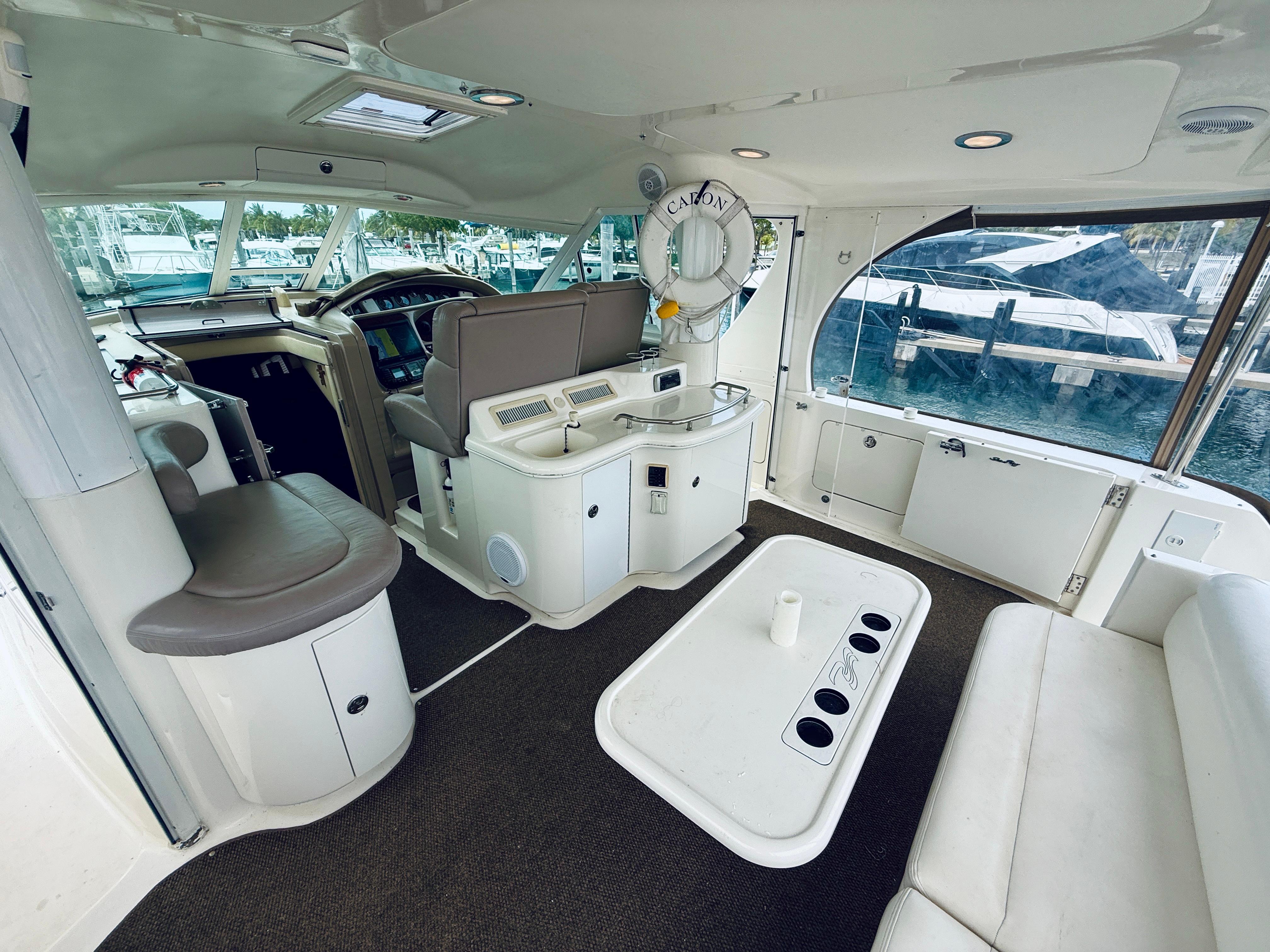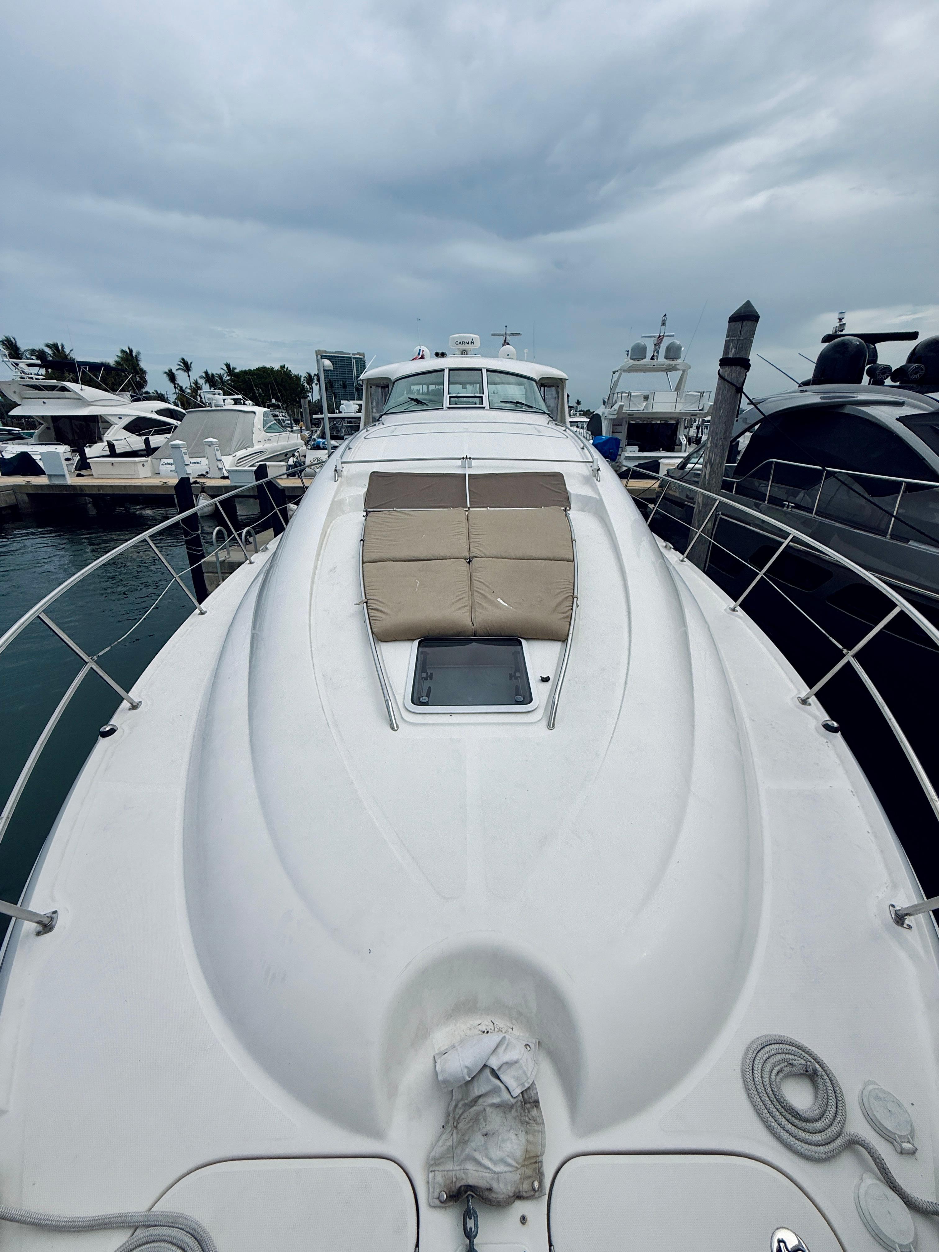 NEW TO MARKET AND WONT LAST LONG!!2003 SEA RAY 480 MOTOR YACHT OWNER FINANCING AVAILABLE AND TRADES CONSIDERED!!This Sea Ray 480 Motor Yacht HAS BEEN FRESH WATER KEPT UNTIL 2024! She features many notable upgrades, additions, and spare parts that truly make her turnkey and ready for cruising. She is powered with twin, low hr (1500) Cummins diesel engines for unparalleled performance, fuel efficiency, and reliability.Manufacturers provided description:The Sea Ray 480 Motor Yacht features quiet, twin 635 horsepower Cummins engines providing a stealthy departure (no wake, of course). For entertaining, the large aft deck has a wetbar with an icemaker, as well as a Clarion AM/FM CD with six-disc changer, four speakers, and a remote control. A fiberglass hardtop protects passengers from the elements, and textured steps lead to the swim platform with concealed stainless steel three-step ladder. The walkways leading to the foredeck are wide and textured for safe passage, and a cushion turns the area into a large sunpad. Down below, a full-size bed with innerspring mattress is the focal point of the forward stateroom. A portside storage cabinet with drawers, and a starboard full-length hanging locker with lights and beveled mirrors, provide storage. There?s also a 13-inch TV / VCR / radio combo, as well as private access to the main head compartment. Two acquaintances can stay quite comfortably in the twin berths of the guest stateroom. Filler cushions will convert the berths into a king-size bed. The forward head compartment features a VacuFlush head, a solid-surface vanity countertop with sink, a Grohe faucet, and a shower with seat, adjustable shower wand, and removable teak grate. The aft master stateroom features a queen-size bed, a full-length cedar-lined hanging locker, a built-in nightstand, a large built-in storage unit with storage shelves and drawers, as well as a 20-inch TV / VCR / radio combo. The starboard vanity with sink and plenty of storage, separates the private head with VacuFlush toilet from the private shower with seat and adjustable shower wand. The galley of the 480 Motor Yacht makes wonderful use of space with a custom molded fiberglass countertop, sink with Grohe faucet, recessed three-burner stove, microwave / convection oven, coffeemaker, and a refrigerator / freezer. A washer / dryer combo is located in the step storage compartment.Notable Features & upgrades:Twin Cummins diesel engines (
