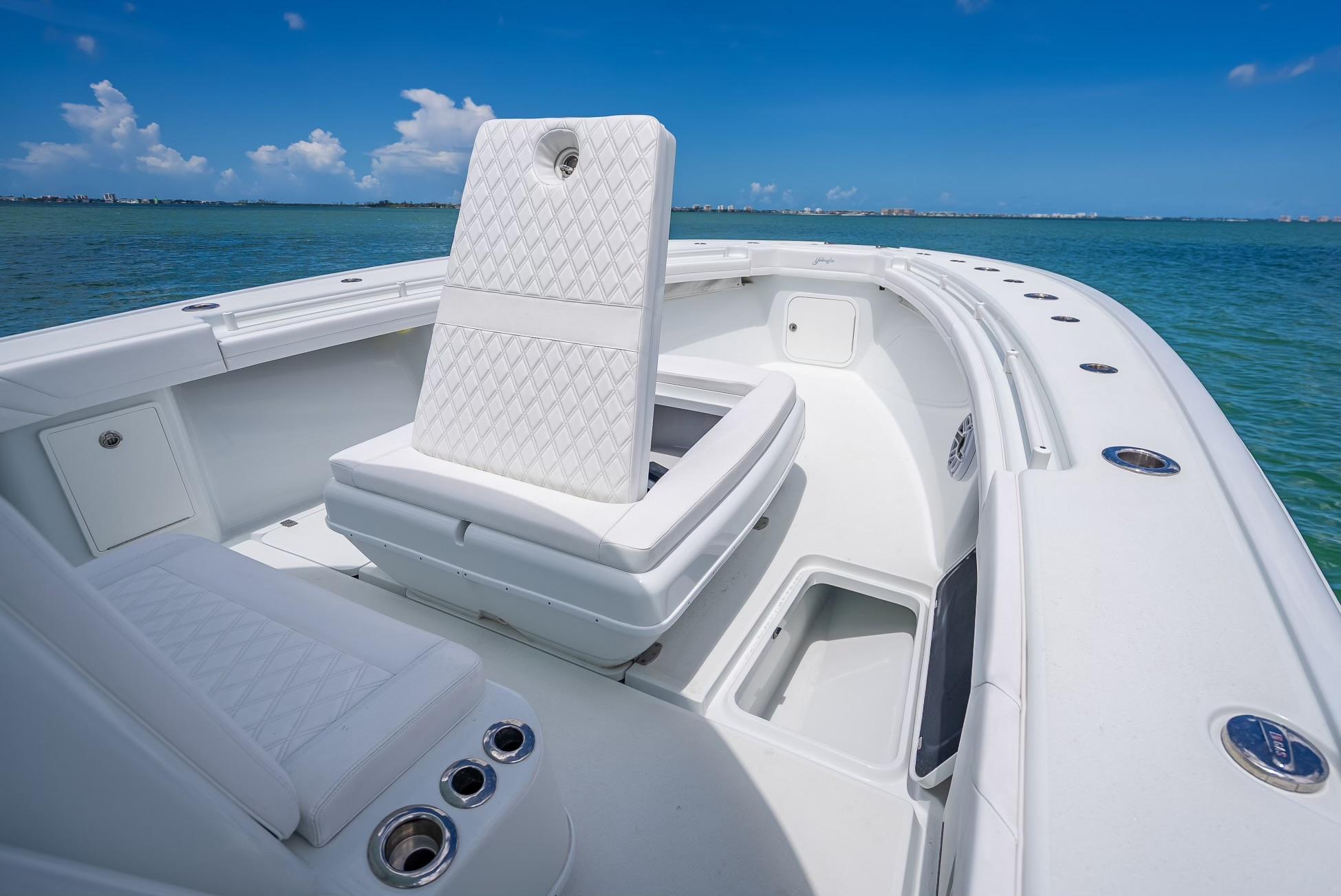 In the large center console market, the Yellowfin 39 stands head and shoulders above the competition. Built for ultimate performance when the weather refuses to cooperate. The 39 can run and fish with the big dogs in any condition. Designed for triple or quad outboard power, hardcore anglers will appreciate the extra wide-beam of 11’6”, which allows the 39 to offer a spacious and well-designed platform. It also comes with all the storage space you will ever need, while creating a layout that is as functional for fishing as it is for entertaining. In addition to being a serious fishing machine, the 39 features a stand-up head and shower. If you seek the ultimate in performance and style, with a surprising level of comfort thrown in, the Yellowfin 39 has you covered on all fronts.