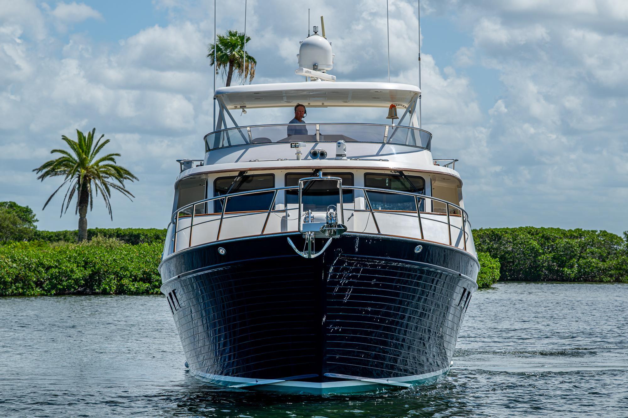 2012 Marlow 61E ExteriorA proper yacht, designed for a cruising couple to operate with ease in all conditions. Her raised pilot house profile with high freeboard is designed to shed heavy seas and yet enable the crew to navigate the vessel safely and securely with large walk around side decks. A Portuguese bridge with secure access to the foredeck robust ground tackle makes quick access to the dual gypsy windlass and all chain rode.