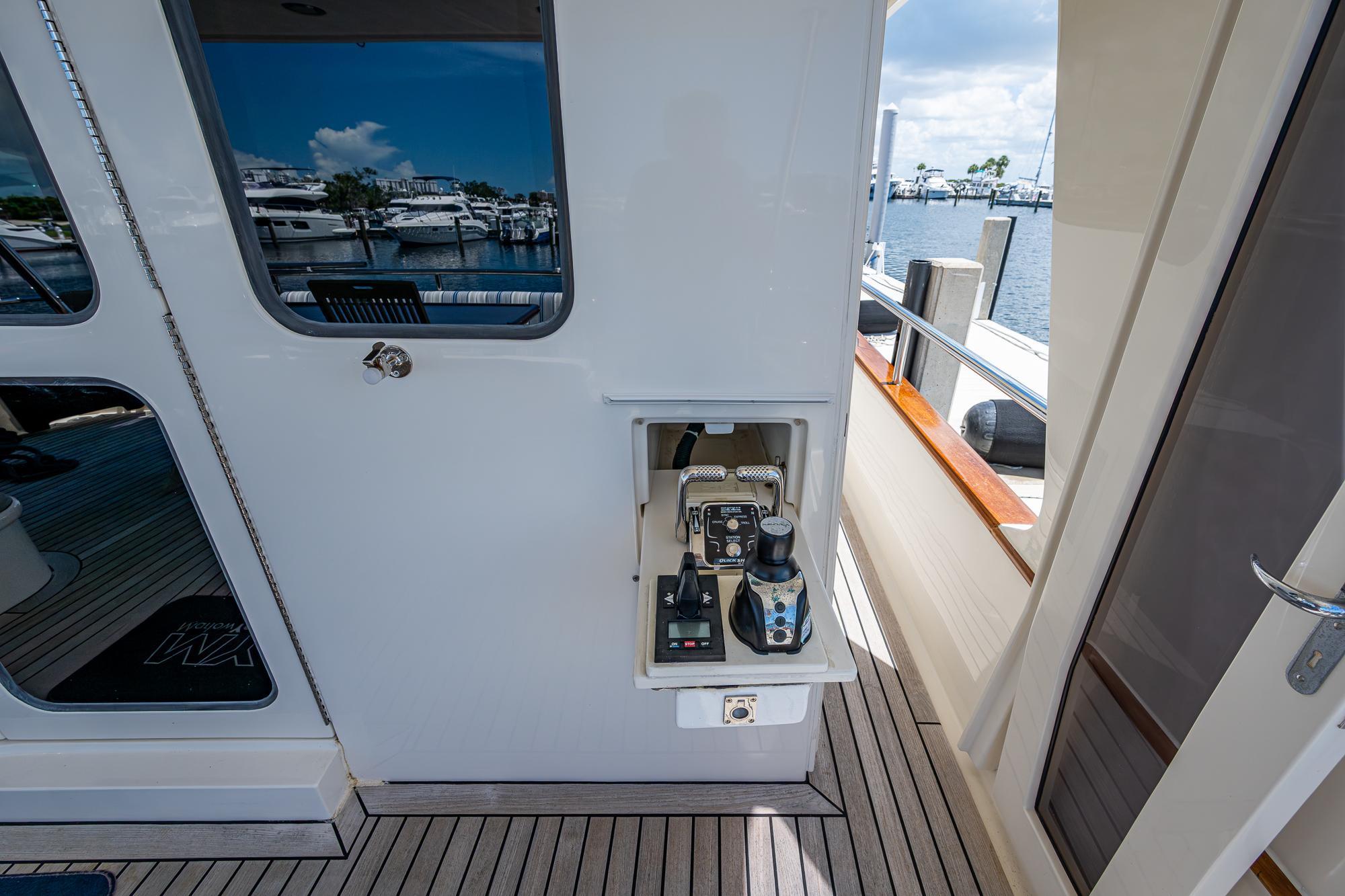 - Twin Disc quick shift digital dual function levers for each engine with stations at the flybridge, pilothouse and aft cockpit starboard side locker. UPGRADE