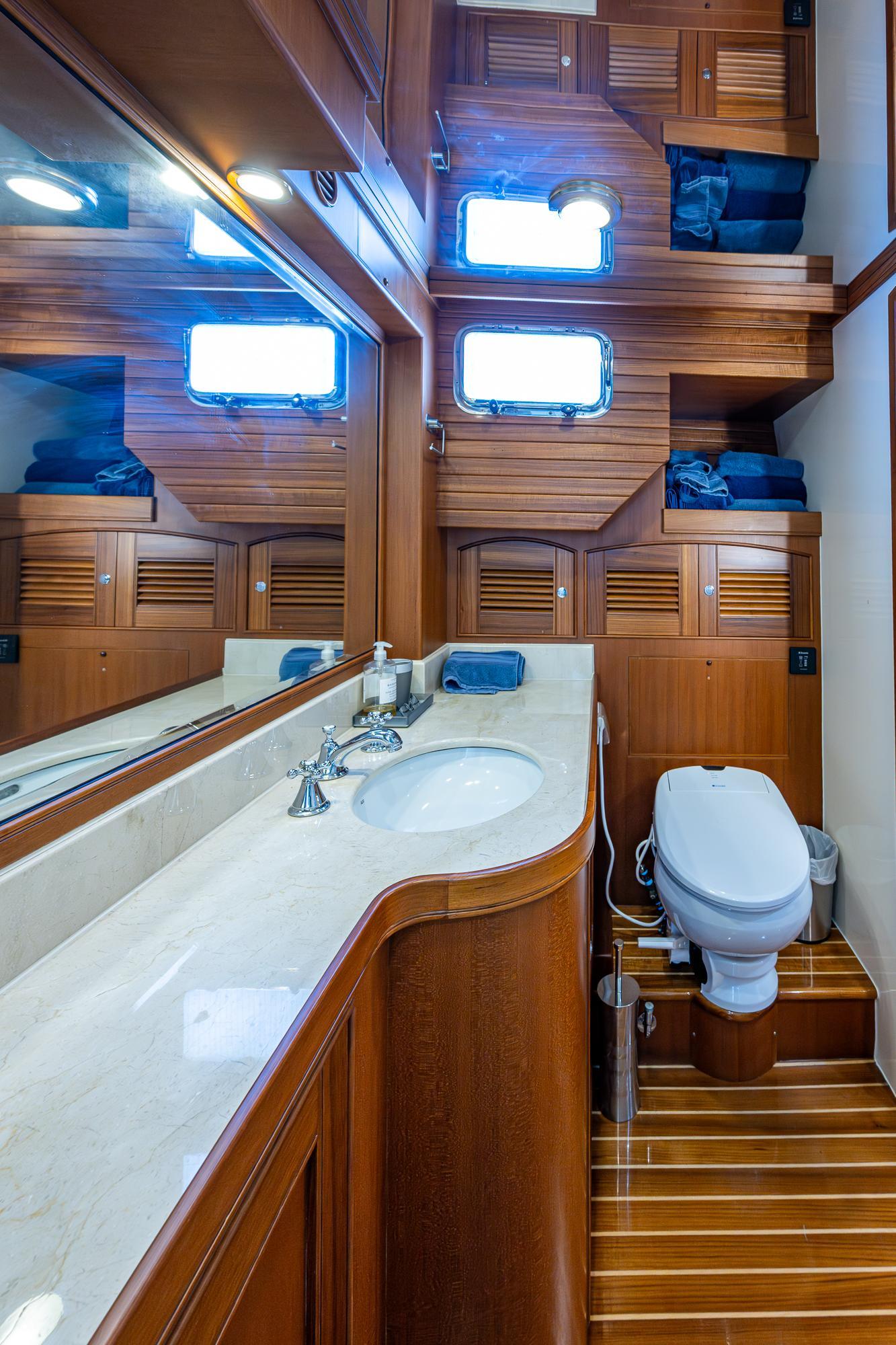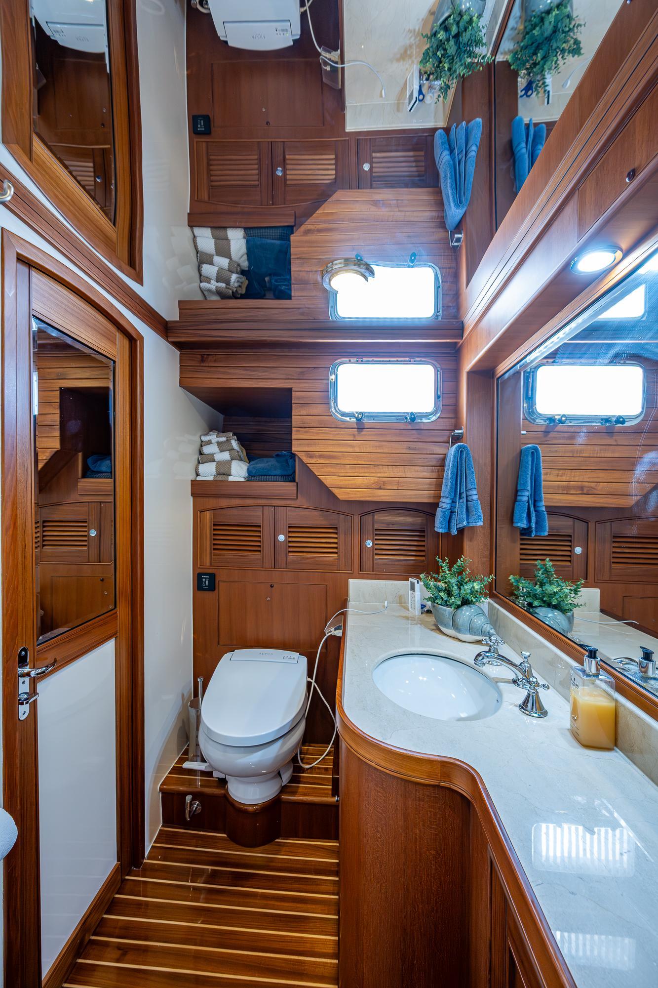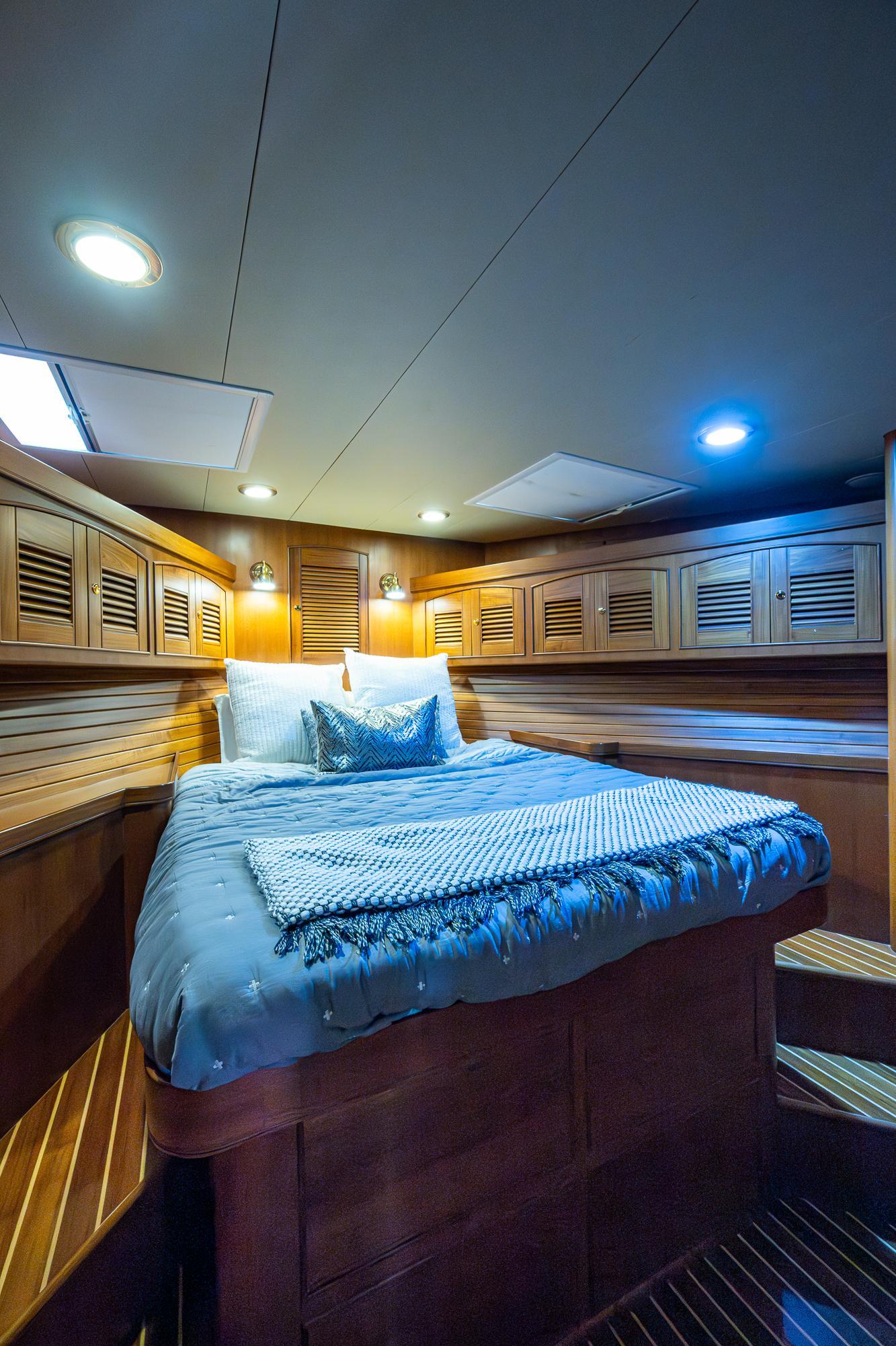 Forward, the VIP with her centerline queen berth has exceptional headroom, abundant storage and of course an ensuite head with private shower.