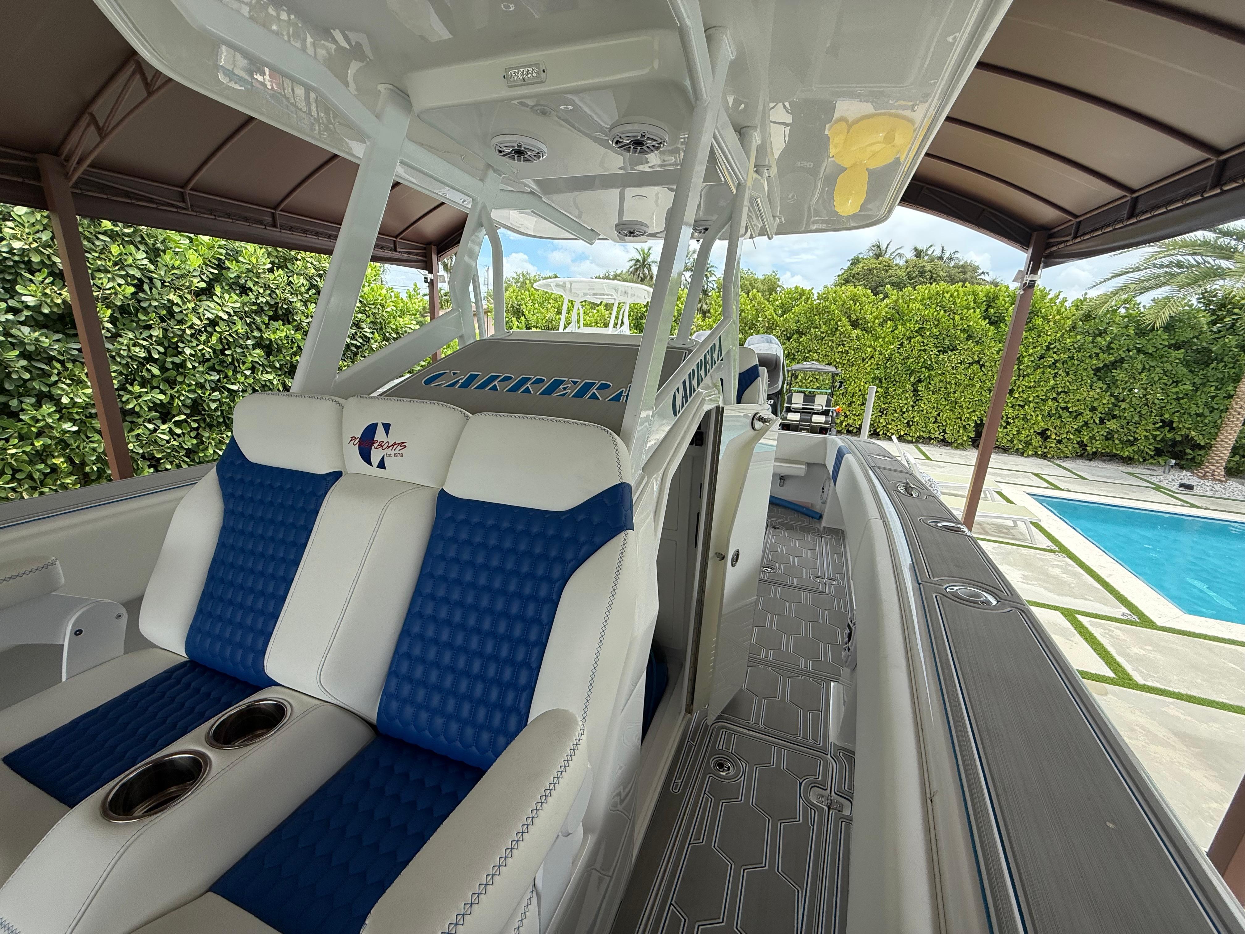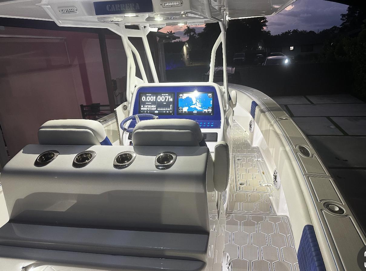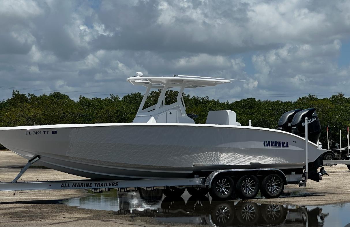 Carrera Powerboats offers Customized for all the adventures of family fun on the water, Carrera Powerboats cohesively combines style, functionality and performance to give you the best fishing boats with angling capabilities on the water. ~Boat Above can be custom Built and made to the Customers Preferences~Standard Features Include :GPSTrim TabsDual Live Well CompartmentsDual 2000 GPH Bilge PumpsDual Float SwitchesSalt Water PumpFresh Water PumpDual Captain Chairs3 Flood LightsBow LightsAnchor LightsFull Interior LED LightingWhite LED Lights in Compartments6 Rod Holders On Top Of CapVHF Marine RadioComplete Sound System w/ 6 SpeakersDual Boat BatteriesBoat Battery ChargerCushion w/ Plain ColorAft Folding BenchForward Console Seating2 10” Grab Rails Anodized P & S Aft1 30” Grab Rail Anodized Leaning PostSwim PlatformBoarding LadderHornPanel w/ Carrera Logo and SwitchesInner Liner / Finished HatchesWalk-In ConsoleAnchor StorageFull 316 Stainless Steel Hardware5 Flush Mounted Pull-Up CleatsSelf-Bailing Cockpit5 In-Floor Fish BoxesDual Step HaulFor PowerTwin Mercury 150 HP /Twin Yamaha 150 HPTwin Mercury 200 HP /Twin Yamaha 200 HPTwin Mercury 225 HP /Twin Yamaha 225 HP 10 Year Haul Warranty 100% Hand Laminated 100% Wood-Free Construction There's nothing quite like a classic Carrera! The 320CC is where powerful meets functional, giving you the opportunity for an endless boating oasis whenever you hit the water. When it comes to combined capabilities, go the extra mile every time with our fast center console boats.*Call Melissa Today