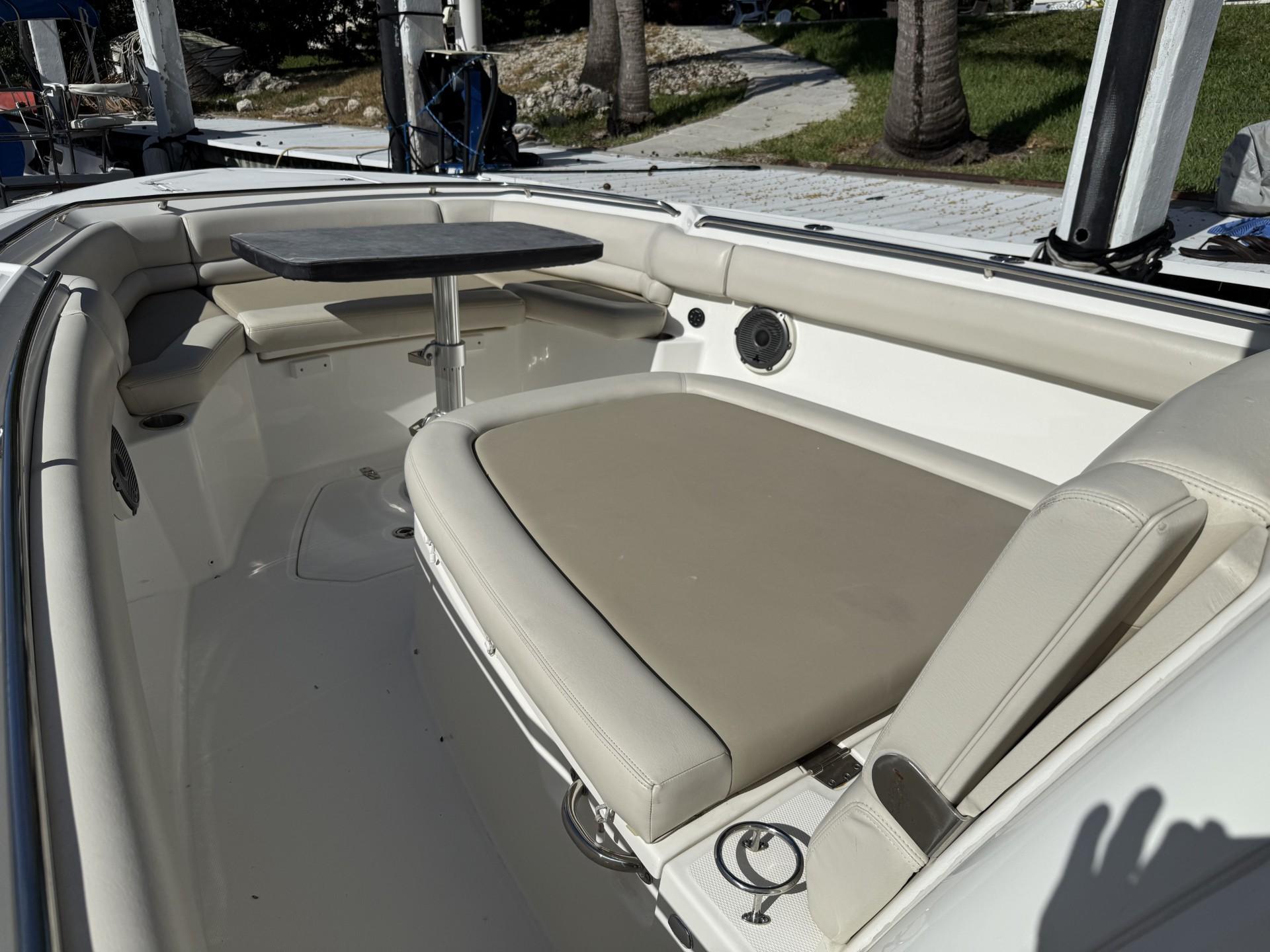 - Forward island deck seating with drink holders (2), bolsters and removable cushions