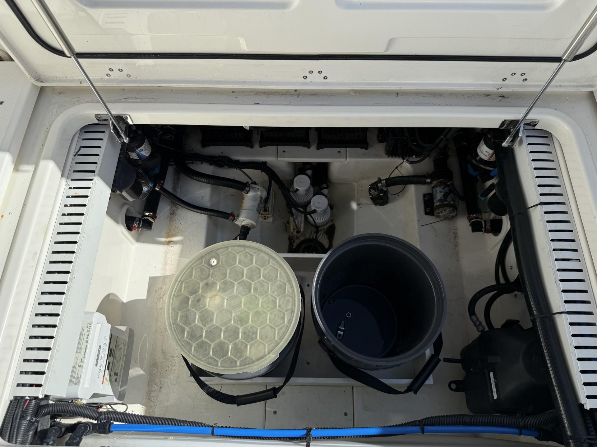 - Insulated in-floor fishboxes with pump-out (57 gallons) at aft (2)