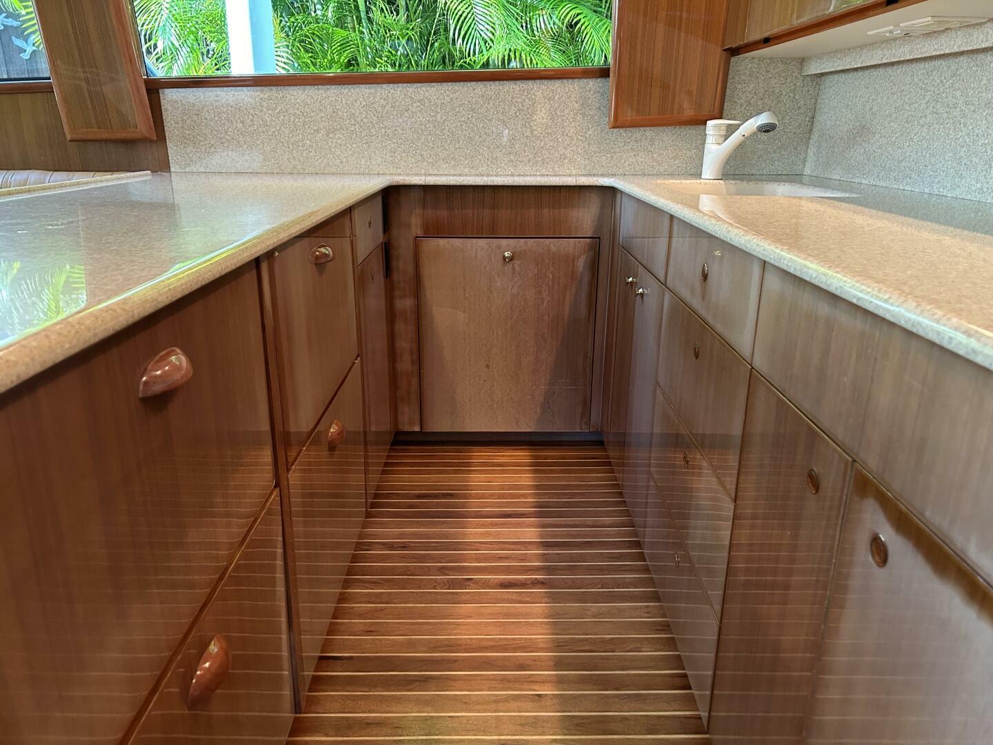 The Onan 21.5kW Genset lives inside of a sound shield and has no trouble powering the entire yacht. There are four Sub-Zero drawers beneath the galley counter. The Sub-Zero equipment was serviced in 2025. Forward of the galley are three luxury staterooms and two heads. Premium wallcoverings, headliner and high gloss wood joinery work adorned the interior of these yachts. This Viking is mostly original. Study the photos please and contact to ask any questions.
