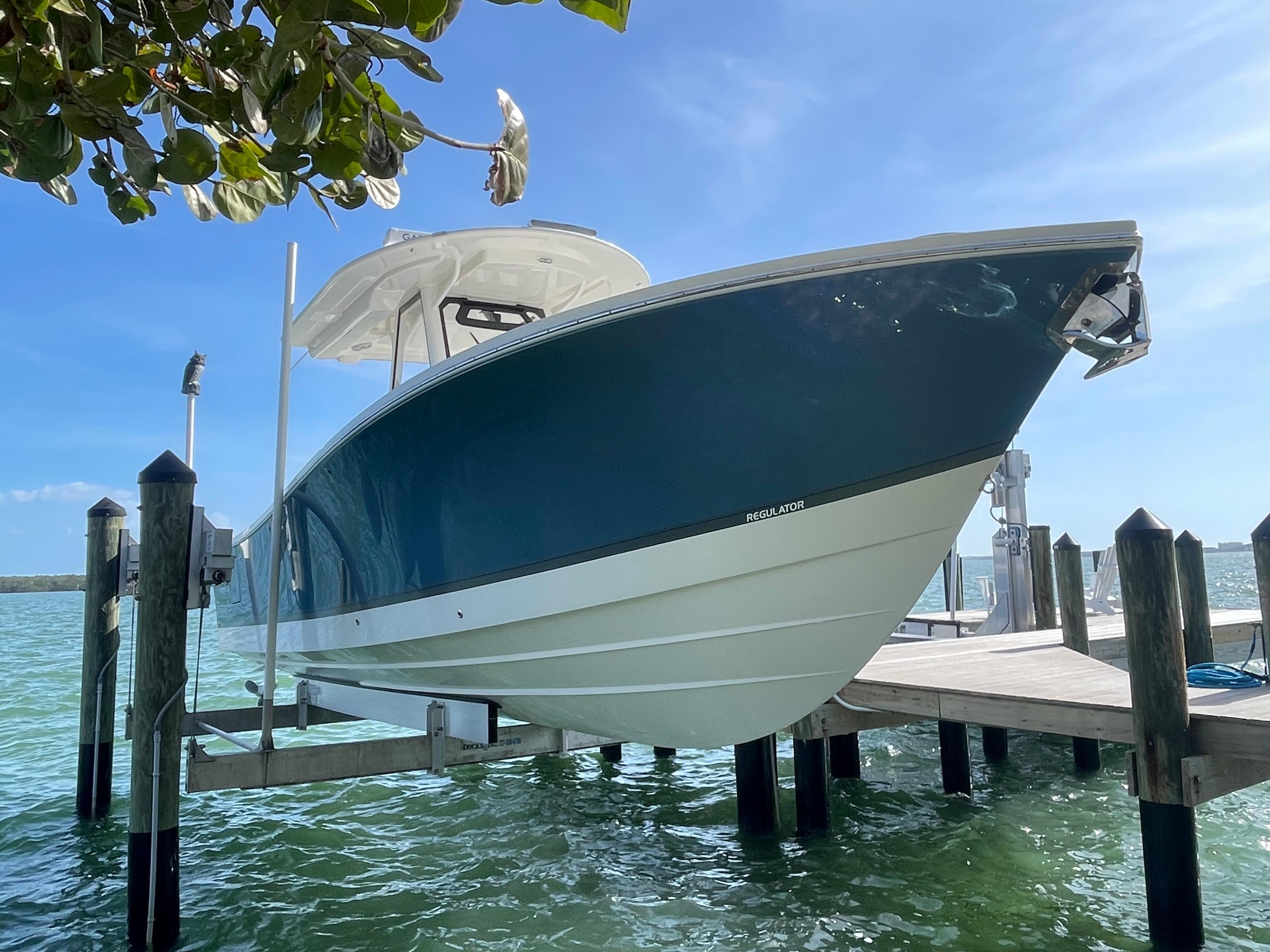 2023 Regulator 31 W/ Yamaha 425'sBoat is Located Offsite, Call Ian Cox today to make an Appointment!Equipped with:Twin Garmin GPSGarmin VHFAuto Pilot Yamaha Joystick Sureshade Electric ShadeWindlassFusion Audio UpgradeSeakeeper ReadyBattery ChargerBucket HoldersMarine HeadT-top Rocket LaunchersWireless Cell Phone ChargerLED Light BarCoversIntroducing the stunning 2023 Regulator Center Console, a remarkable vessel measuring an impressive 31.33 feet in overall length. Its Deep Vee hull shape ensures exceptional performance and stability on the water. This boat is powered by twin Yamaha 425XTO outboard engines, delivering a robust 850 horsepower combined, making it perfect for thrilling adventures. Equipped with modern features, the Regulator boasts joystick control for effortless maneuverability, enhancing your boating experience. The electric windlass adds convenience, allowing for easy anchoring. This used boat combines cutting-edge technology with a sleek design, making it an ideal choice for both seasoned mariners and newcomers alike. With its powerful engines and thoughtful features, the 2023 Regulator is ready to take you on unforgettable journeys across the water, promising both excitement and comfort.This boat is an off-site listing, so please call Ian Cox at Thunder Marine to make an appointment to view.