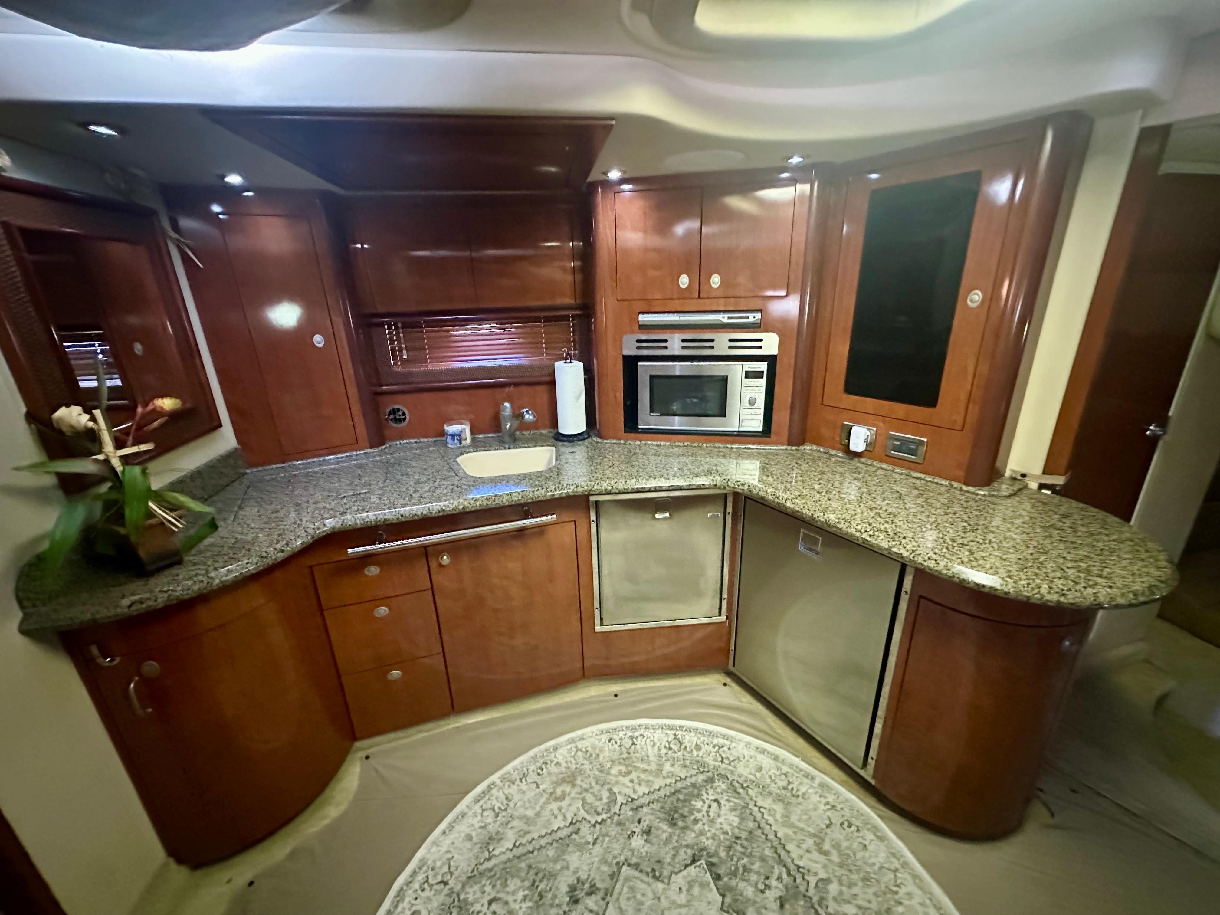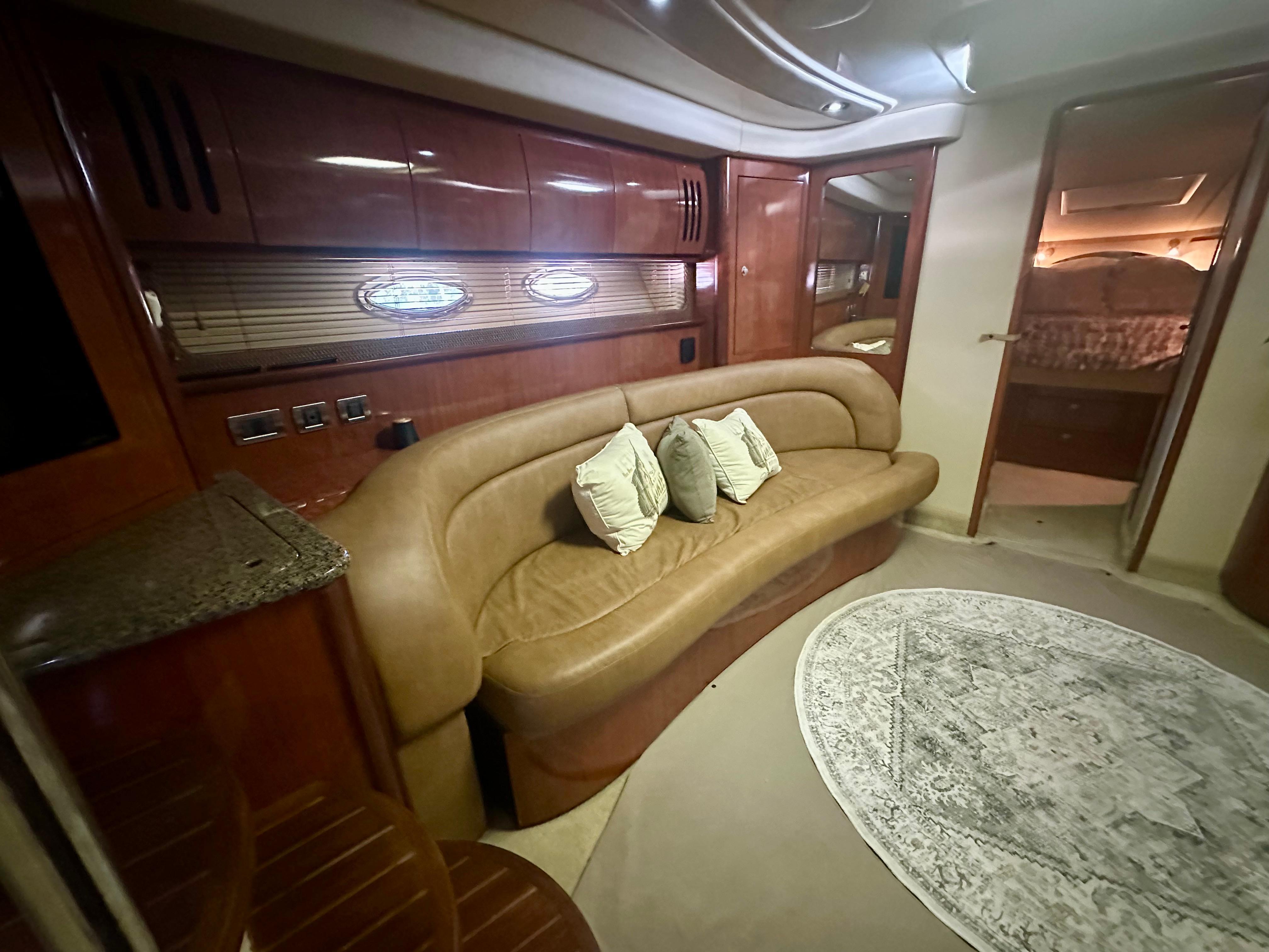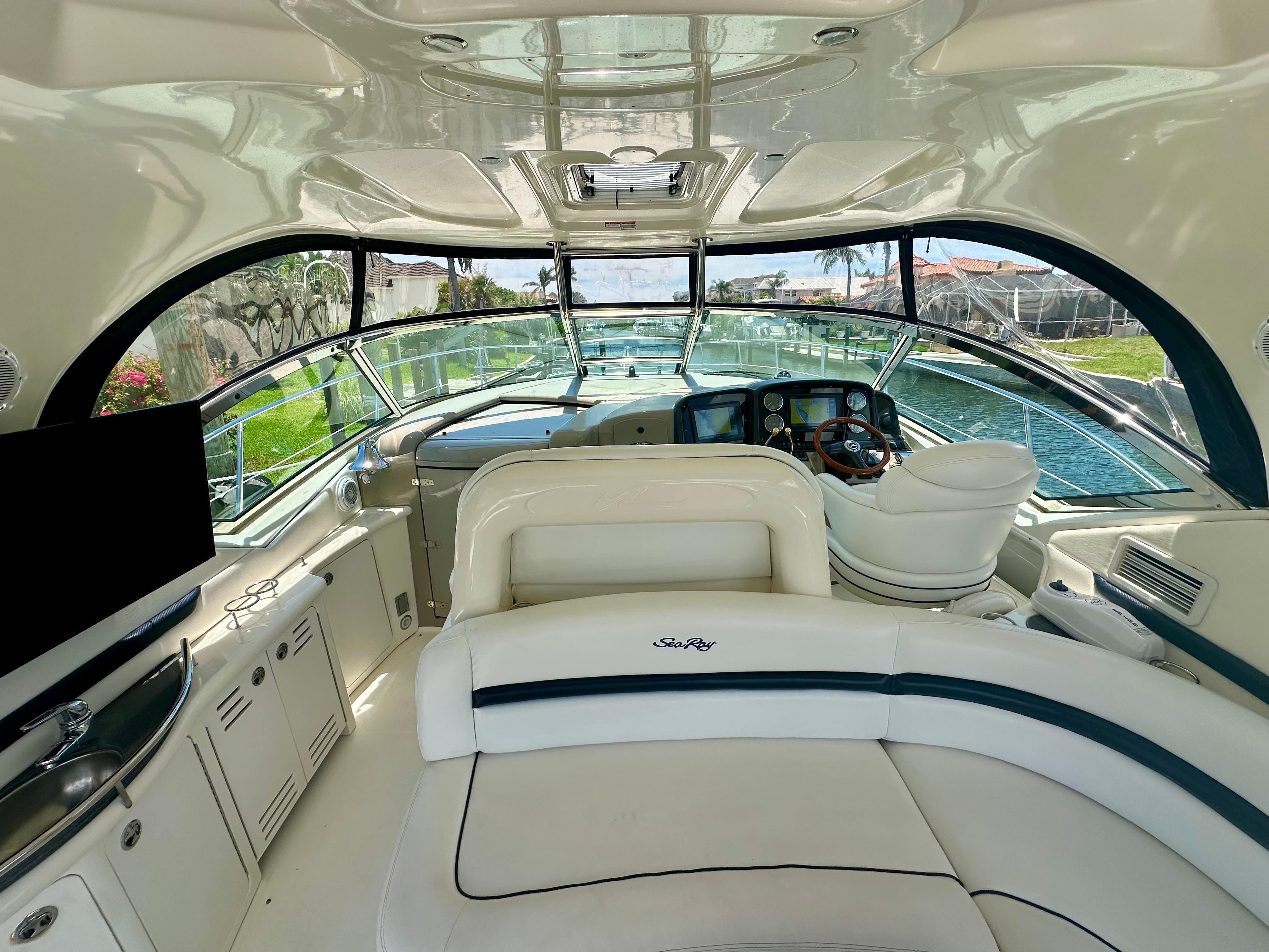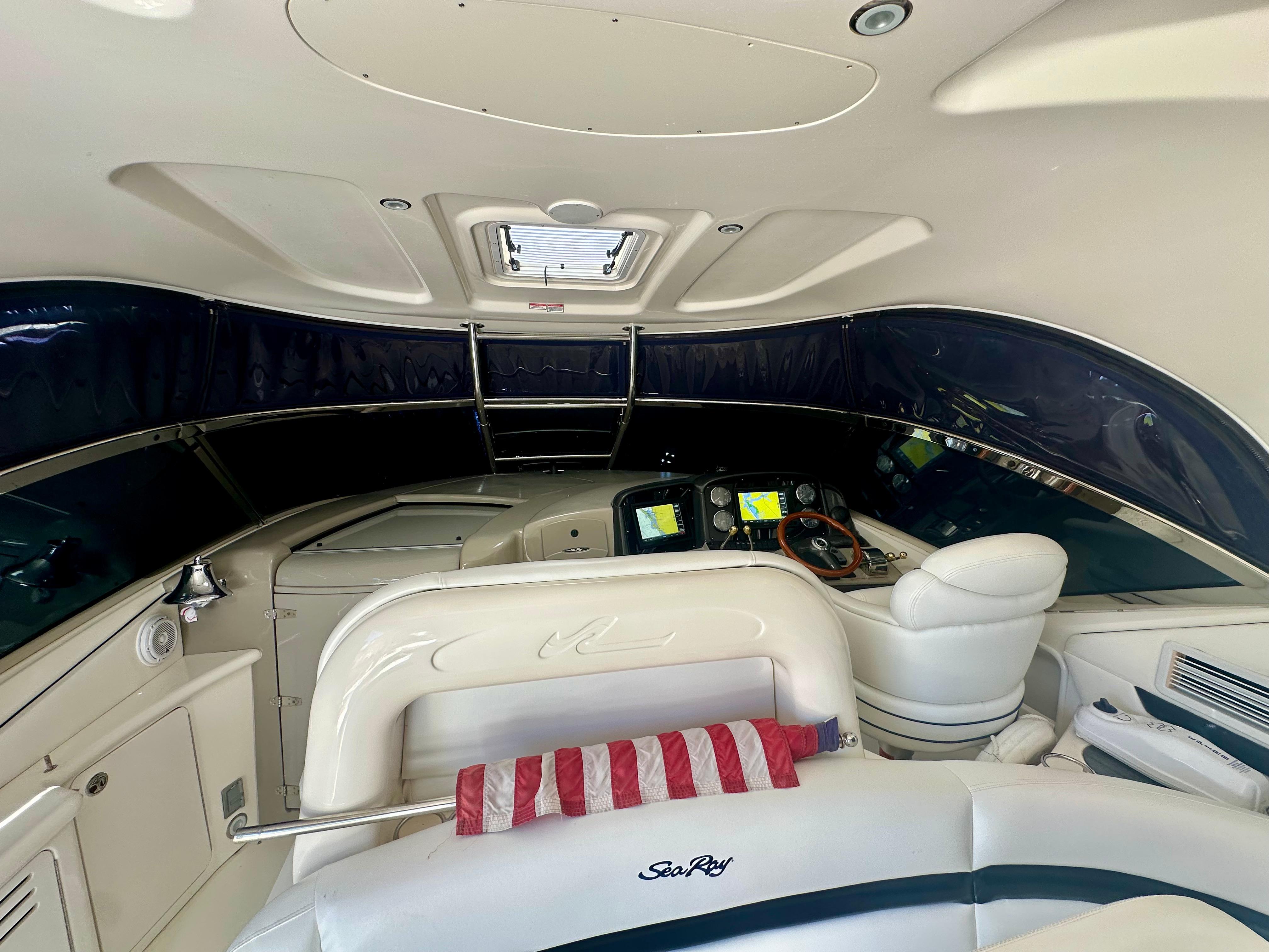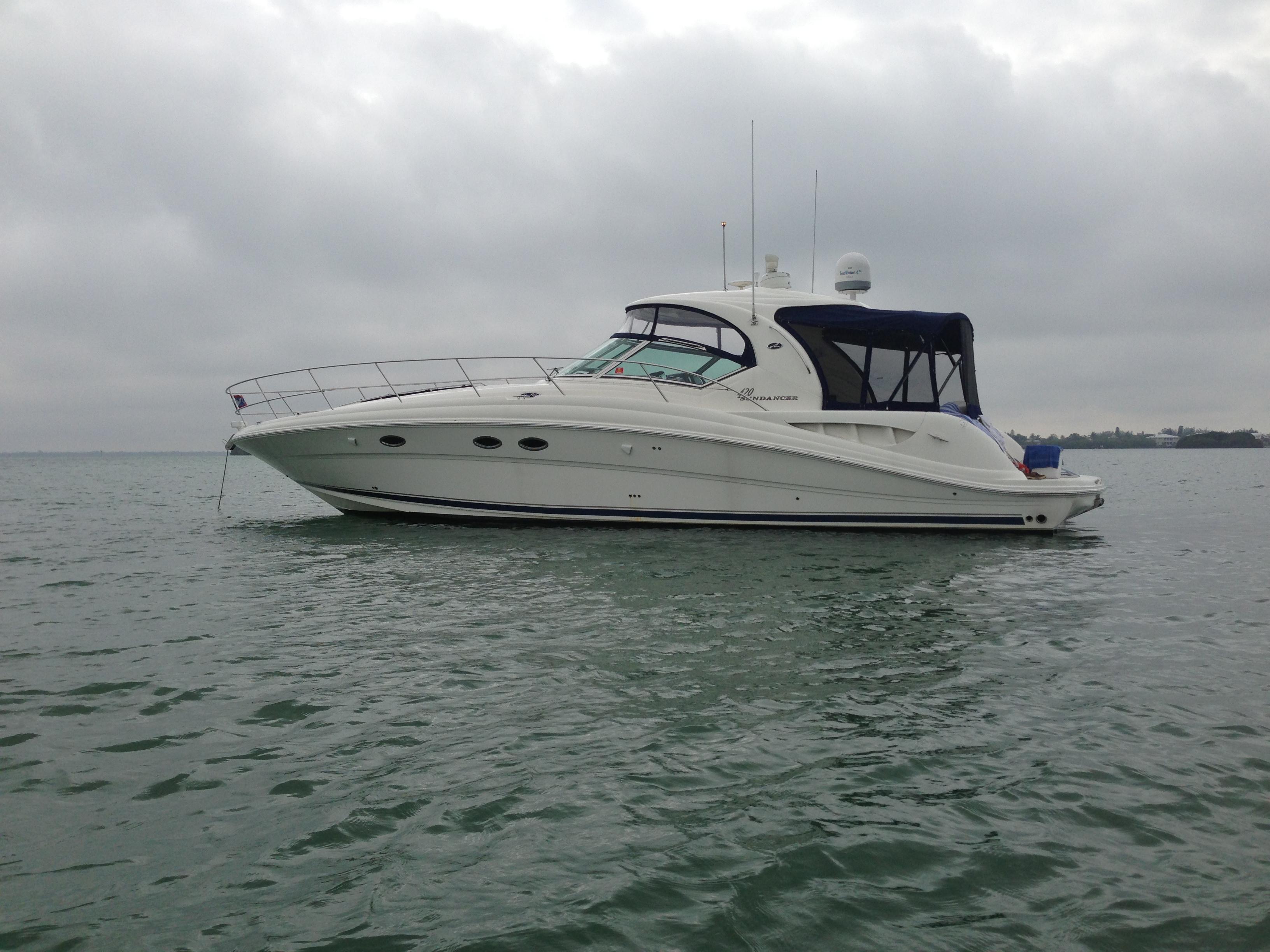 Well appointed and maintained white hulled 420 Sundancer which is the same hull and layout as 44, Sea Ray rebranded the model names between 05 and 06. Cockpit air, updated electronics with modern Garmin GPS MAP XSV dual 12" touch screen multi function displays with open array Garmin radar and modern Raymarine autopilot. JL Audio head unit with JL tunes throughout cockpit including a sub. Mercruiser vessel view screen has been replaced. Camper top extension off the back of the hard top, black out canvass all around which covers the enclosure glass. Hurley H30 davit on the swim platform to carry dinghy or jet ski. Interior lights changed out to LED. 2 head, 2 stateroom layout on a classic Sea Ray design. These boats have always been a great ride, with good economy and ease of ownership. New salon fridge, ice maker, microwave, smart TV in cockpit, salon and master. Recent upgrades:Hot water heaterSmart battery chargerBatteries swapped outFresh water pumpDash boardElectronicsStereoMaster AC unit upgraded from 7,000 BTU to 9,000 BTUSalon AC upgraded from 12,000 BTU to 16,000 BTU