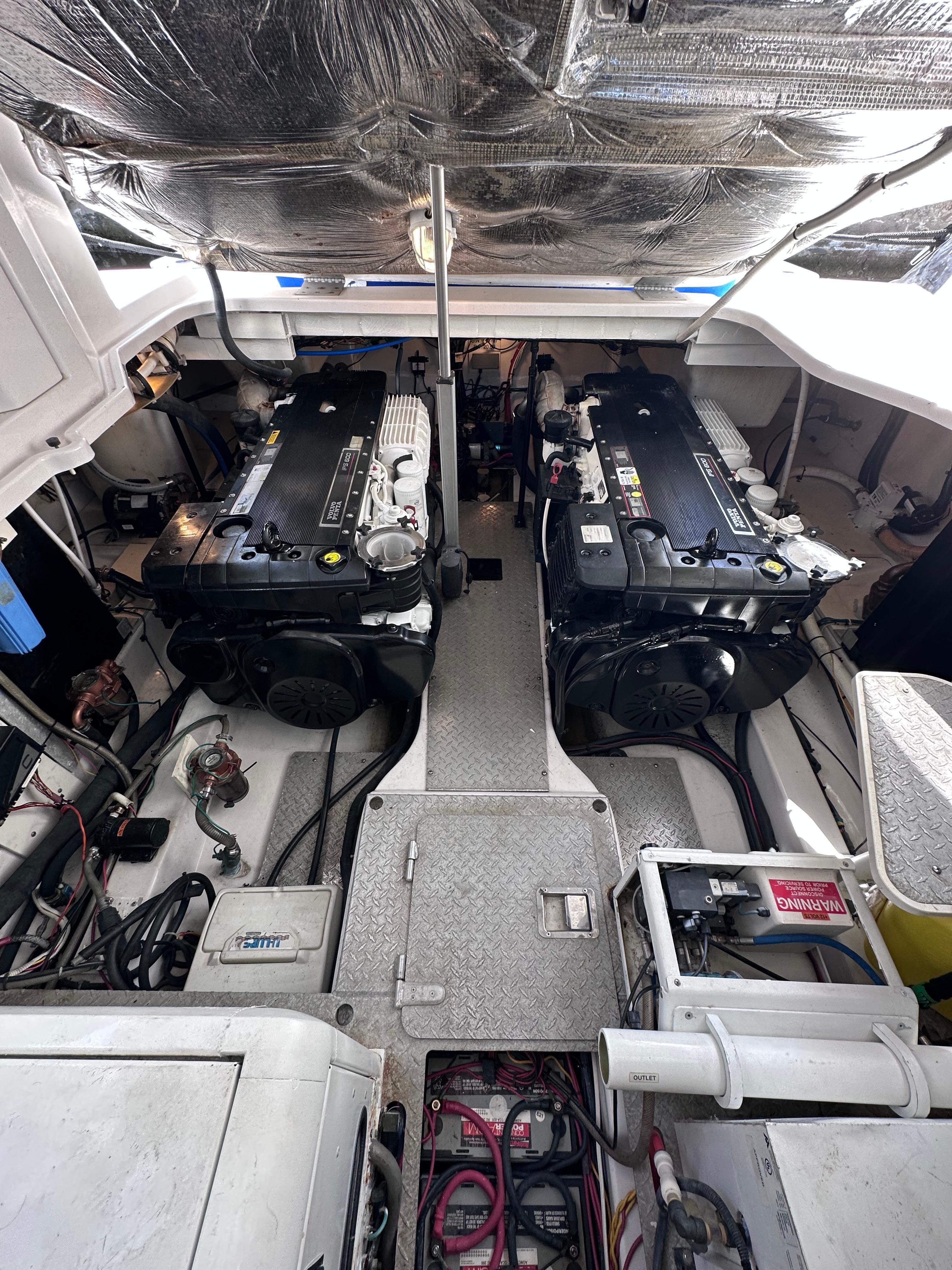 New Listing ! 2008 with ONLY 1275 original hours. Ready to be sold ! Oh it has water maker as well!Volvos revolutionary Inboard Performance System (IPS) and joystick control add to the vessels appeal by allowing the ultimate in ease and precision. By swiveling the top of the joystick, the boat turns on its axis; or the joystick can simply direct the boat to move in the desired direction. At the double width helm seat with driver-side power adjustment and flip-up bolsters, the sophisticated dash showcases a charcoal finish as the backdrop for controls and tilt steering wheel. A compass is standard to help guide the way, in addition to the Volvo Electronic Vessel Control instrumentation with a fuel gauge, oil pressure, tachometer, temperature, and volt meter. Dual engine binnacle controls are also included. Trim tabs are standard and fingertip rocker switches feature LED lighting for optimum visibility. And when the weather doesnt cooperate, port and starboard windshield wipers improve visibility for captain and crew. For utmost safety precautions, a gas vapor gauge is standard. Plus, to protect the dash when not in use, Four Winns includes a canvas helm cover. There is plenty of space for additional navigational equipment. An option is the a Raymarine package with VHF-218, two E120 GPS, chart plotter, depth sounder, radar with a 4kw open array antenna, and SIRIUS Satellite Marine Weather radio. The upgrade includes ST8002 autopilot. Large enough for the entire swim team, the V458s extended swim platform is the destination for water-lovers. With plenty of room for lounge chairs, the platform is outfitted with two angled, deep-reach ladders with wide-step pads for the swimmers comfort, and blue courtesy lighting. Another popular attraction is an electric grill at the transom for good eats and fun in the sun all in one location. An aft shower with hot and cold water is convenient for rinsing away sand and debris. Optional underwater lighting consists of large light fixtures mounted below the swim platform, filling the surrounding water with a luminous glow. Plus, swimmers can enjoy optional Flexiteek flooring for minimal slipping. A hydraulic lift is available as an addition to the swim platform, a perfect home for personal watercraft.
